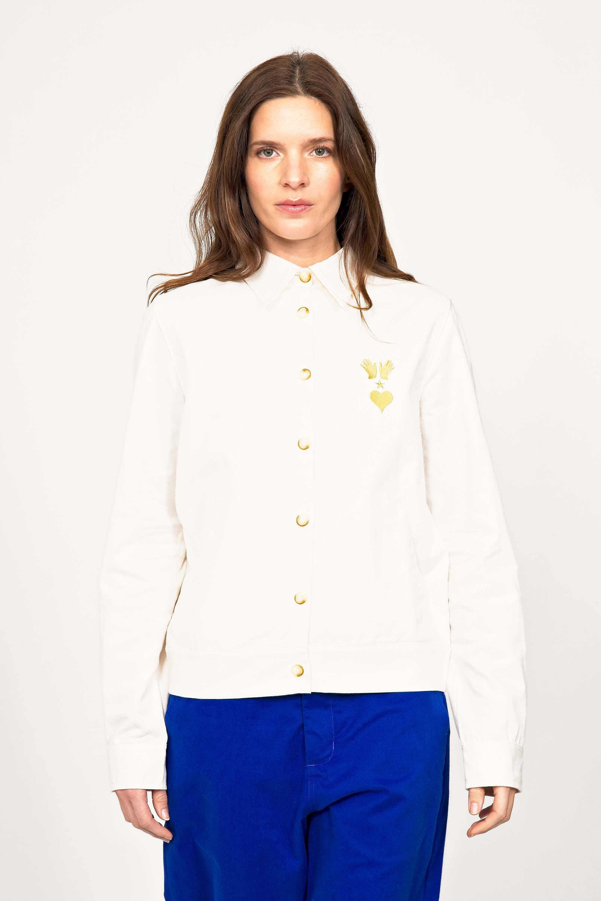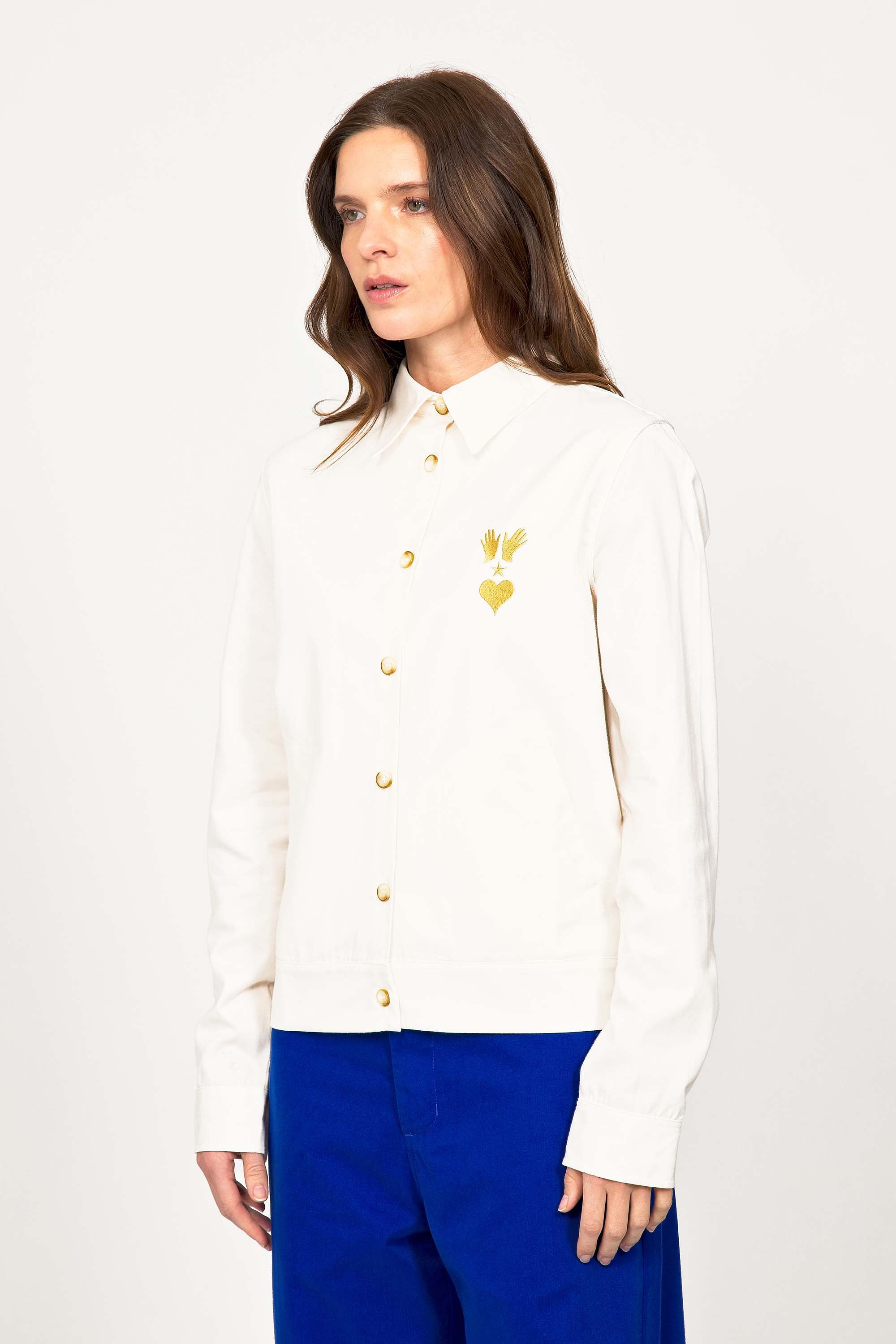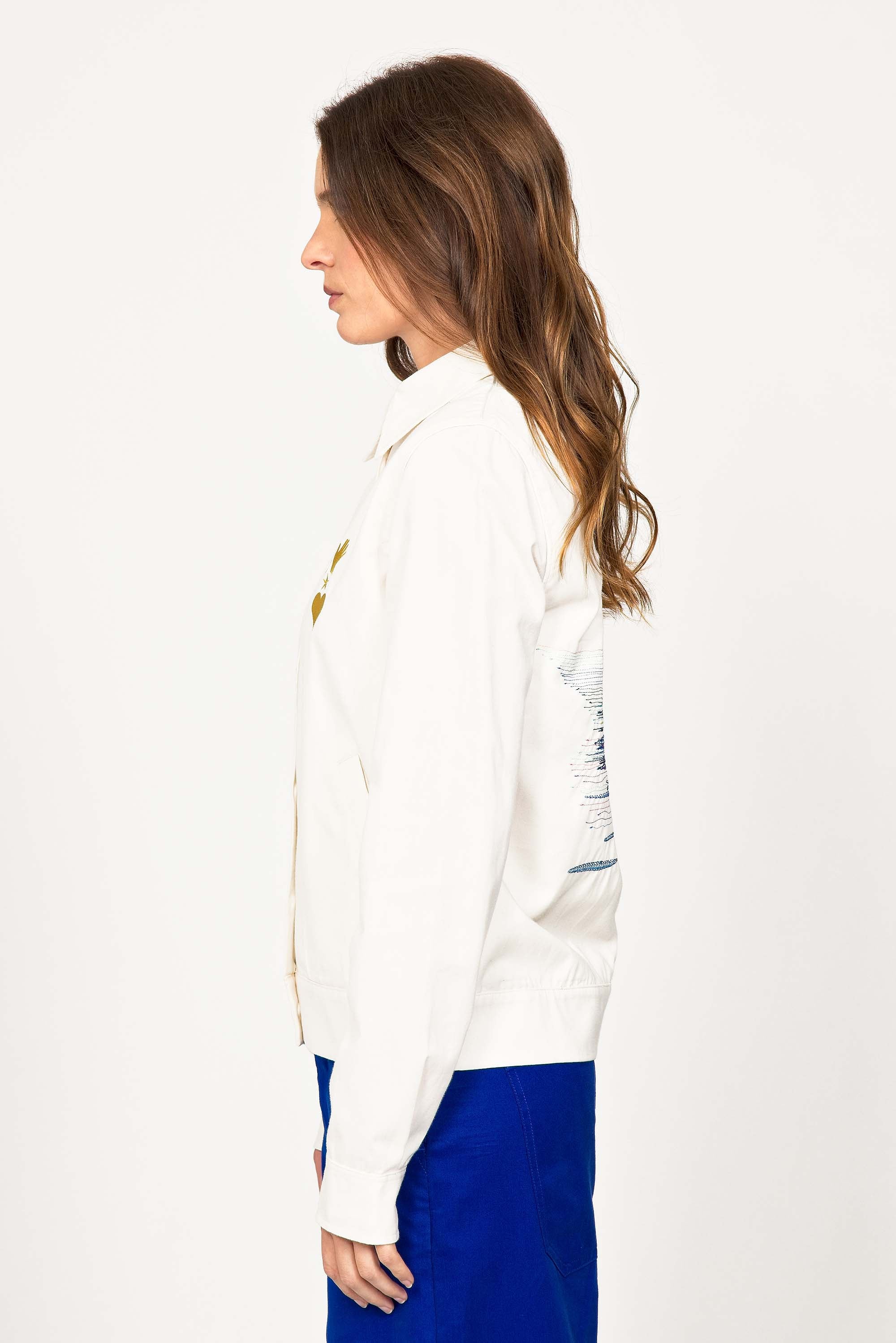 CHEMISE CINTRÉE EN COTON ÉCRU AVEC BRODERIE COUCHER DE SOLEIL