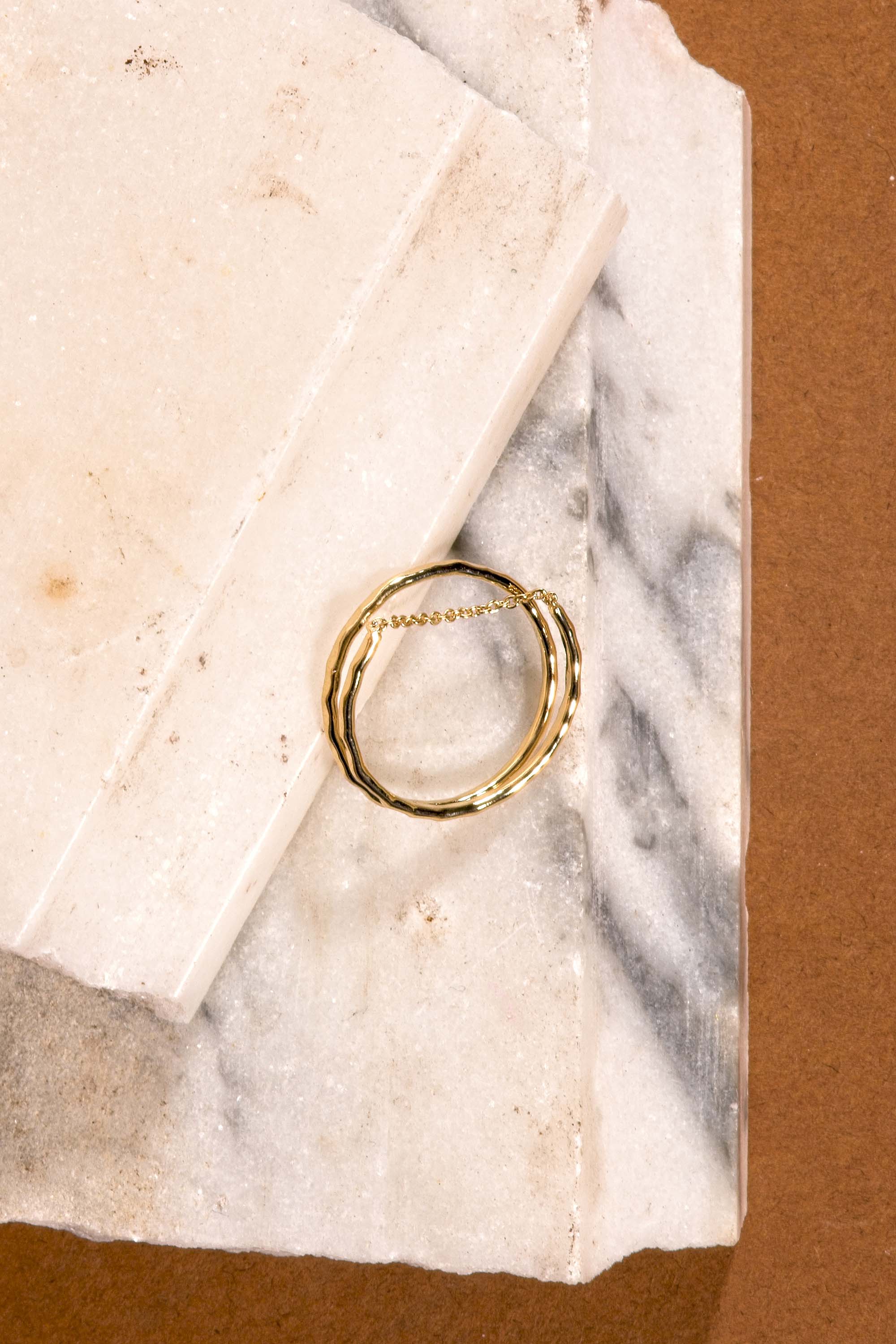 BAGUE DOUBLE AVEC UNE CHAINE PLAQUÉE OR 24K