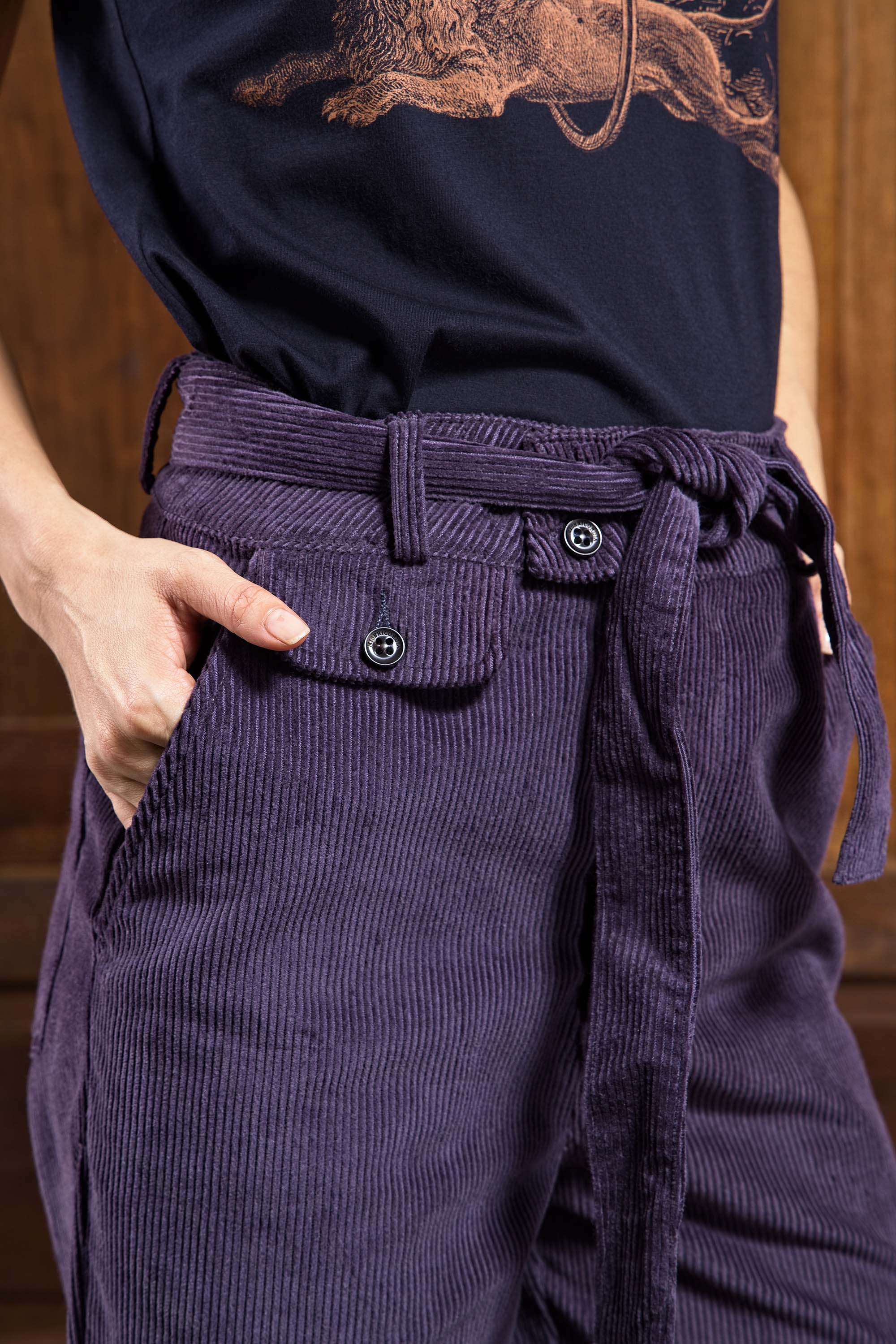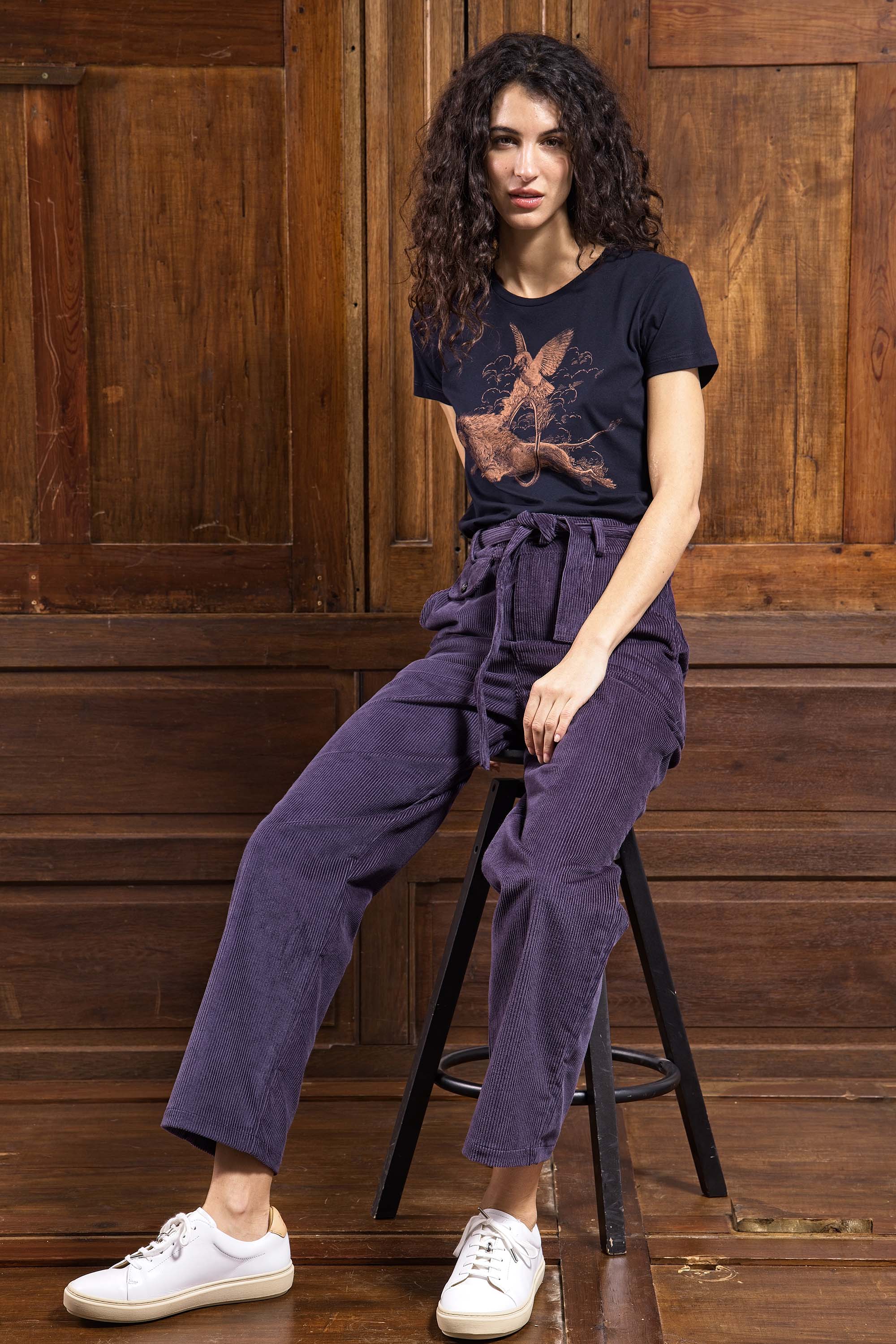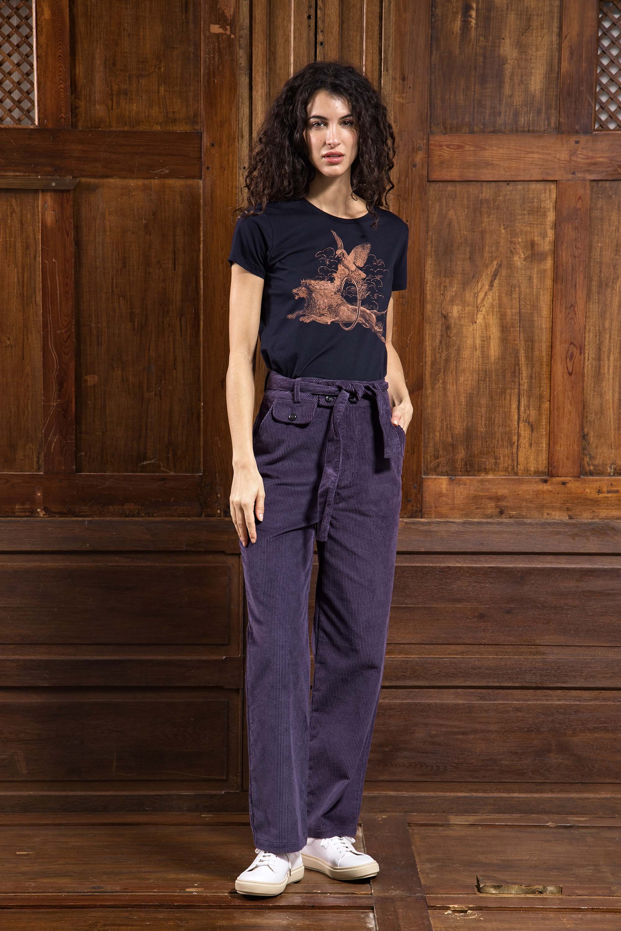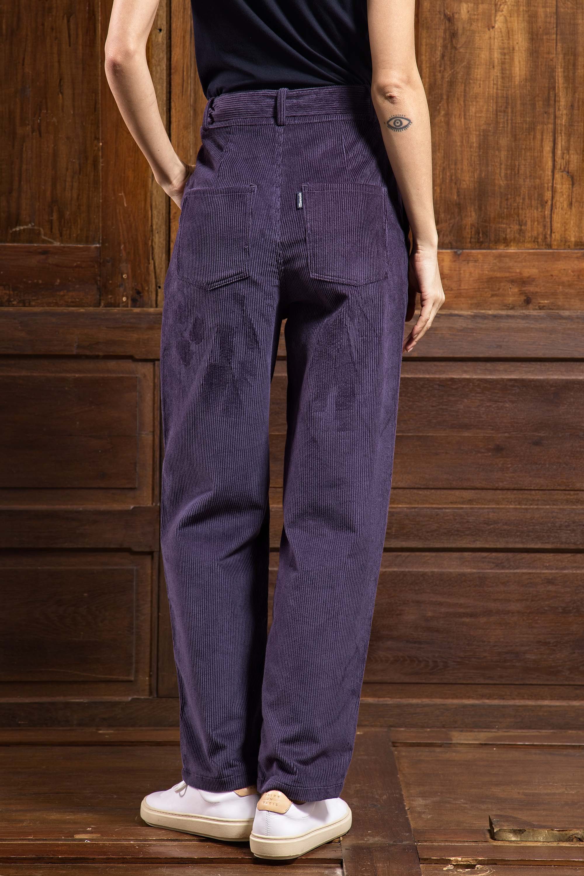 Une taille haute, ajusté aux hanches, qui tombe sur la jambe de manière resserrée à la cheville.