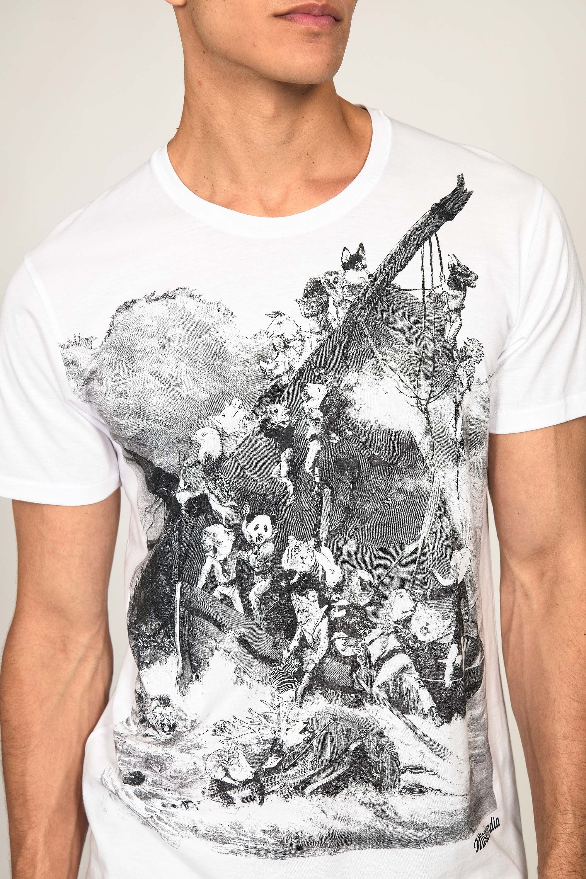 T-SHIRT BLANC IMPRIMÉ EN COTON COUPE AJUSTÉE