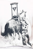 Cette illustration d'un cowboy s'agrippant de toutes ses forces à la selle de son cheval lancé à toute allure, est une allégorie pour illustrer la vitesse du temps qui va vite et sur lequel nous n'avons pas la main mise : un rodéo fantasmagorique. Le cheval emporte avec lui un sablier, symbole du temps qui passe et que nous ne pourrons, malgré nous, jamais rattraper.