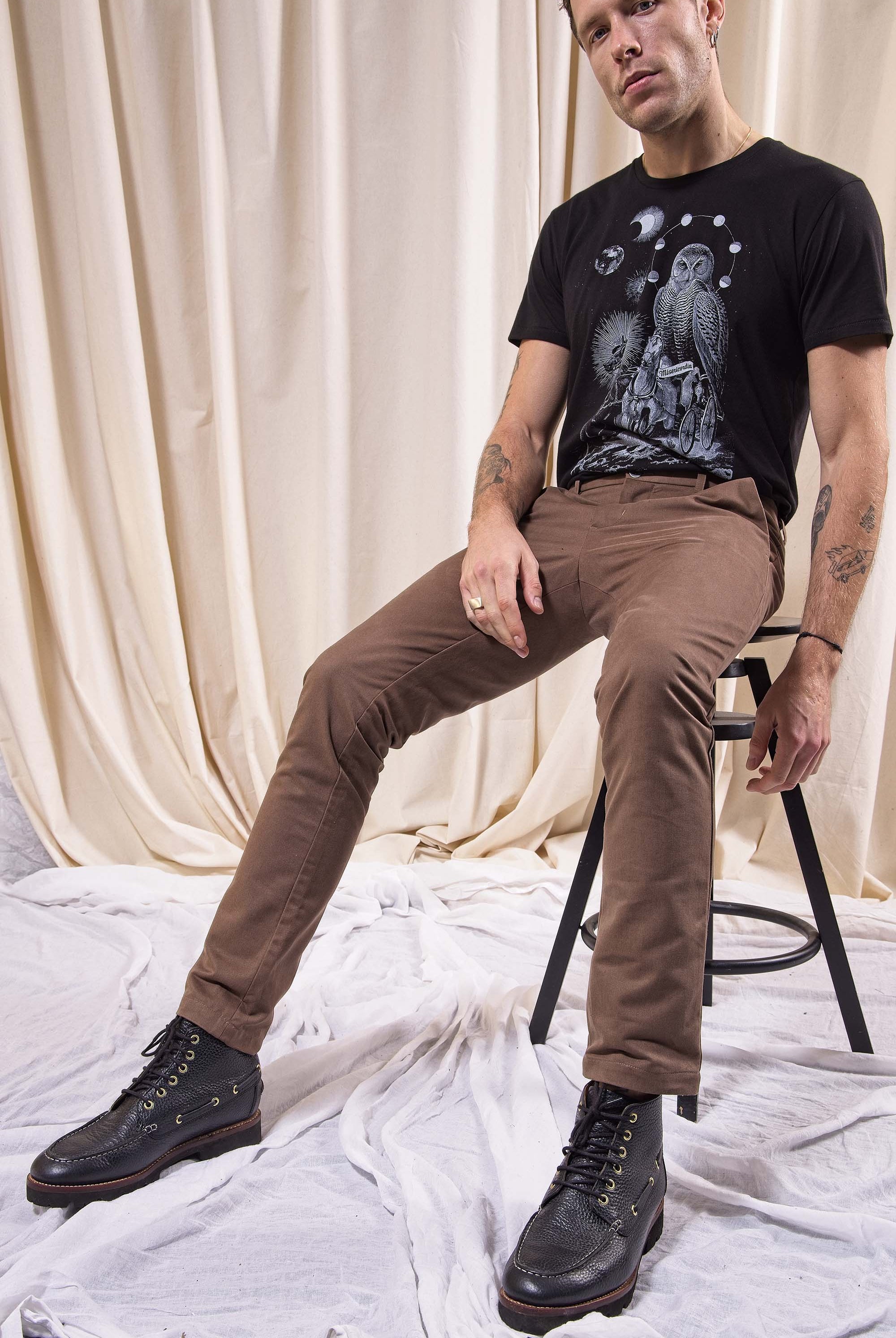Les pantalons constituent des pièces incontournables de la garde-robe masculine, car ils permettent de compléter toutes les tenues avec élégance. Chez Misericordia, nous pensons que la qualité de nos pantalons est une priorité absolue pour satisfaire vos exigences. Que vous cherchiez un pantalon habillé pour le travail ou un pantalon plus décontracté pour vos activités de loisirs, vous trouverez chez nous une sélection unique et de qualité.