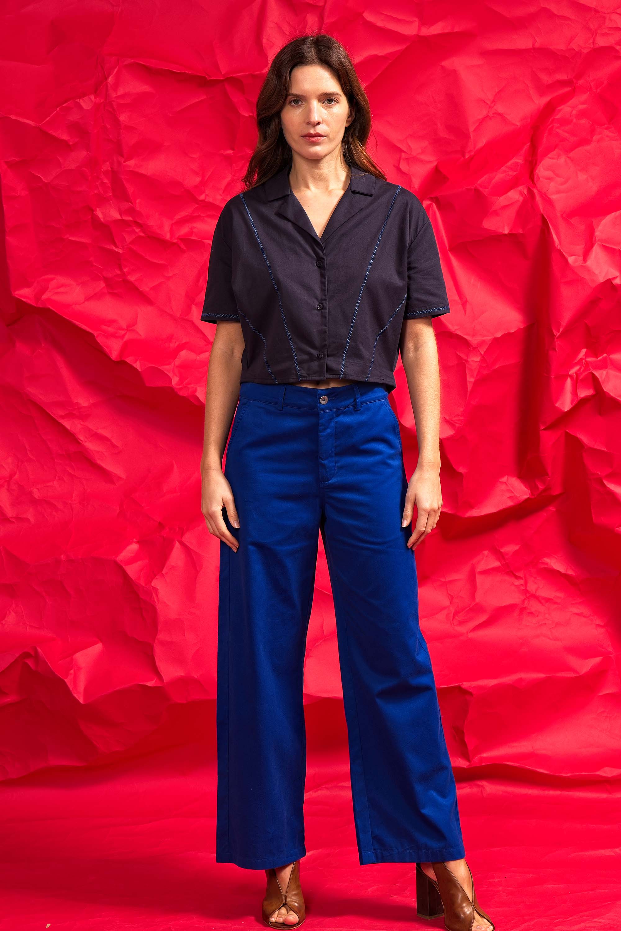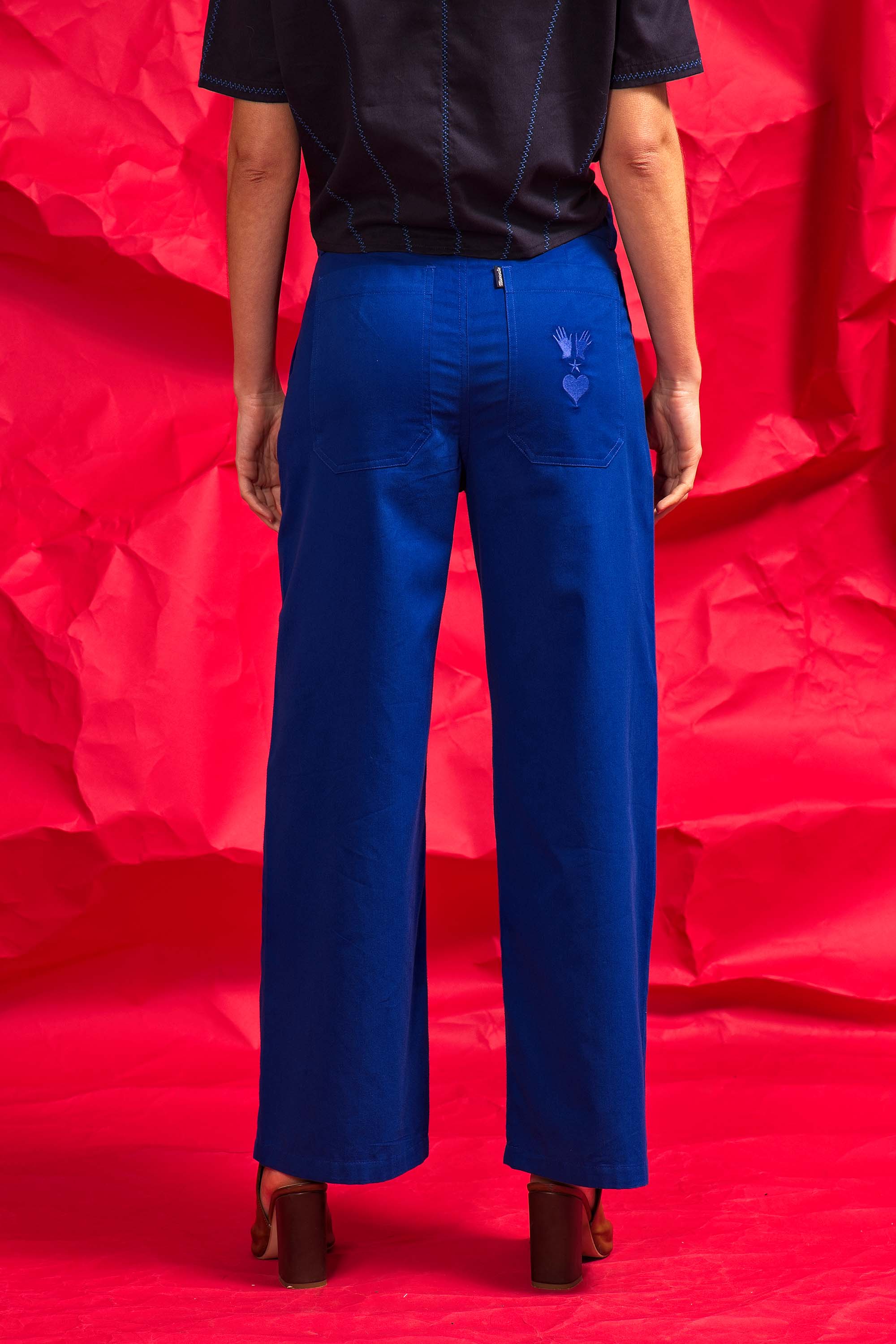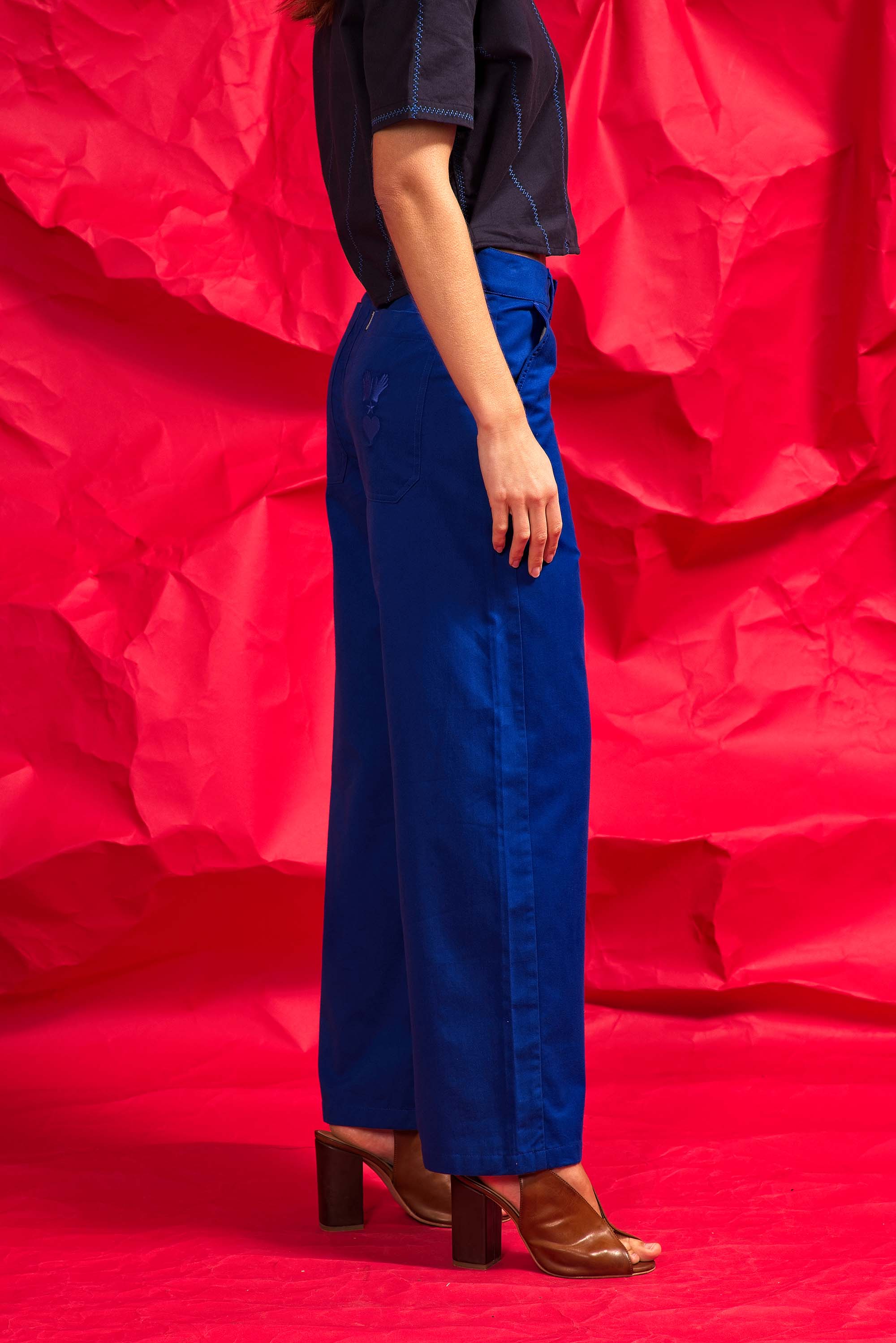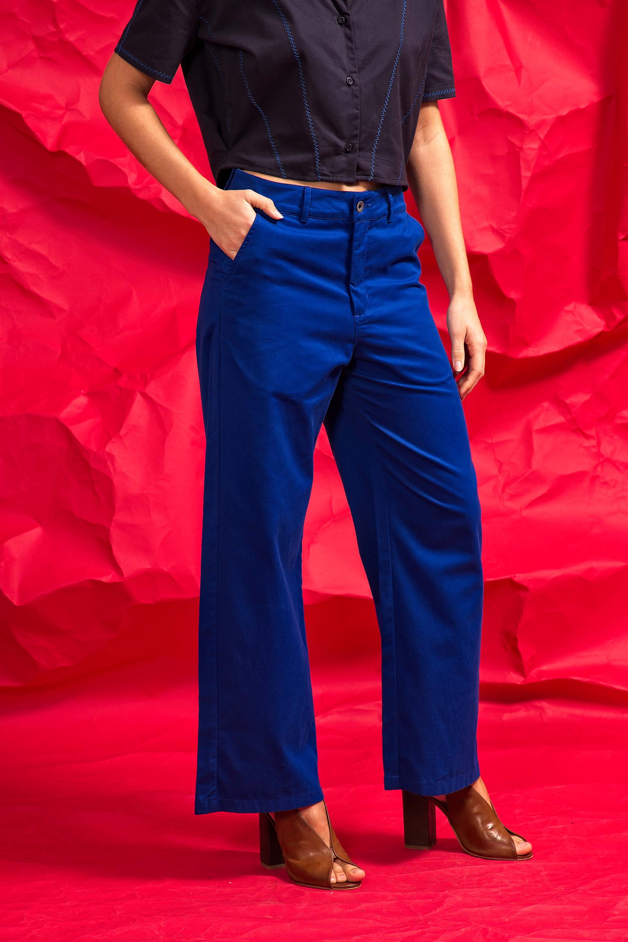 PANTALON BLEU OUTREMER EN COTON TAILLE HAUTE ET À LA SILHOUETTE DÉCONTRACTÉE