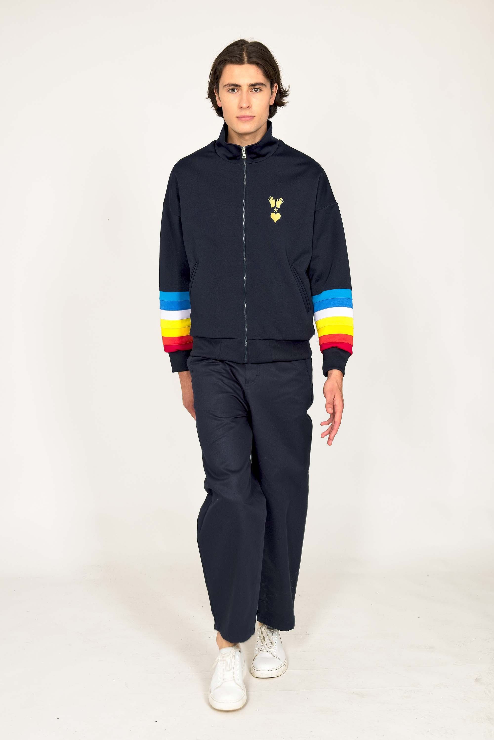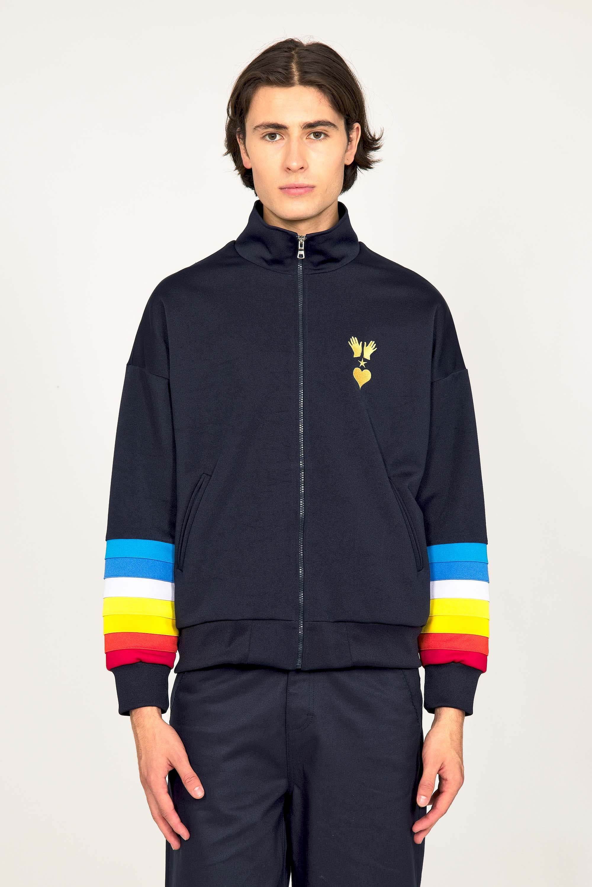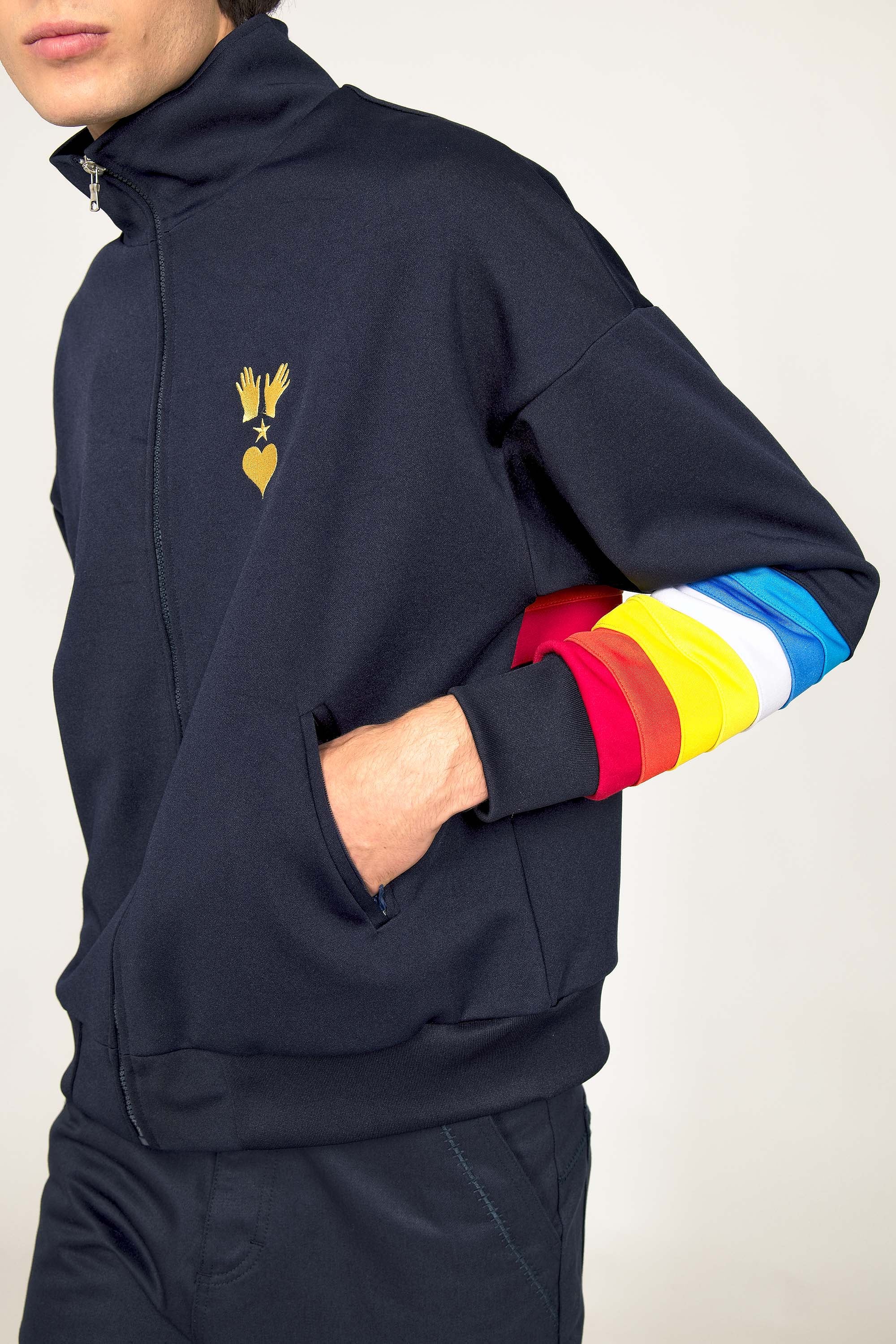 VESTE DE SPORT BLEU MARINE ZIPPÉE MANCHES ARC EN CIEL