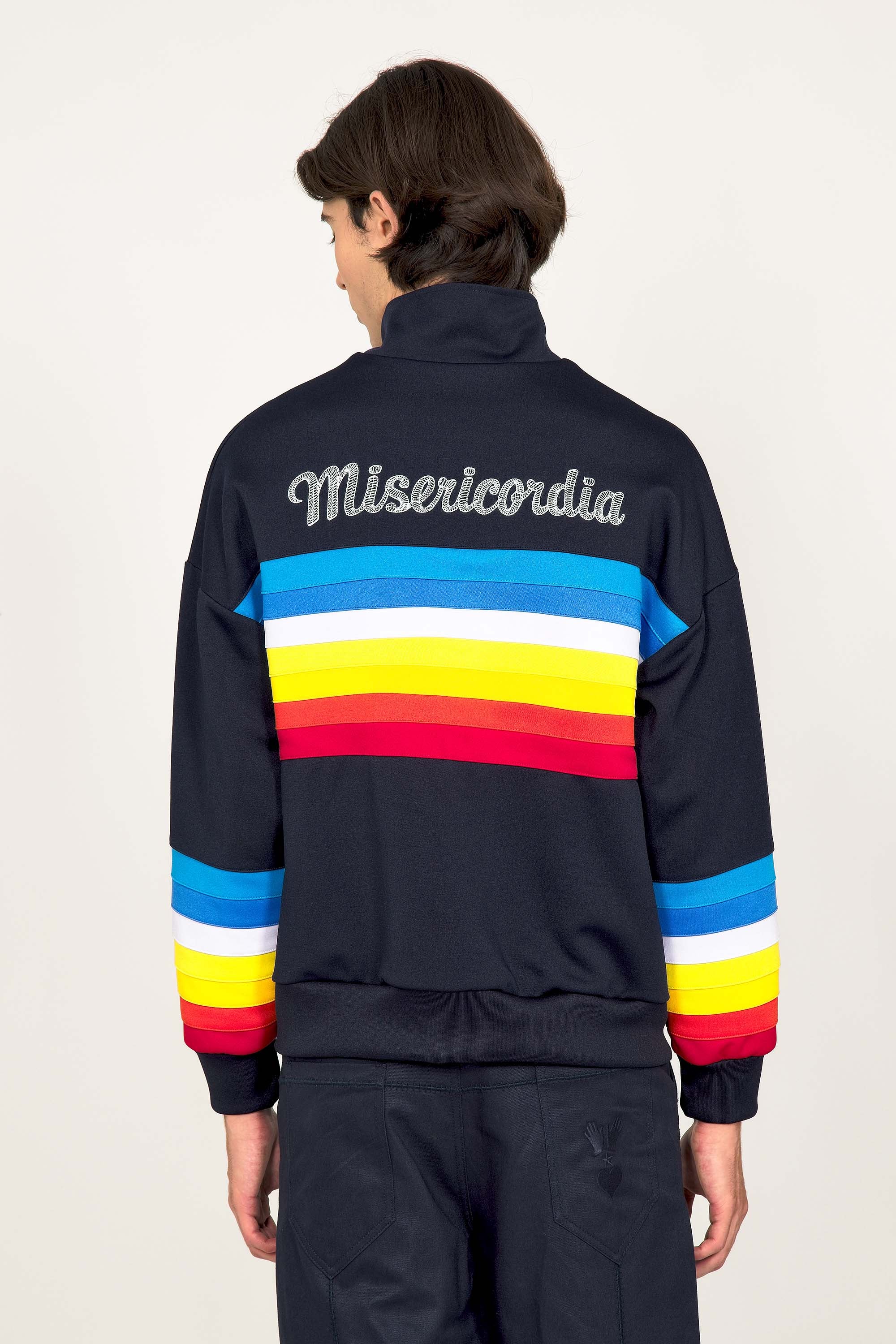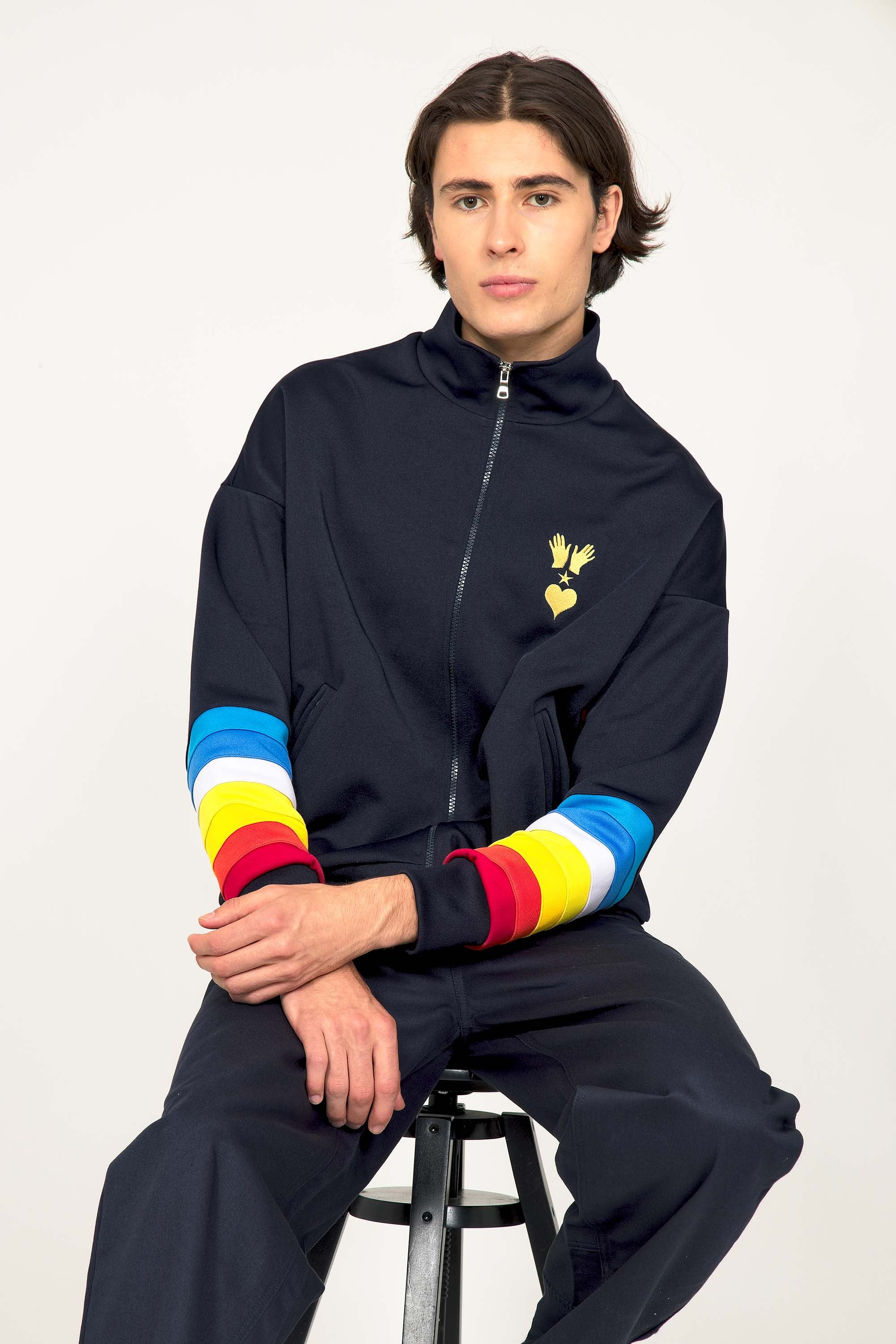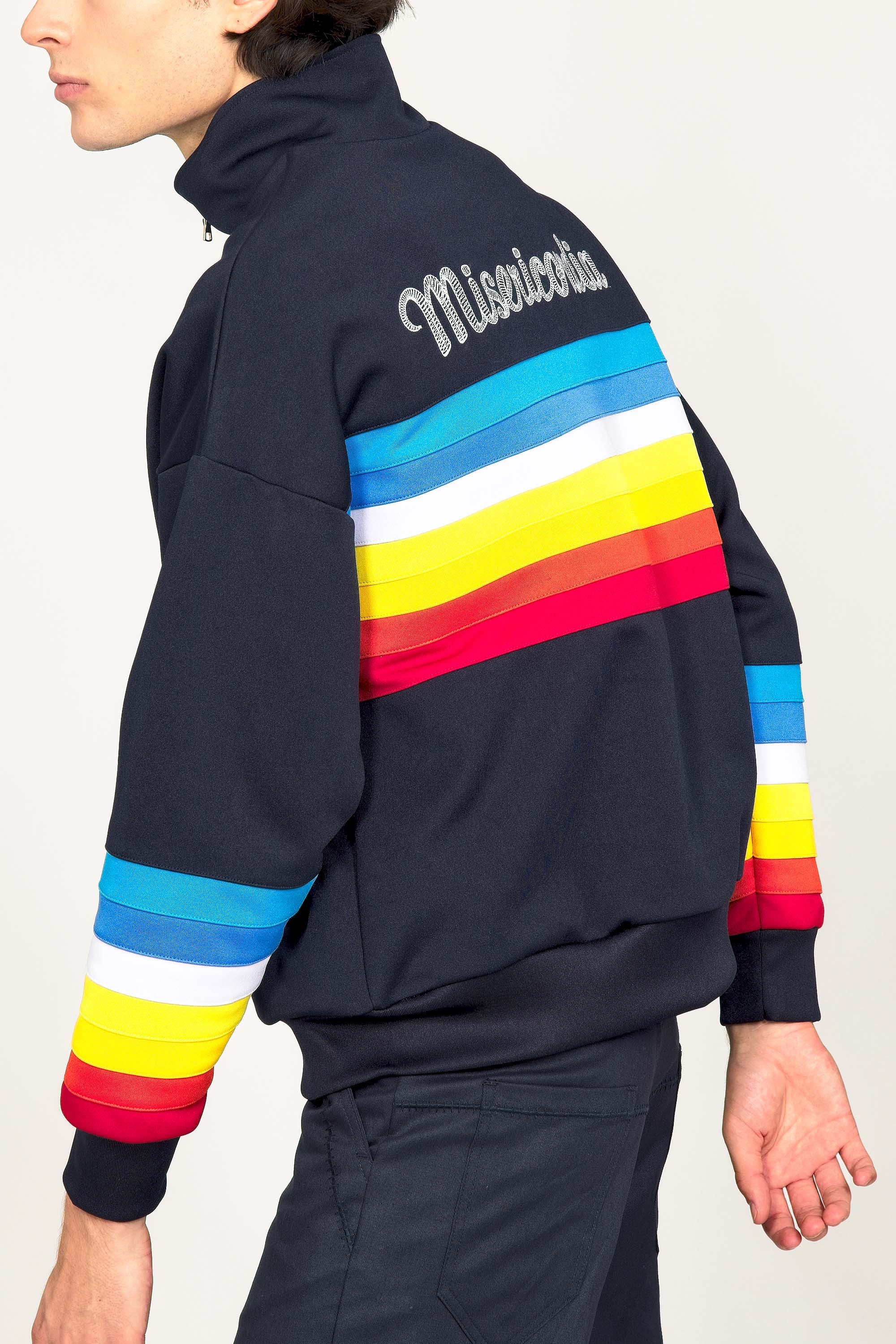 VESTE DE SPORT BLEU MARINE ZIPPÉE MANCHES ARC EN CIEL