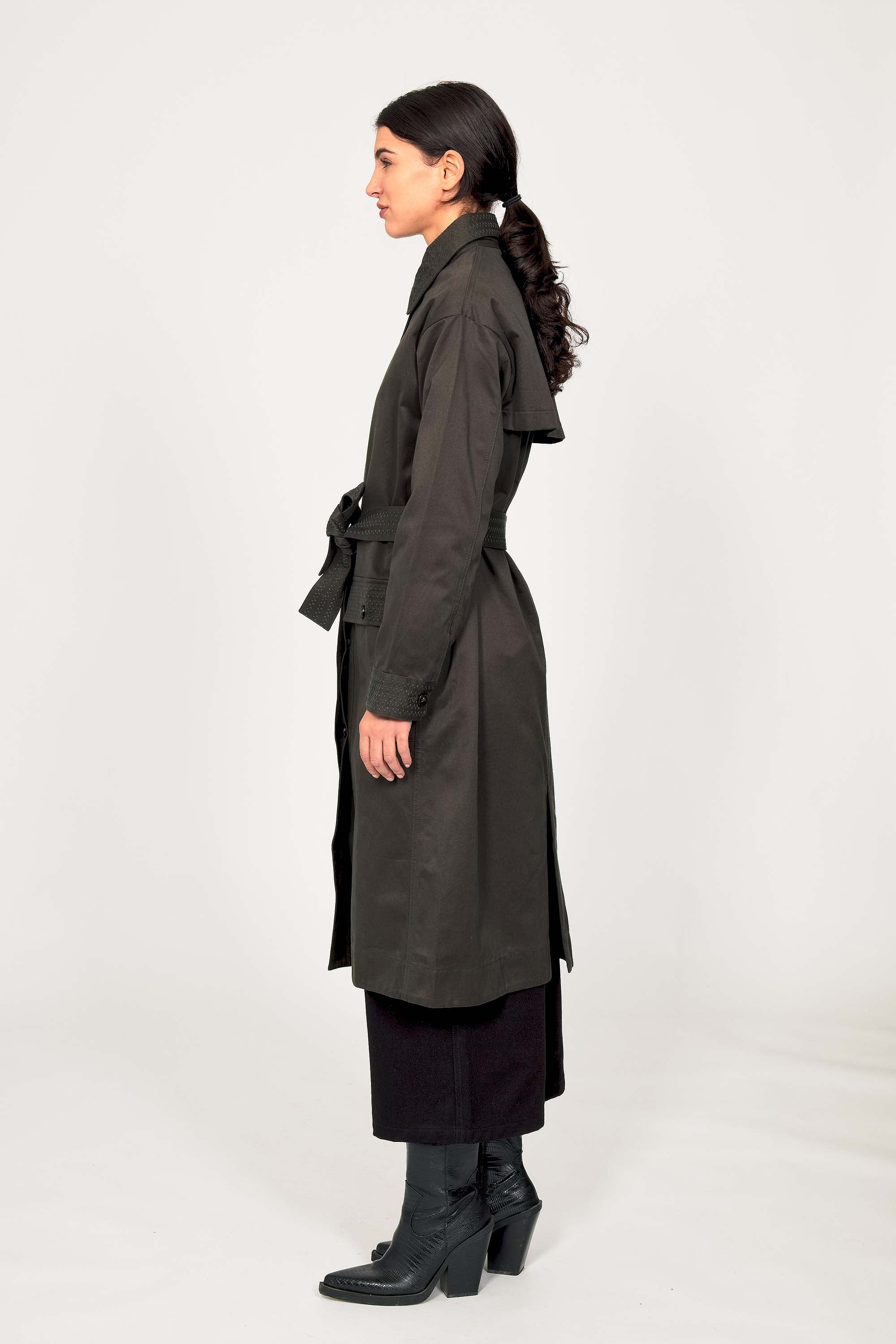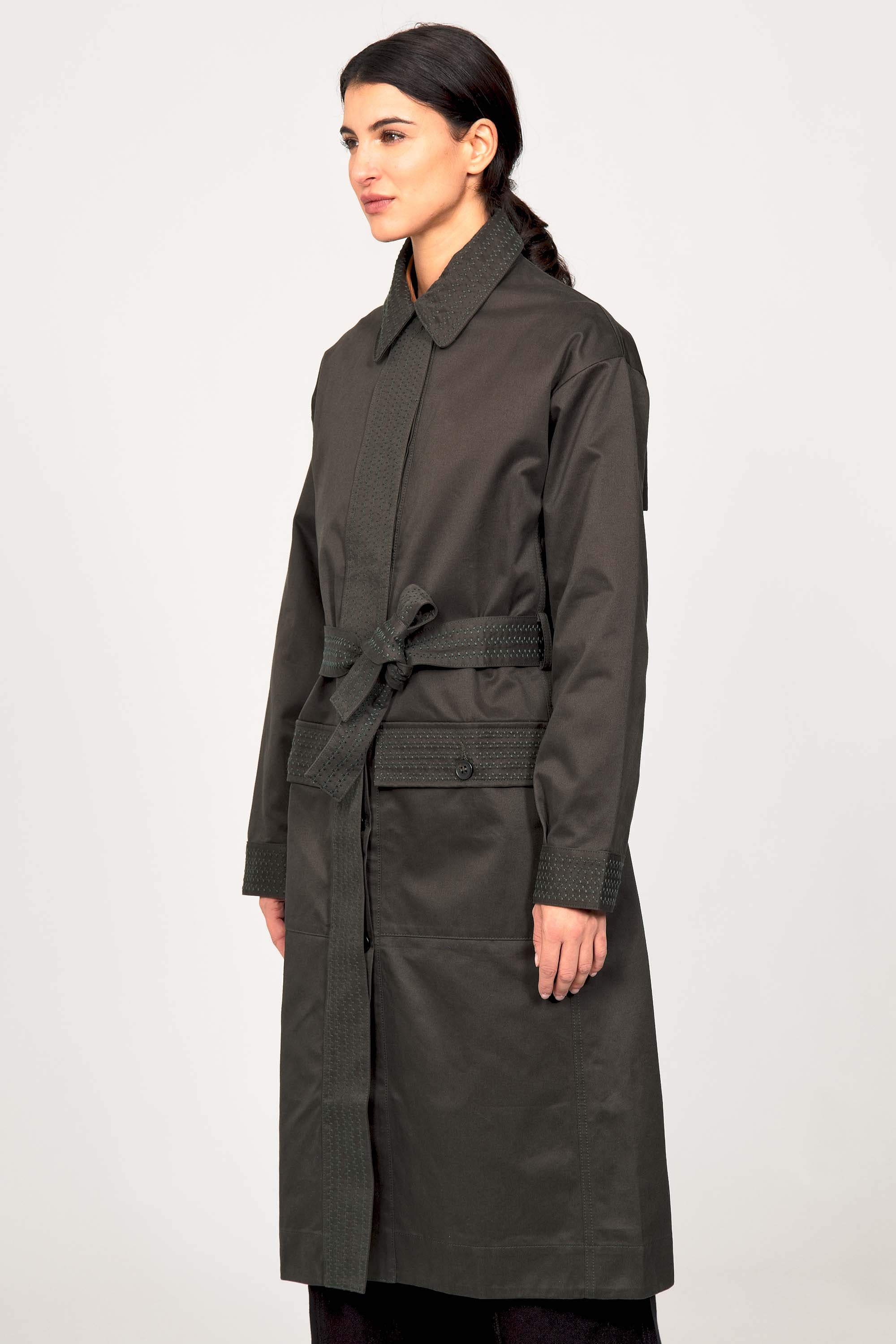 DARK GREEN LONG TRENCH COAT