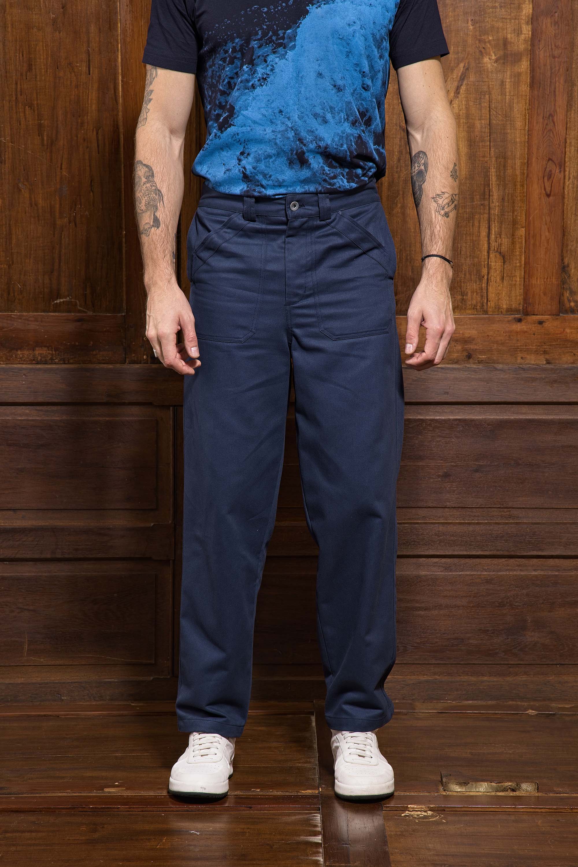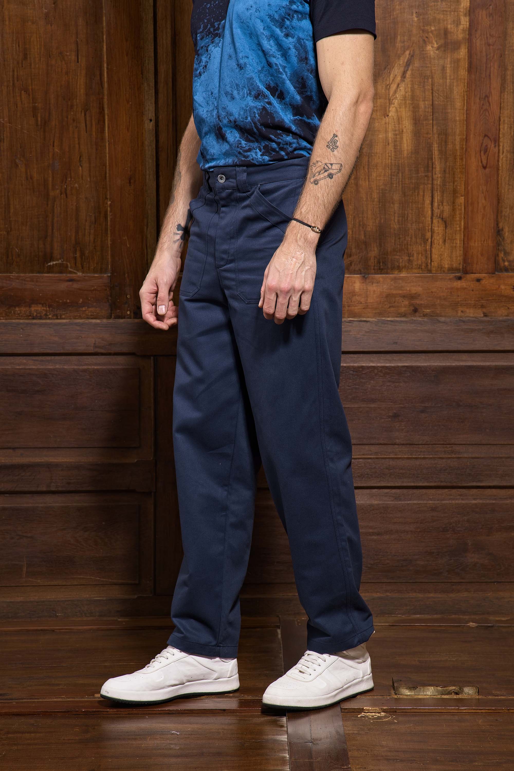 MEN'S NAVY COTTON PANTS WITH ONE BACK POCKET