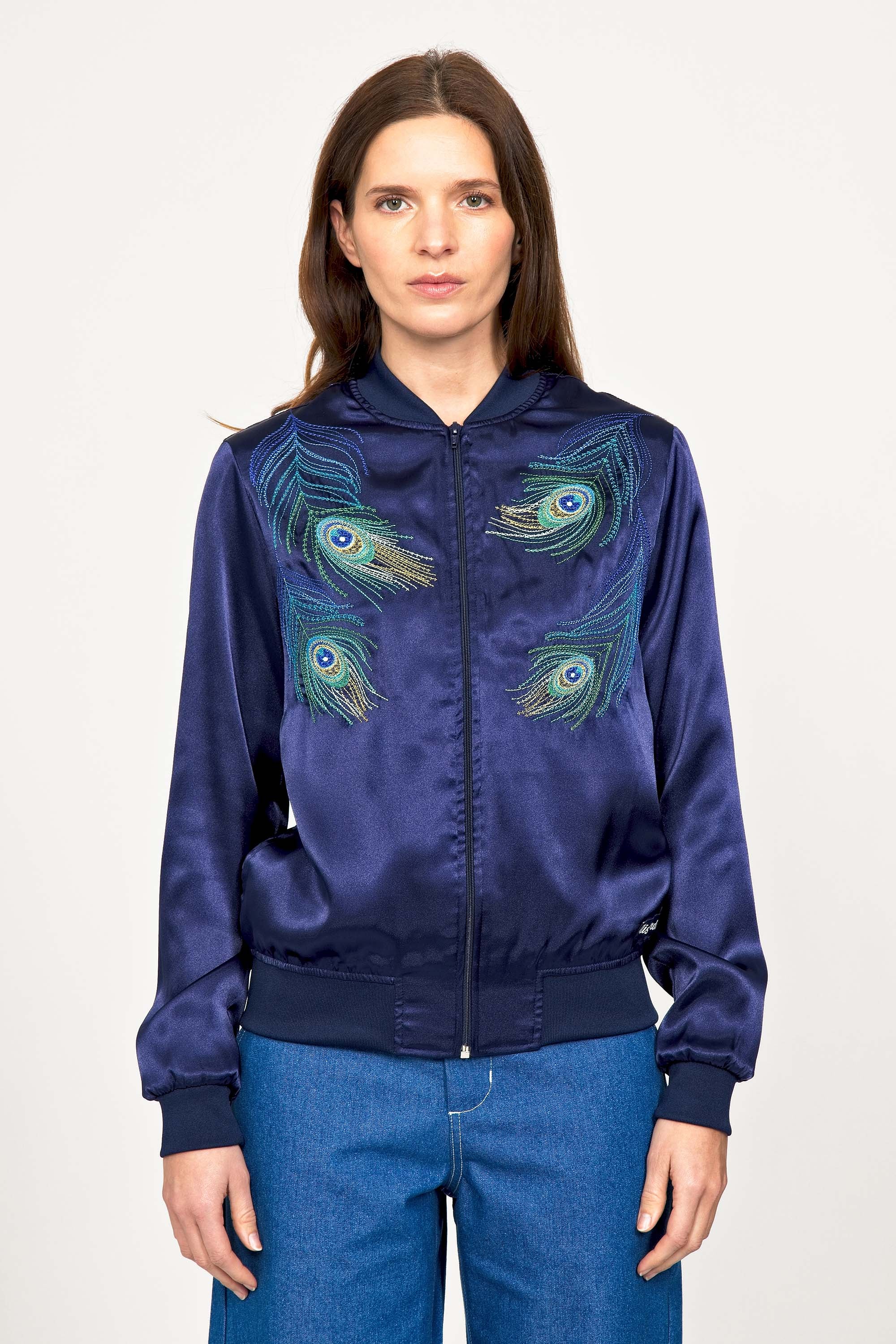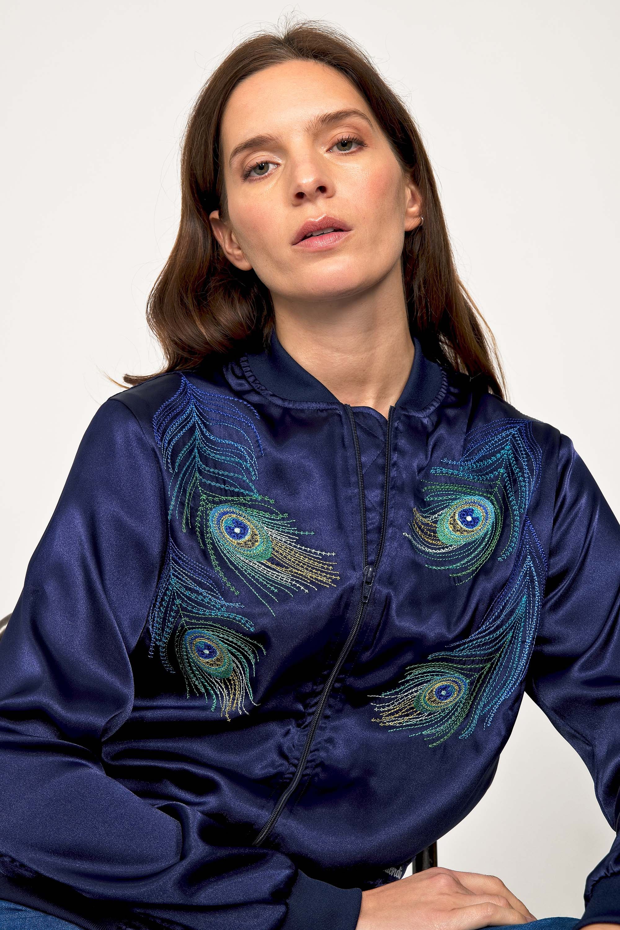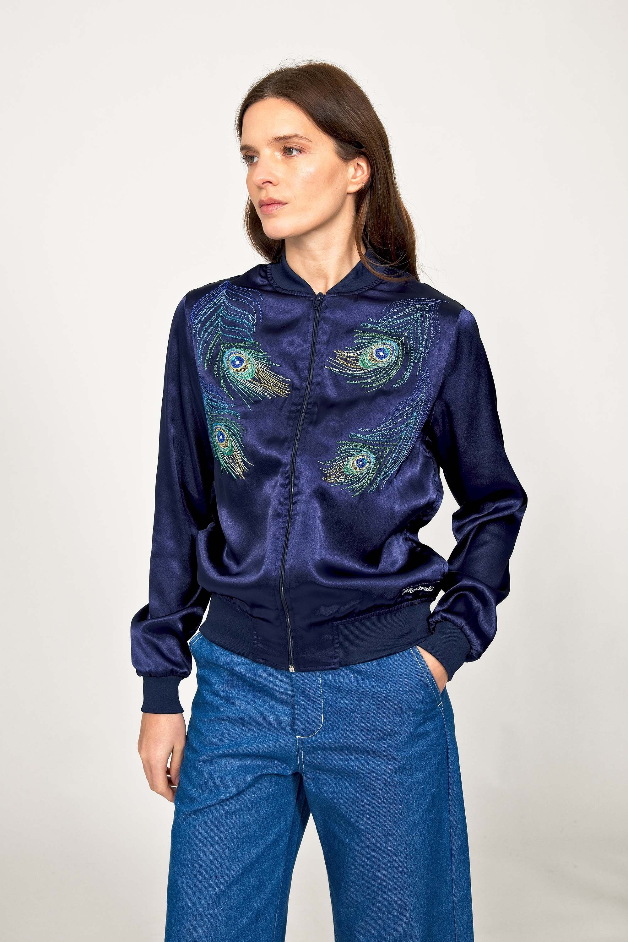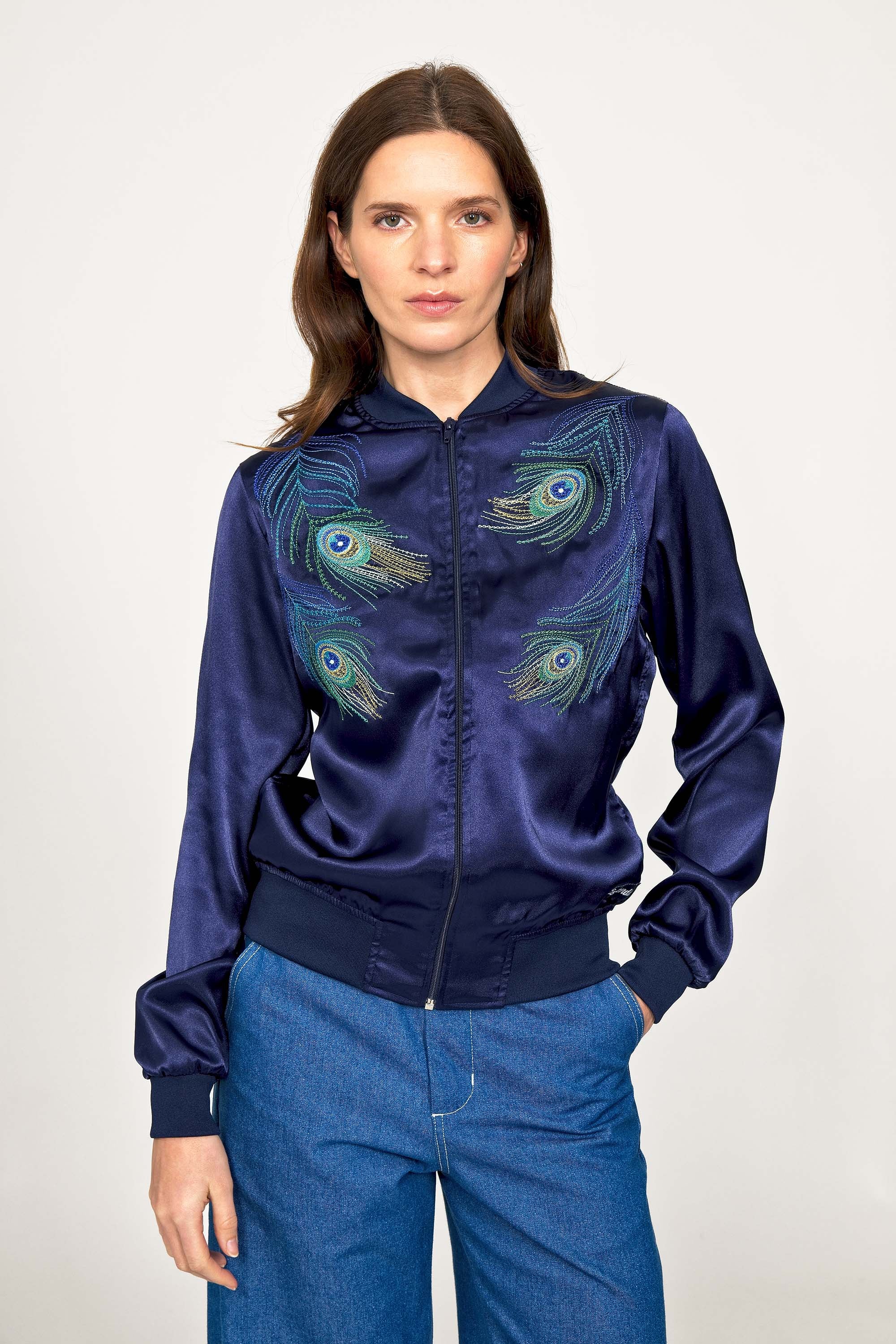 Blue souvenir jacket Paraguas Pavo Real
