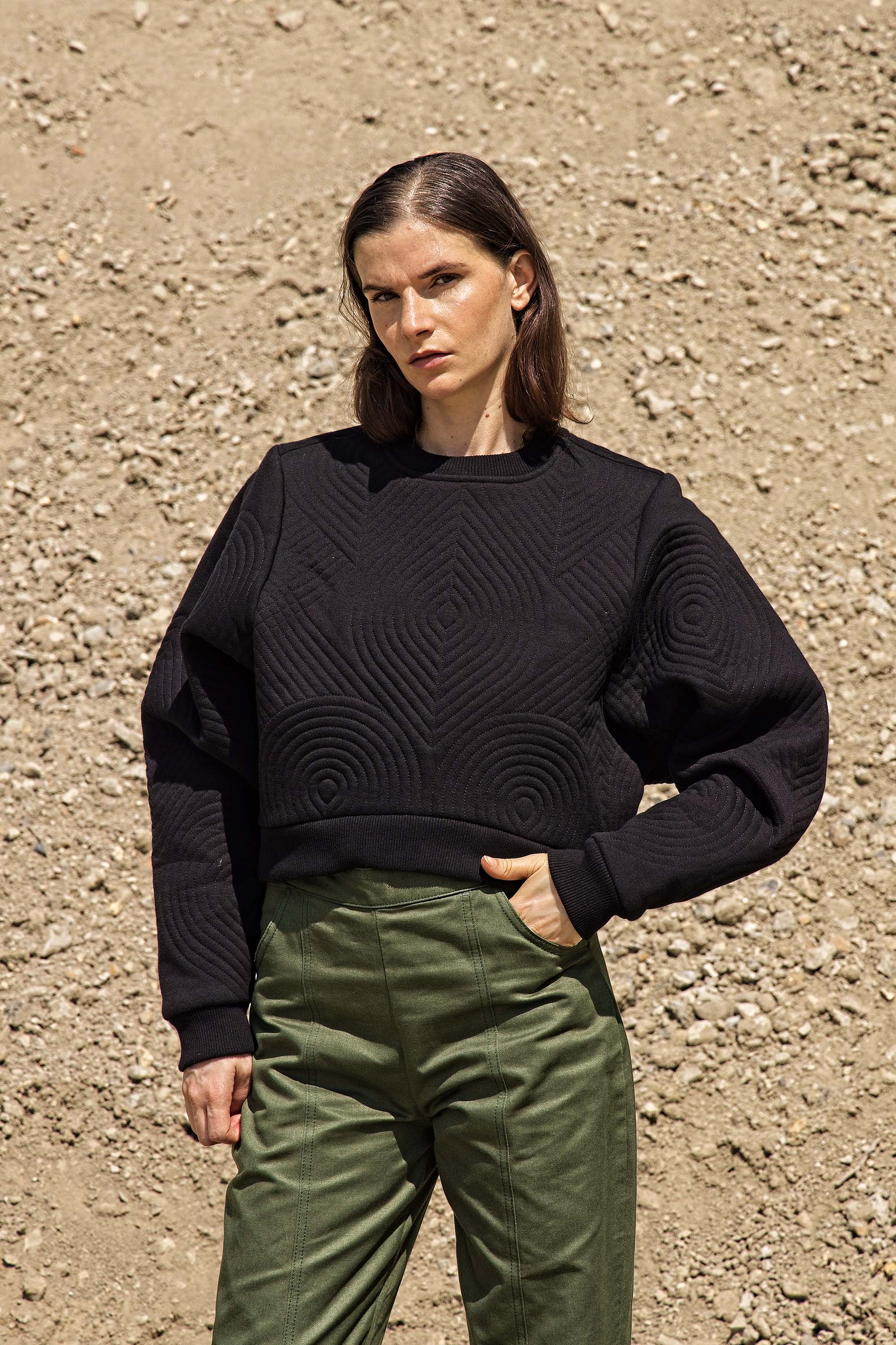 This sweatshirt revisits the codes of streetwear with its cropped cut and batwing sleeves ; twisted by its quilted pattern and its casual and feminine design at the same time.