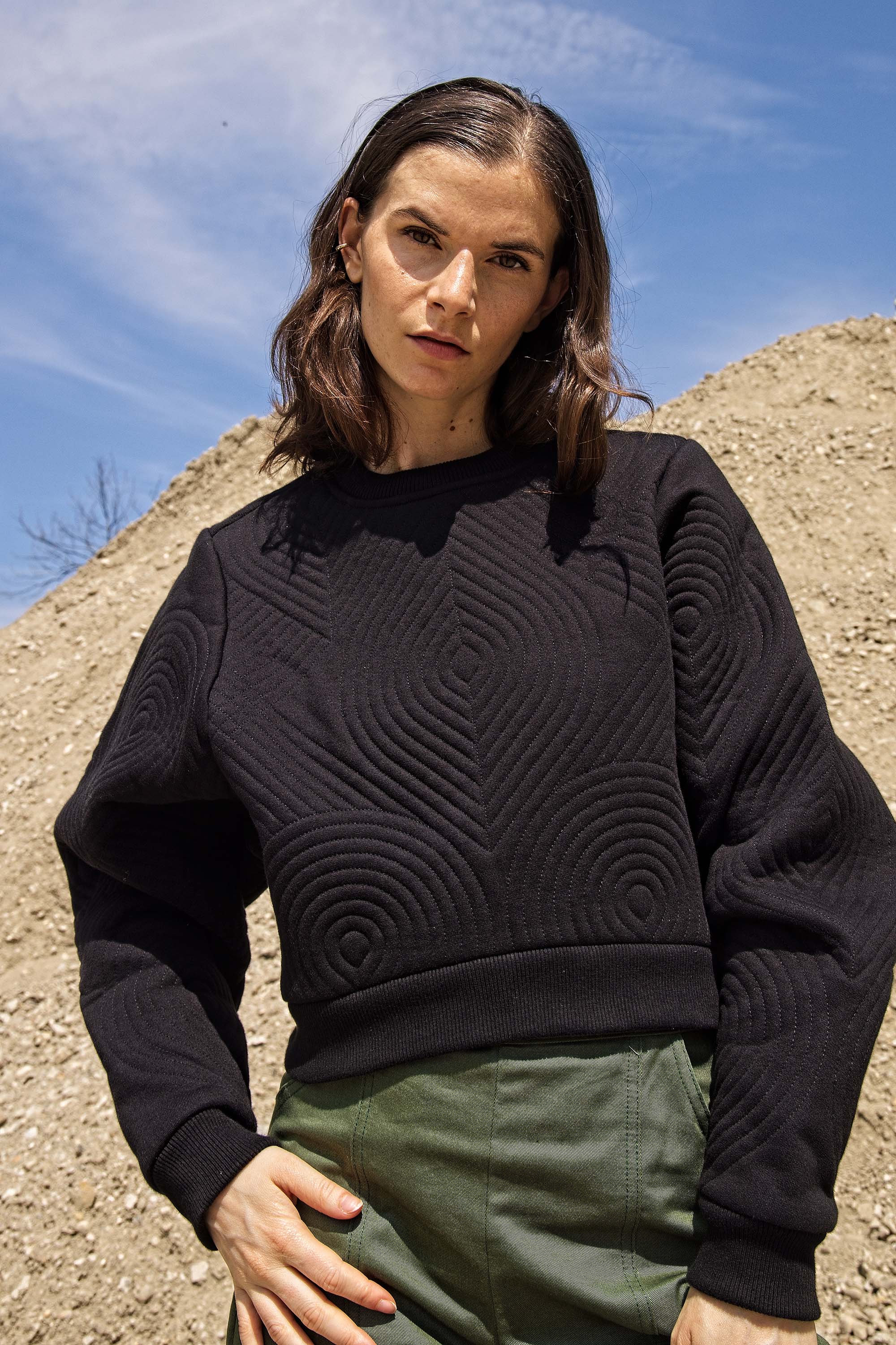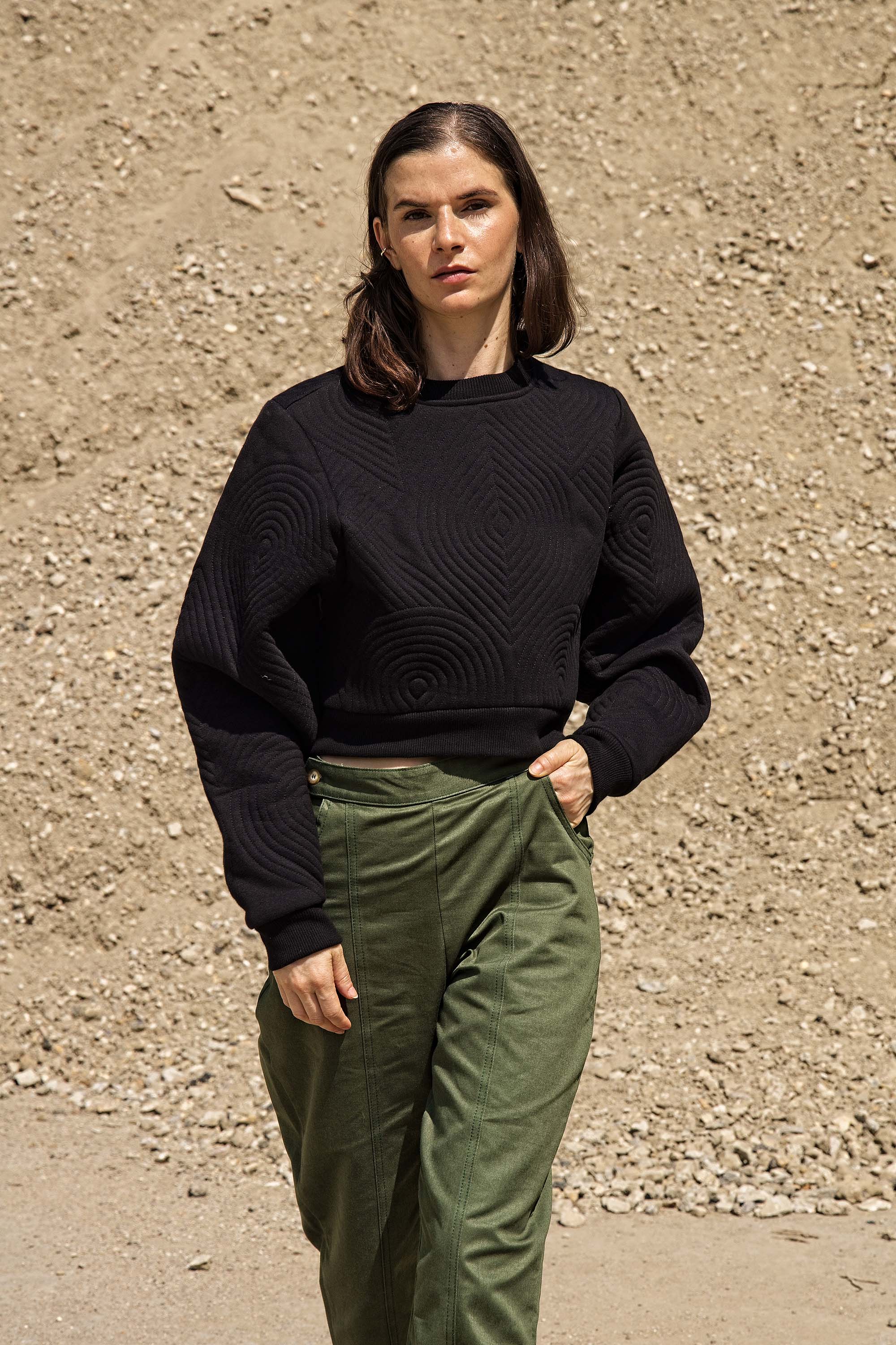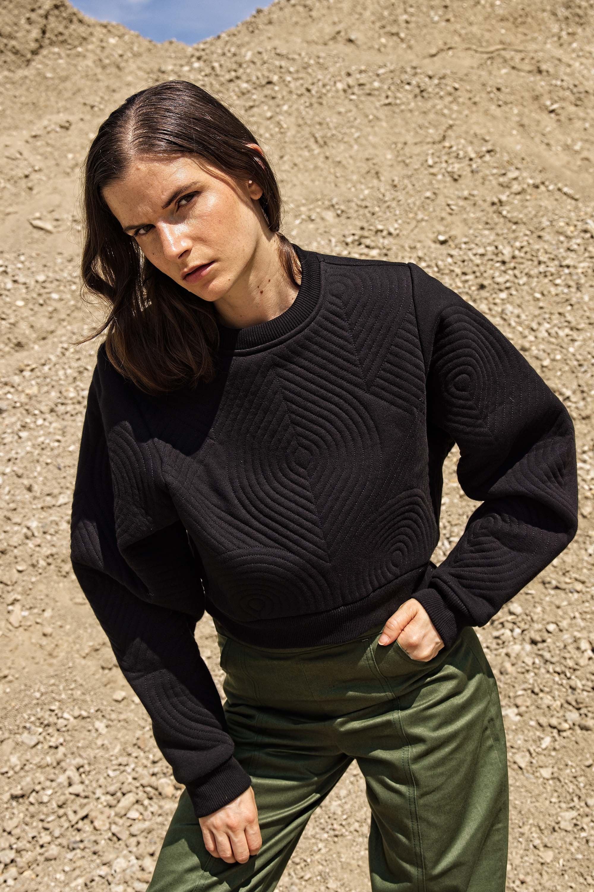 BLACK OVERSIZED QUILTED CROPPED SWEATSHIRT
