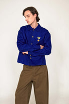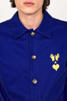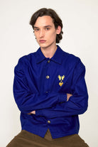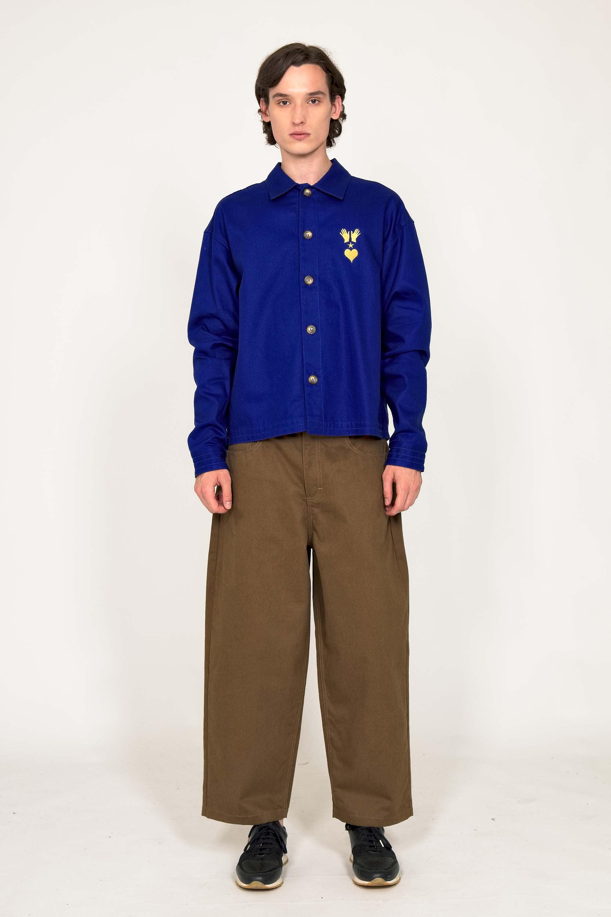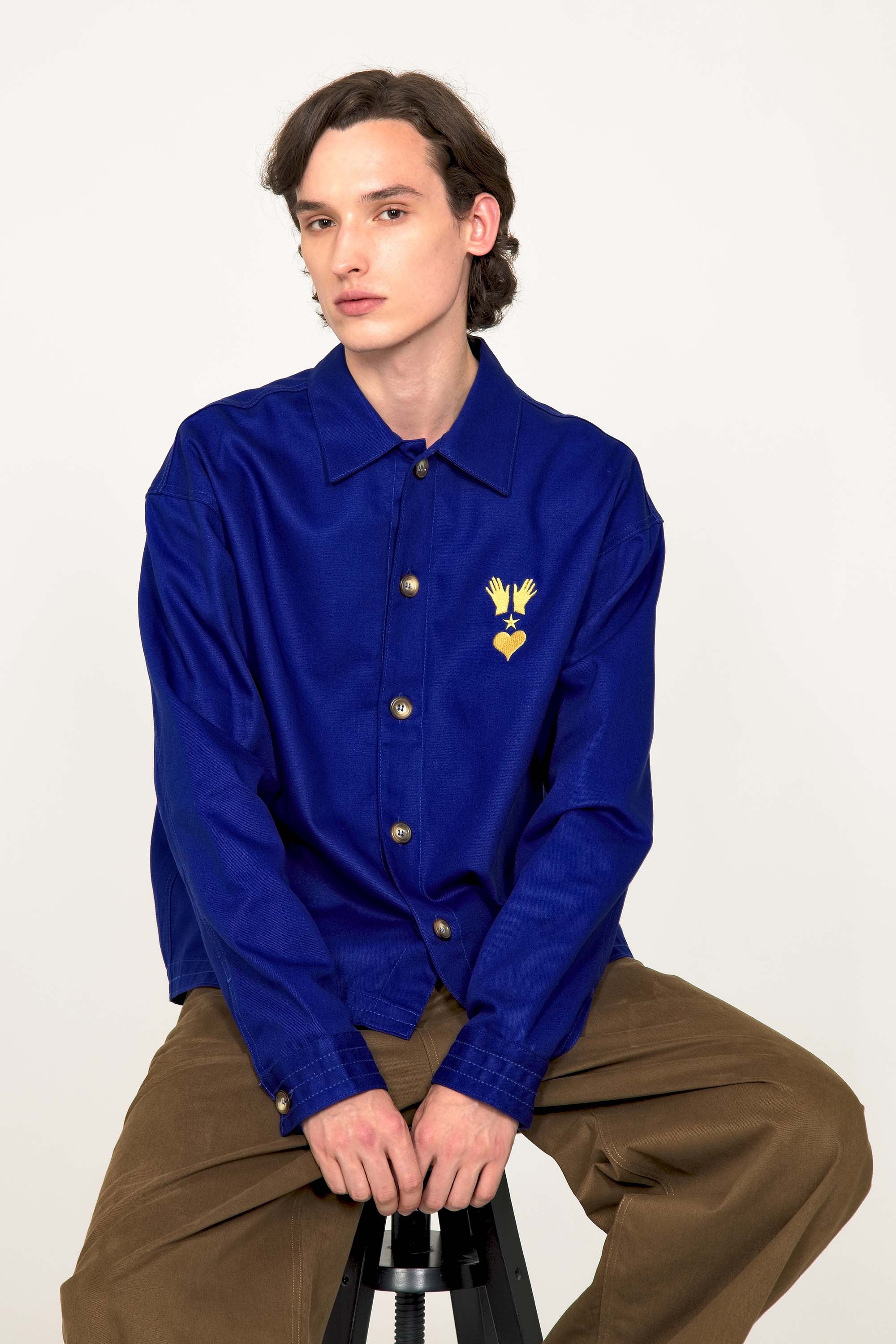SAPPHIRE BLUE WIDE-CUT SHIRT EMBROIDERED WITH OUR LOGO