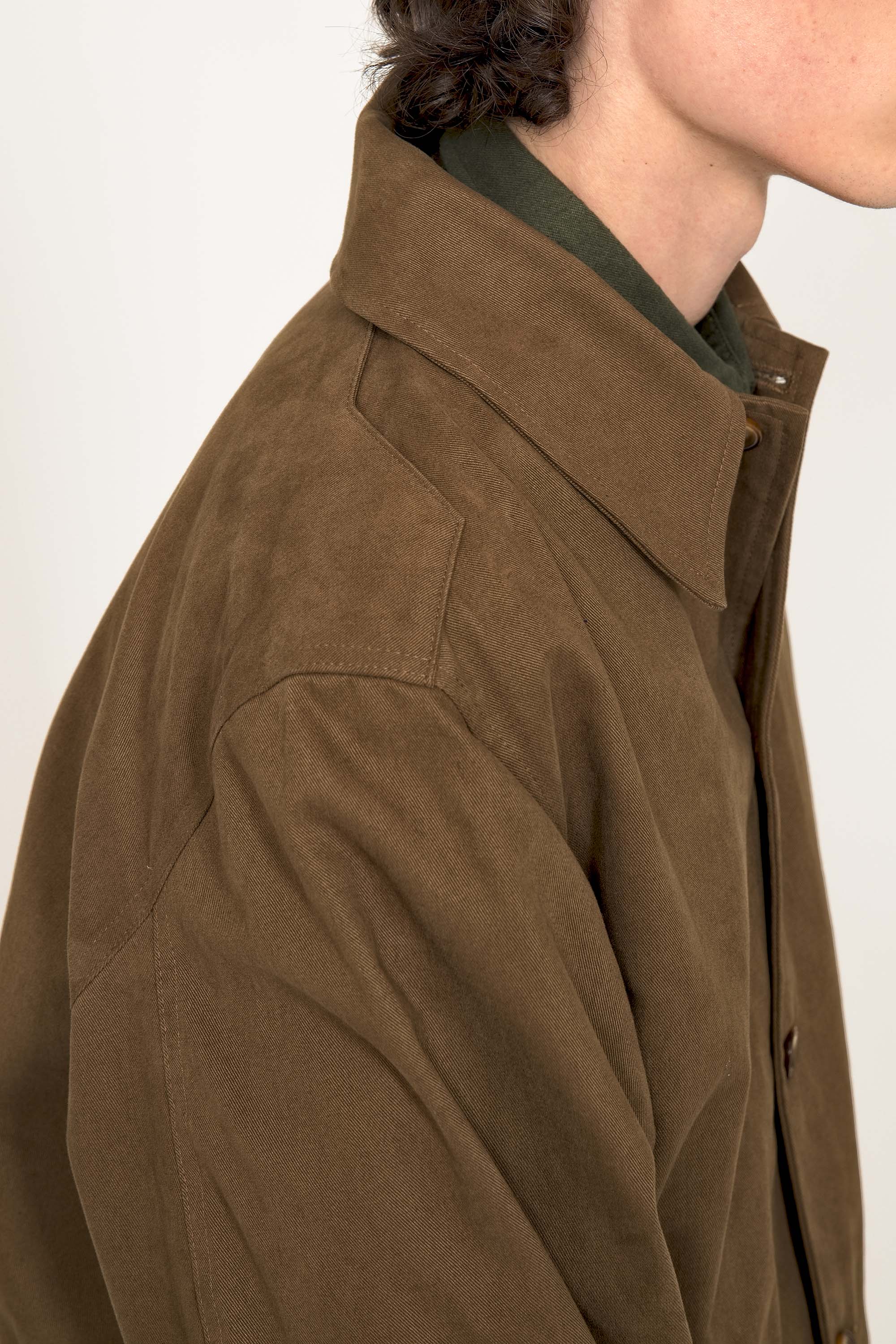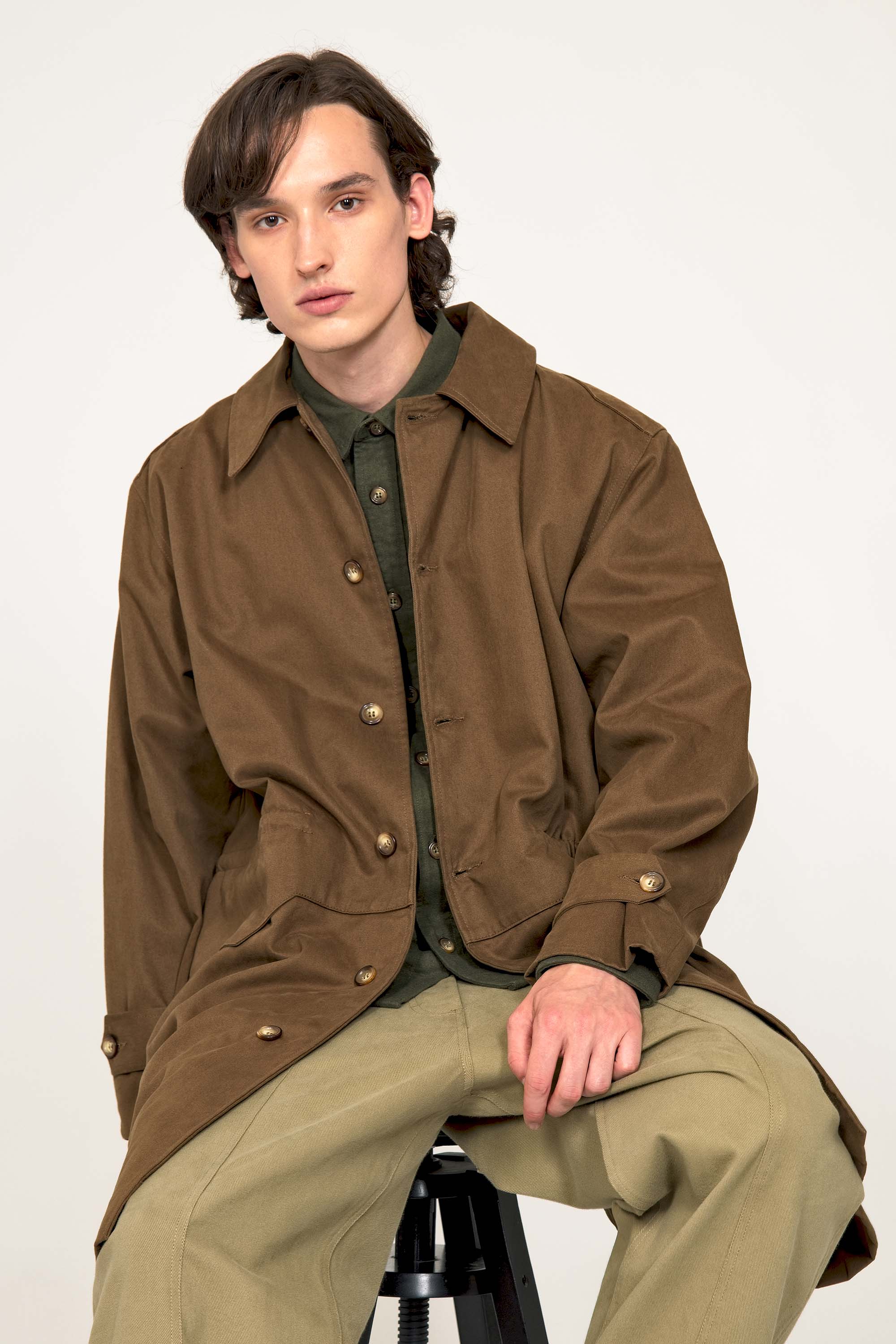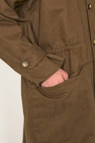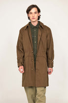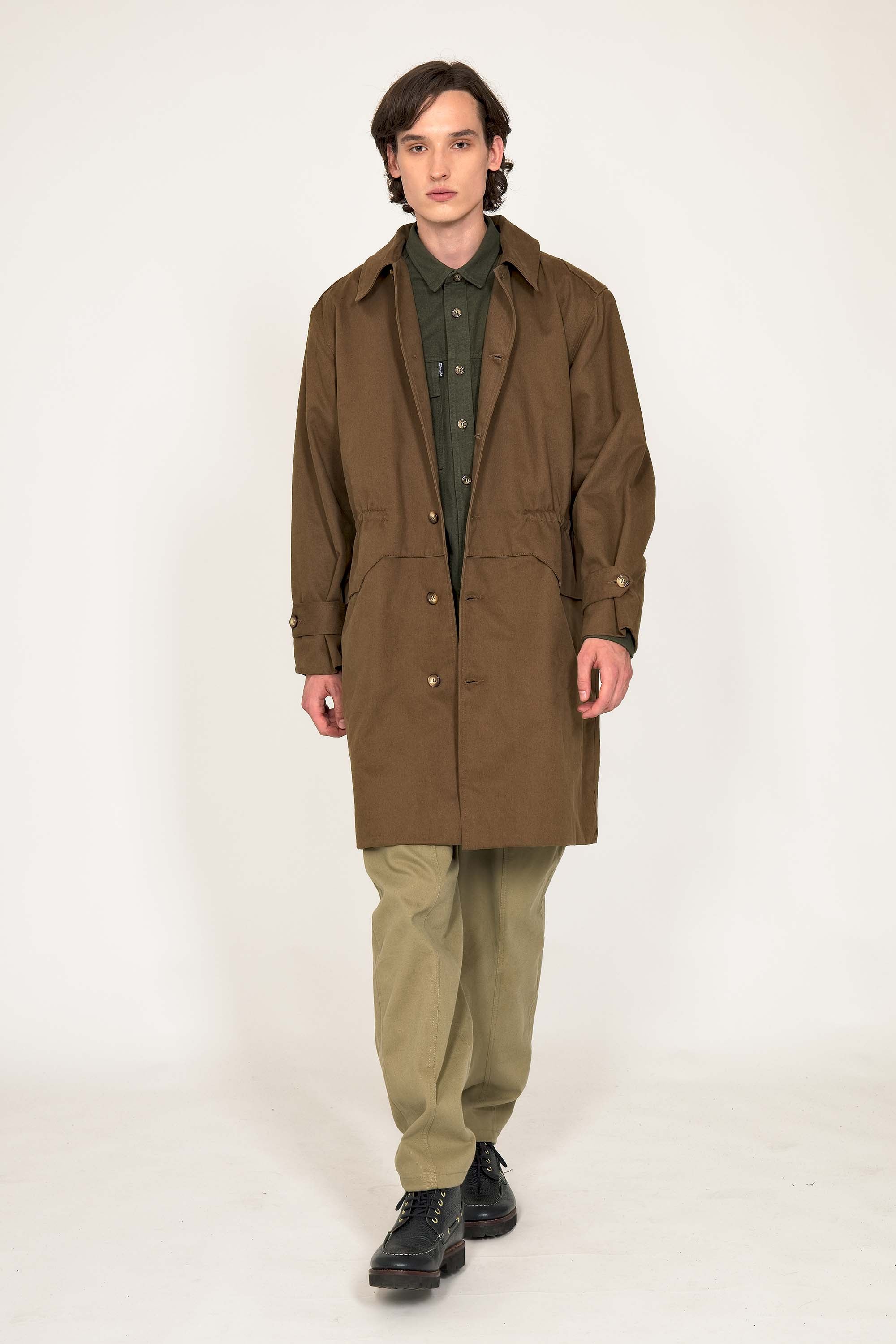 LONG COAT IN MILITARY PARKA STYLE IN BRONZE COTTON WITH RED LINING