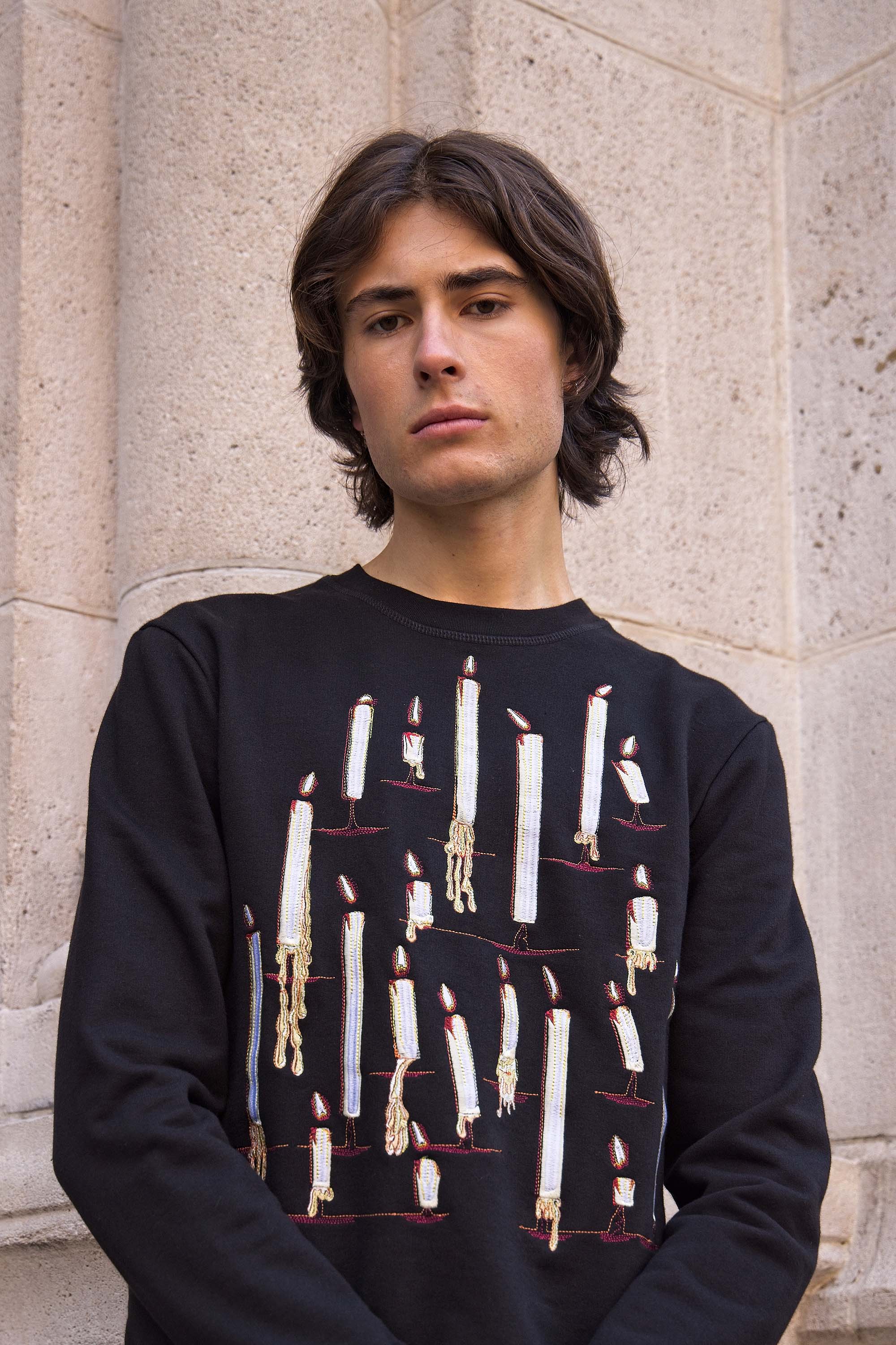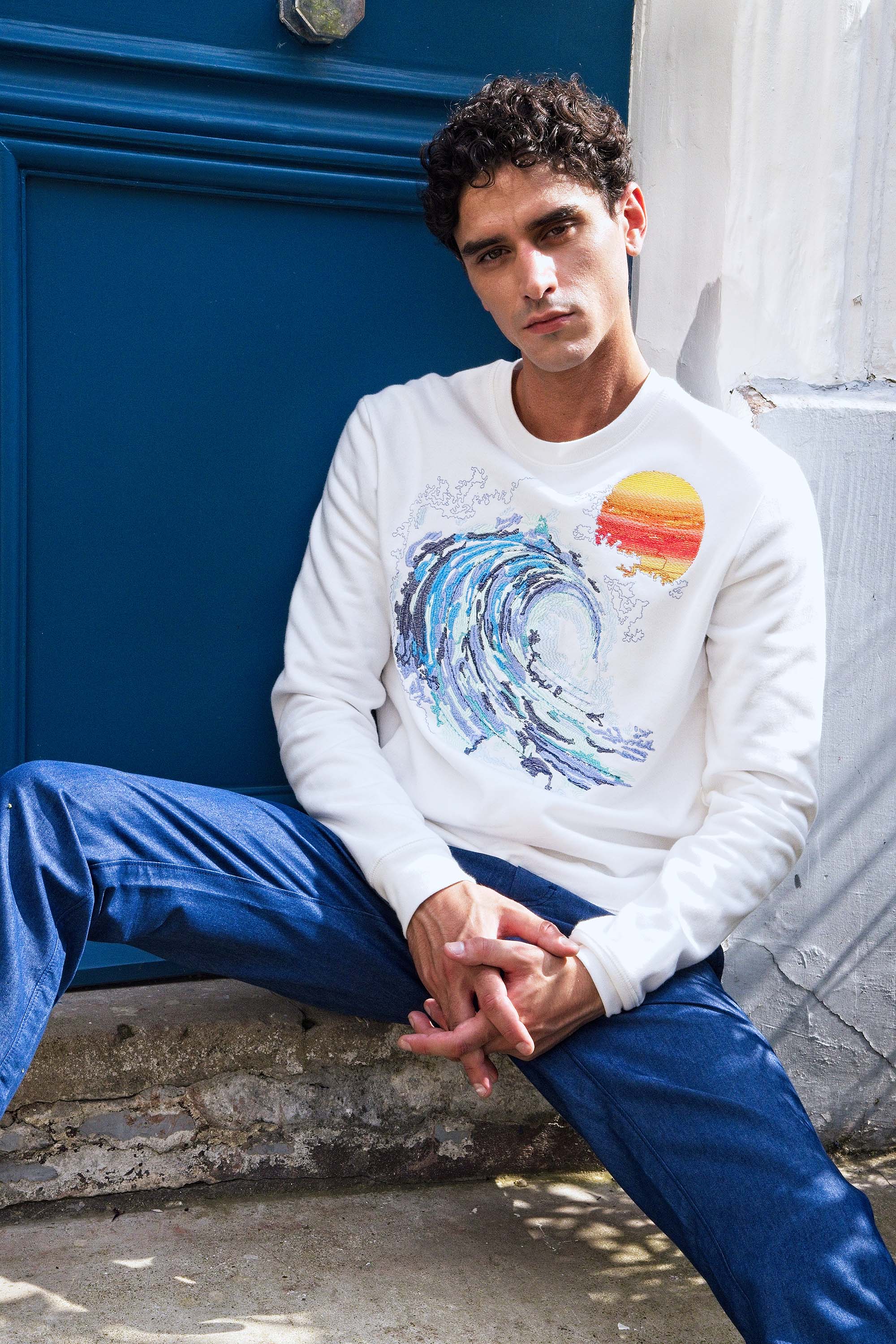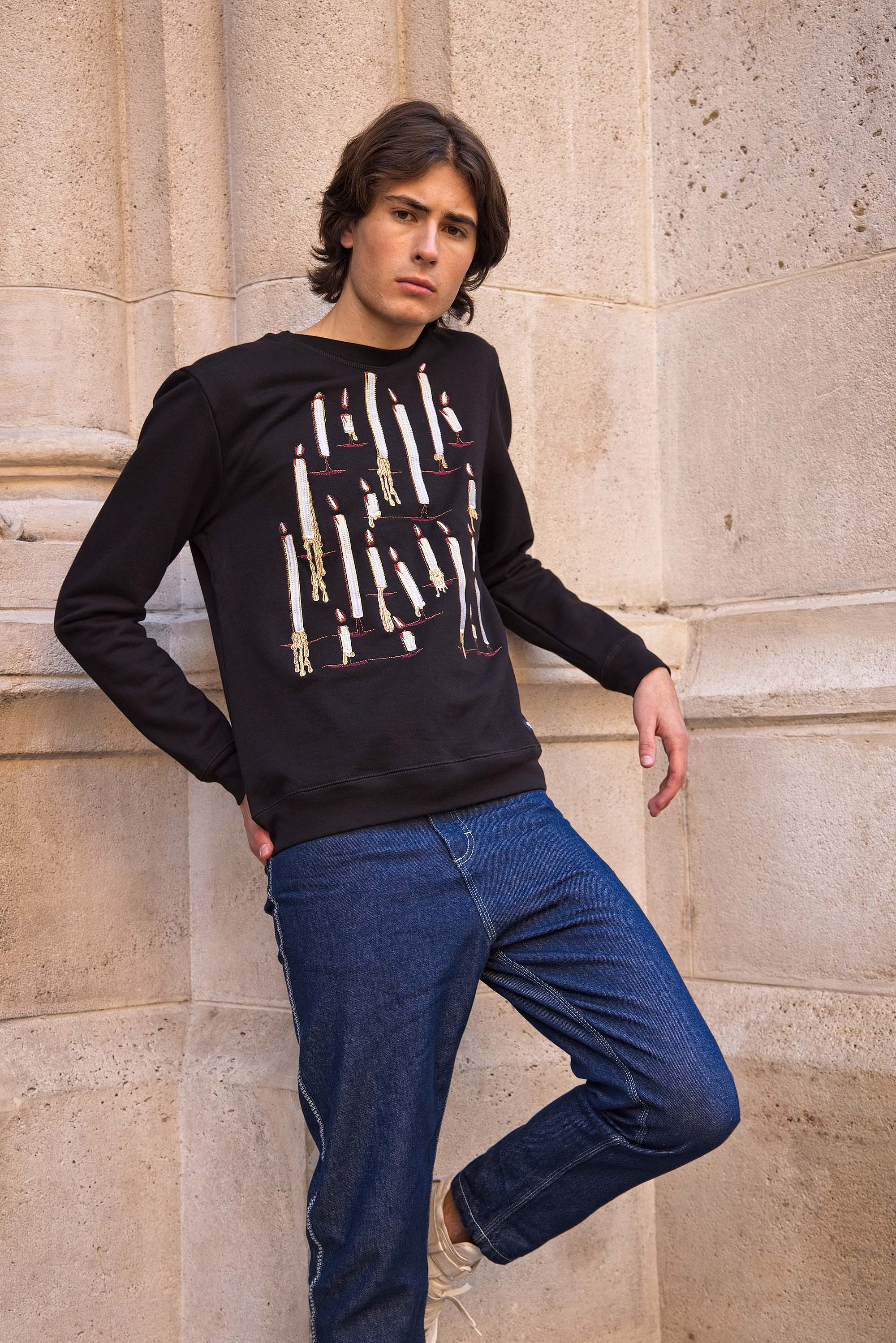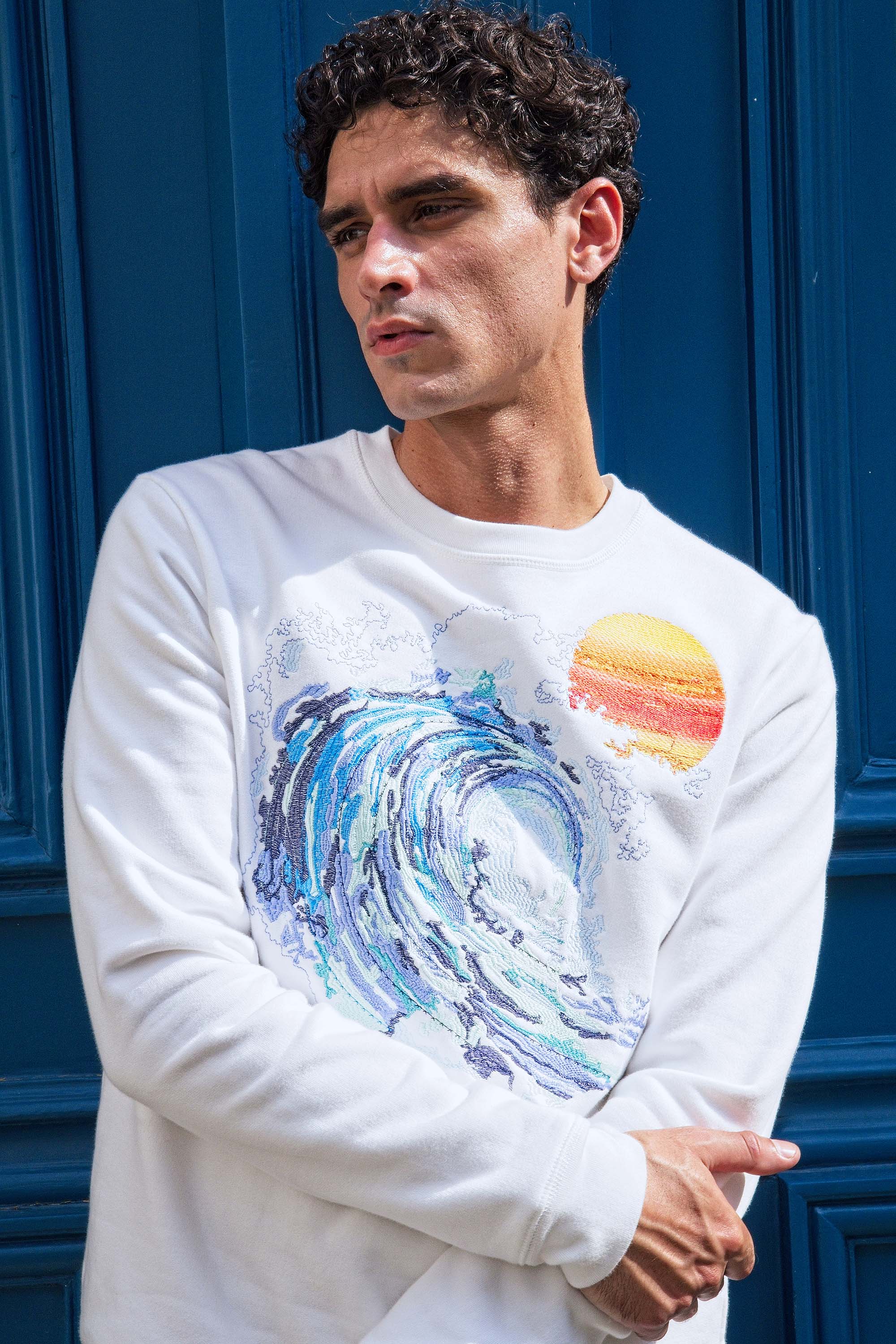 Our contemporary and original sweatshirts highlight the masculine silhouette while allowing men to express their creativity .