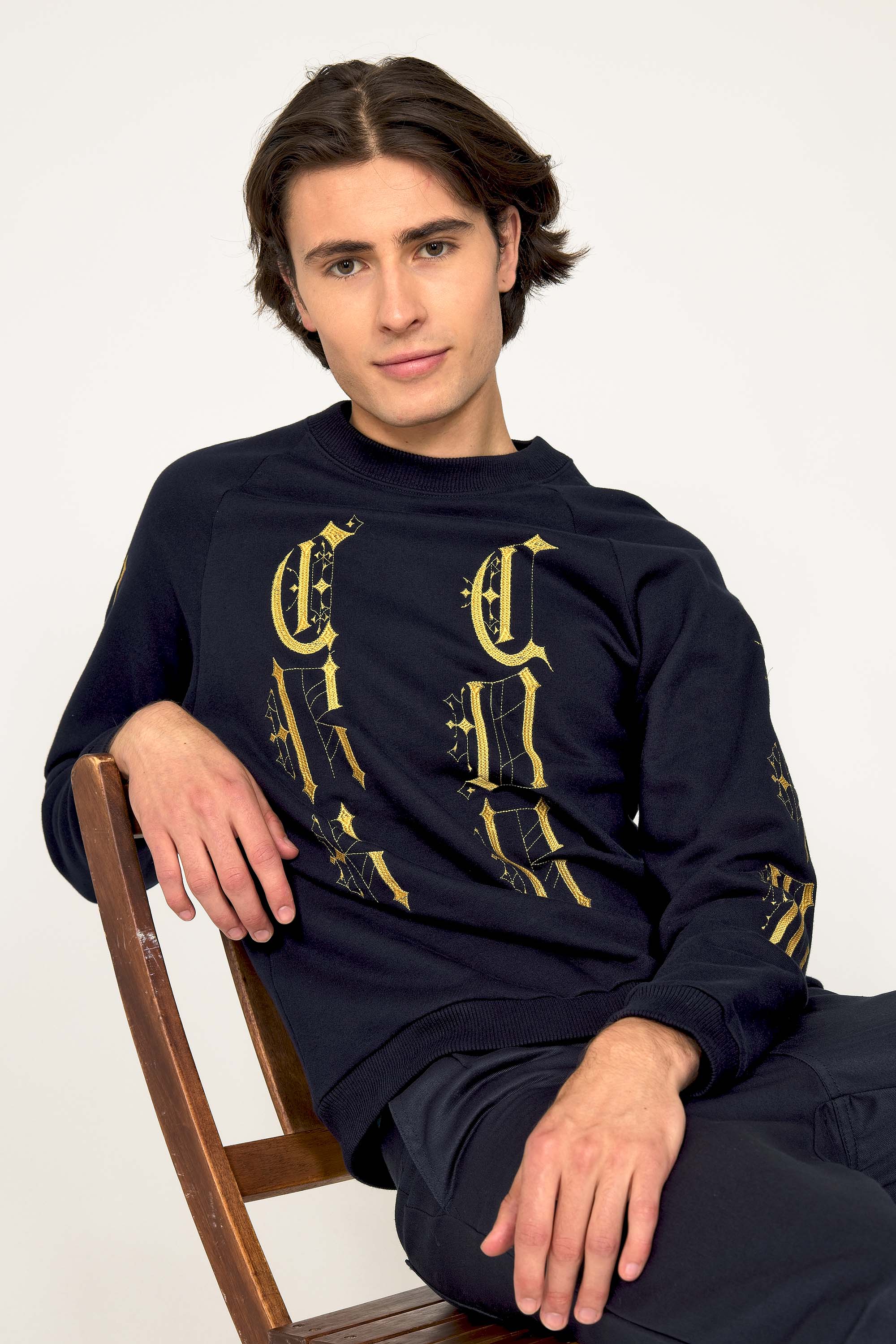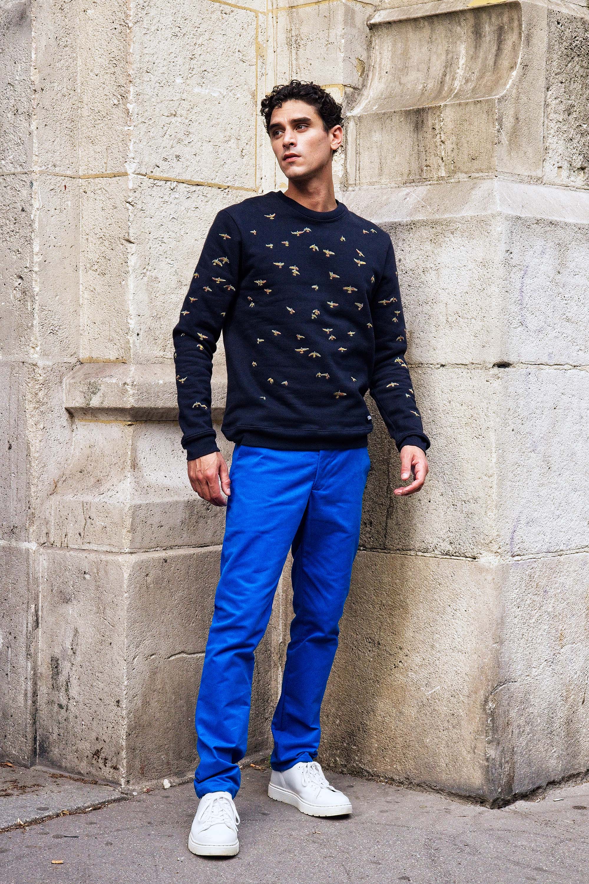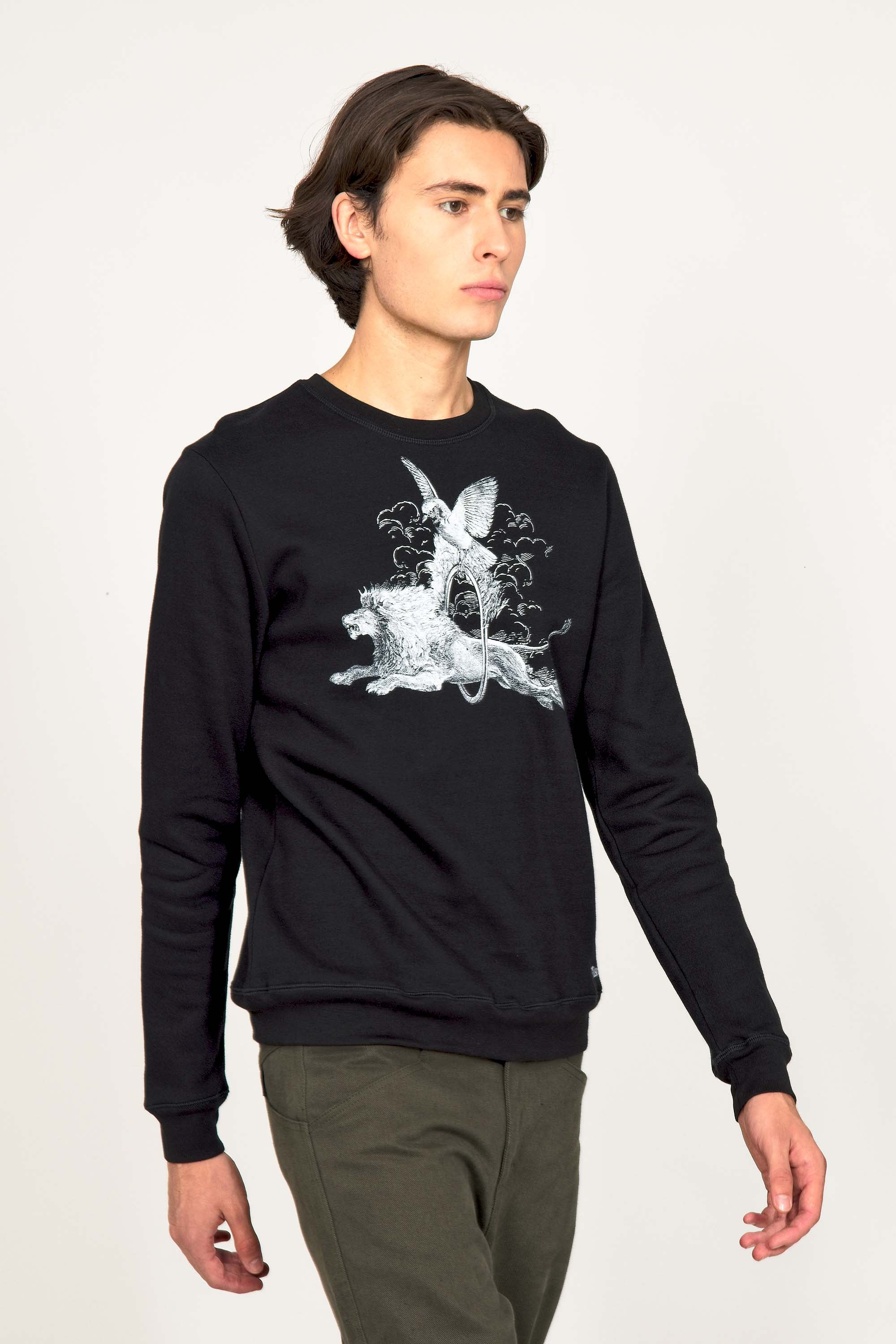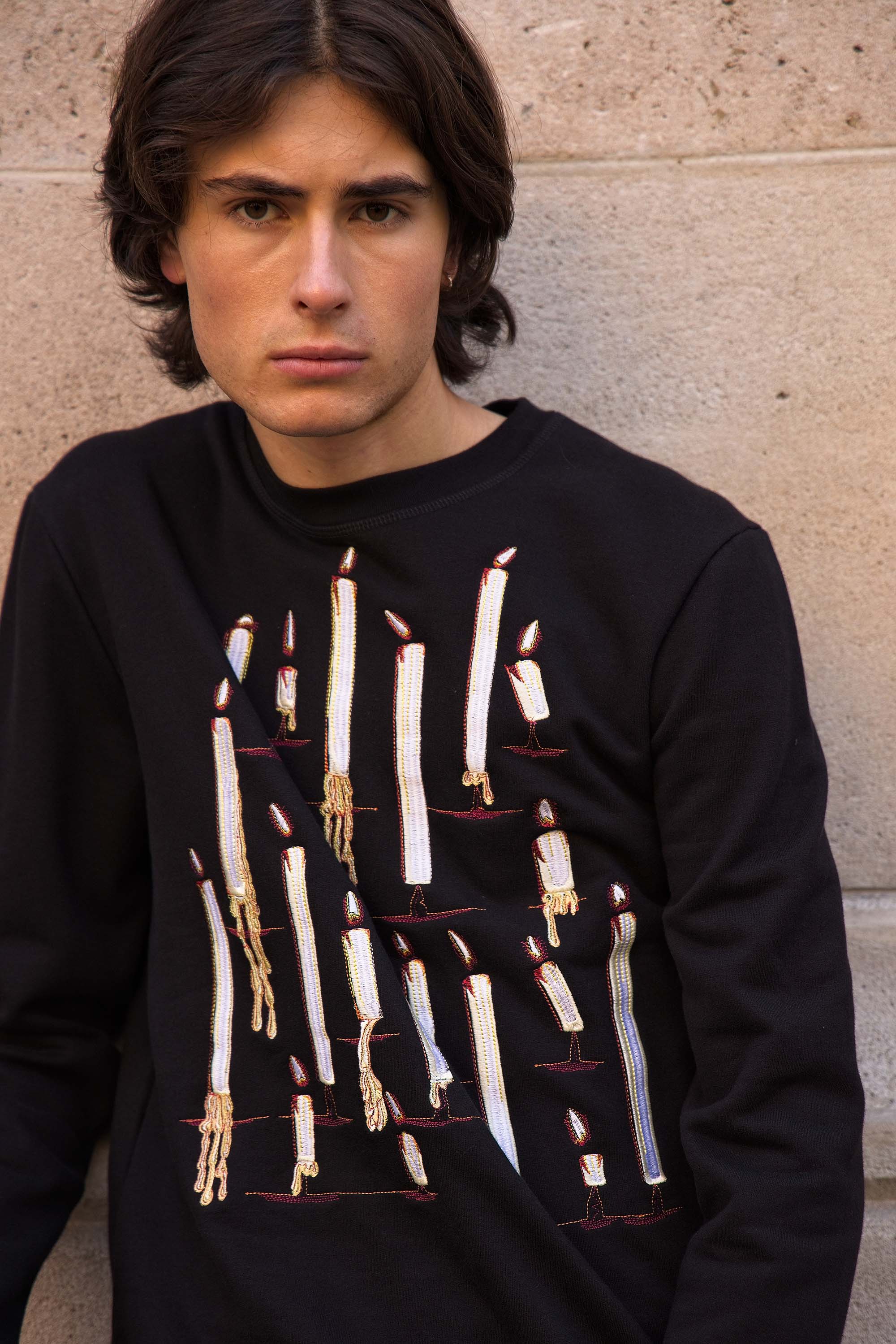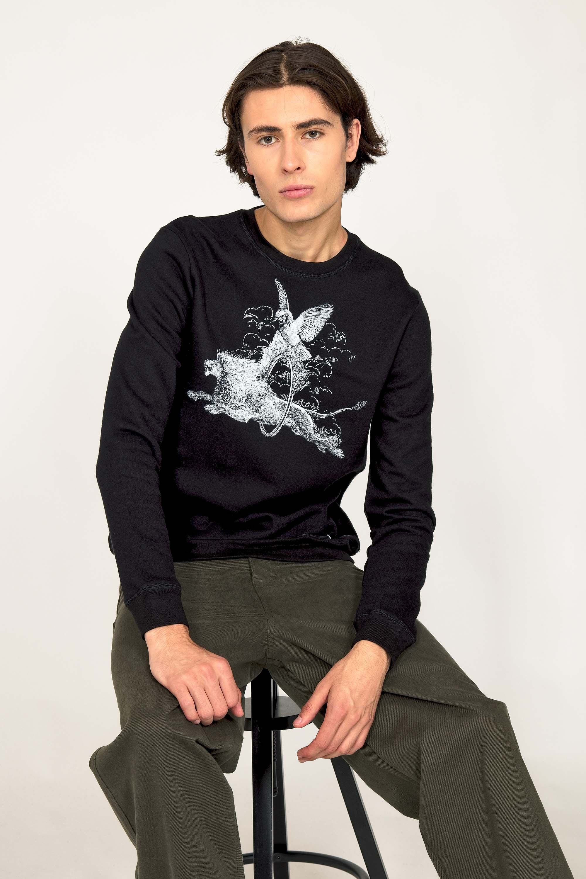 Our contemporary and original sweatshirts highlight the masculine silhouette while allowing men to express their creativity .