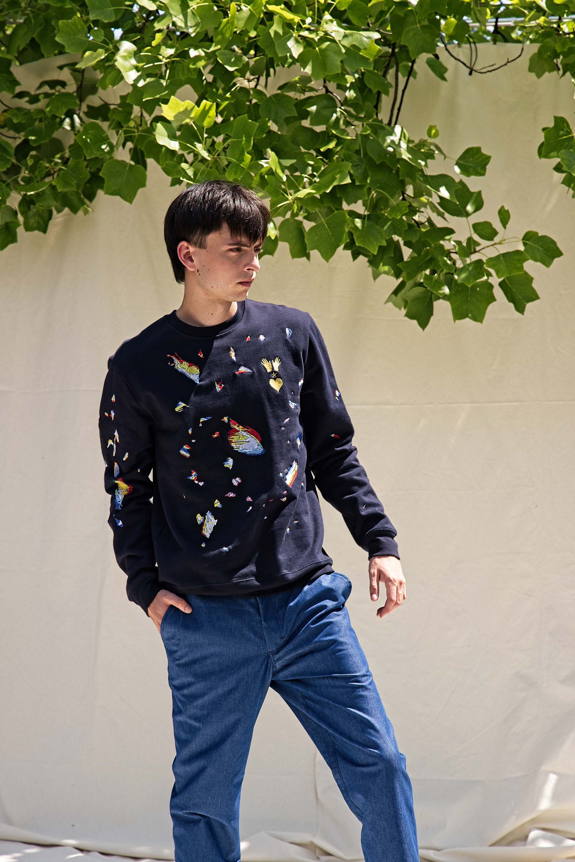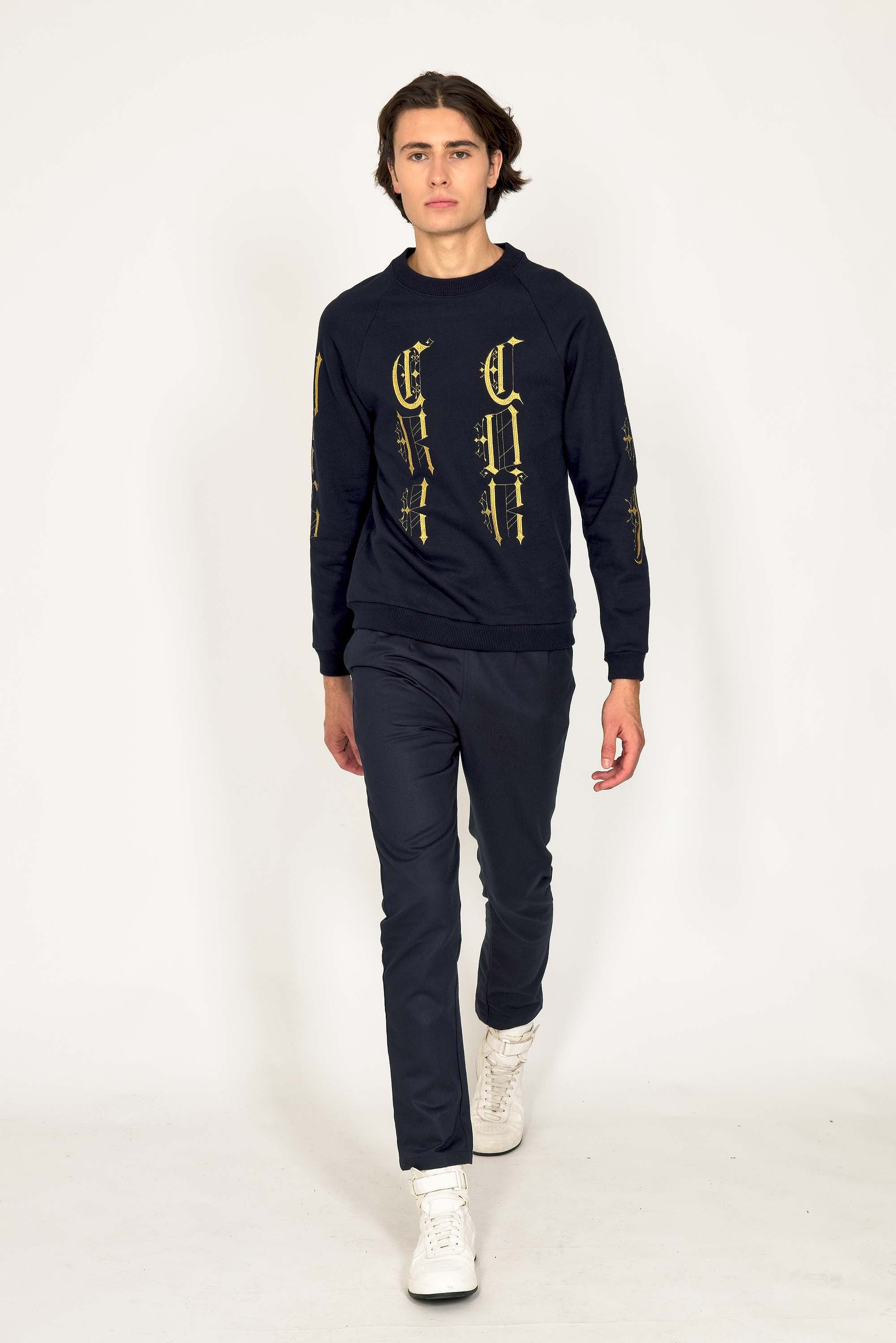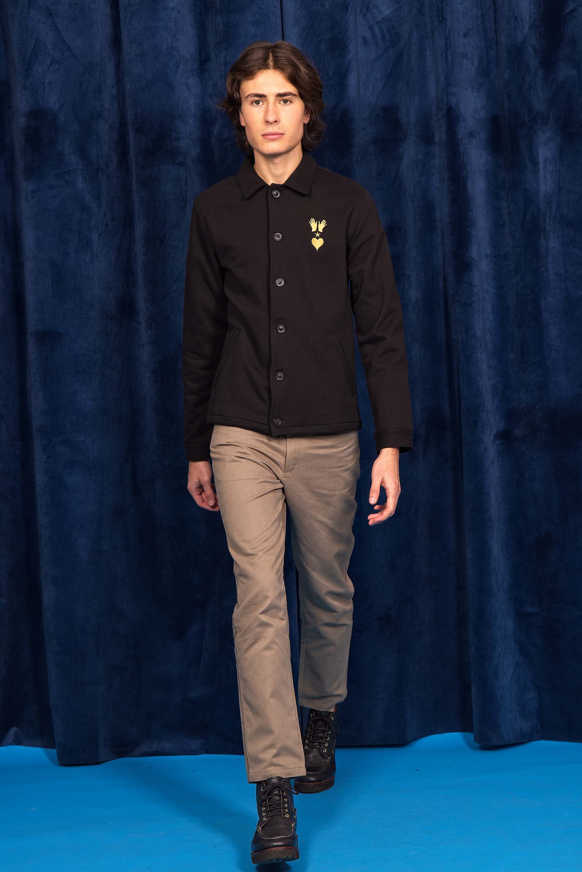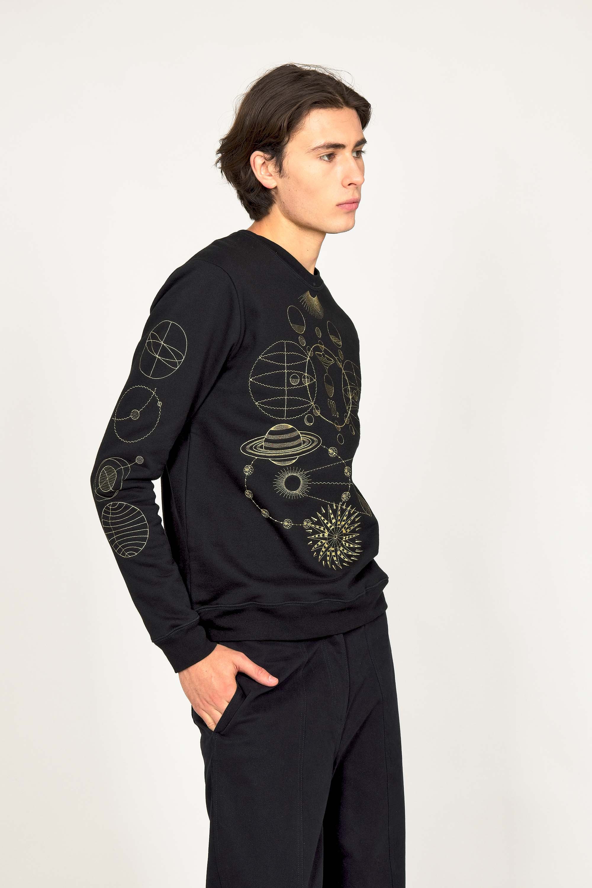Our contemporary and original sweatshirts highlight the masculine silhouette while allowing men to express their creativity .