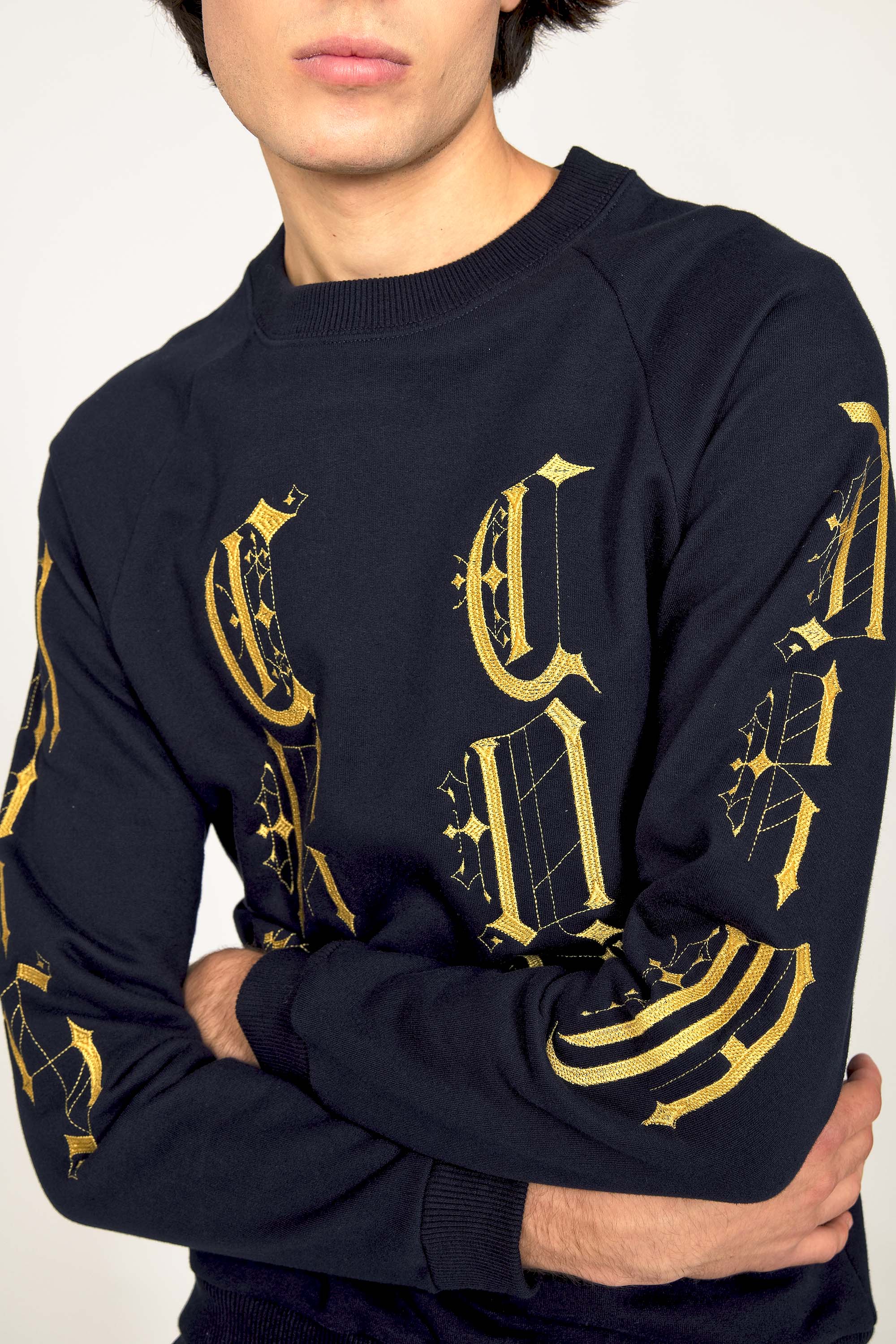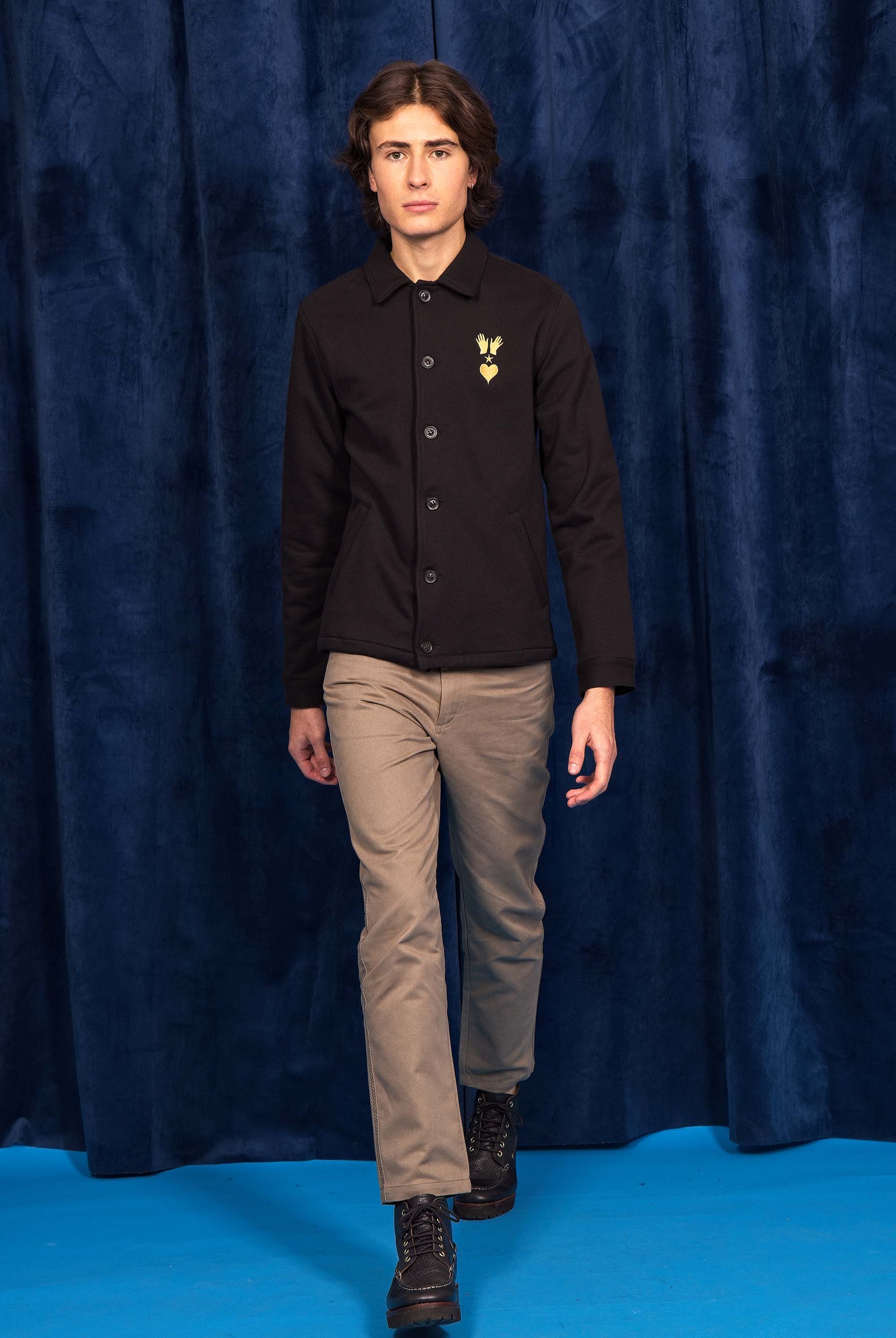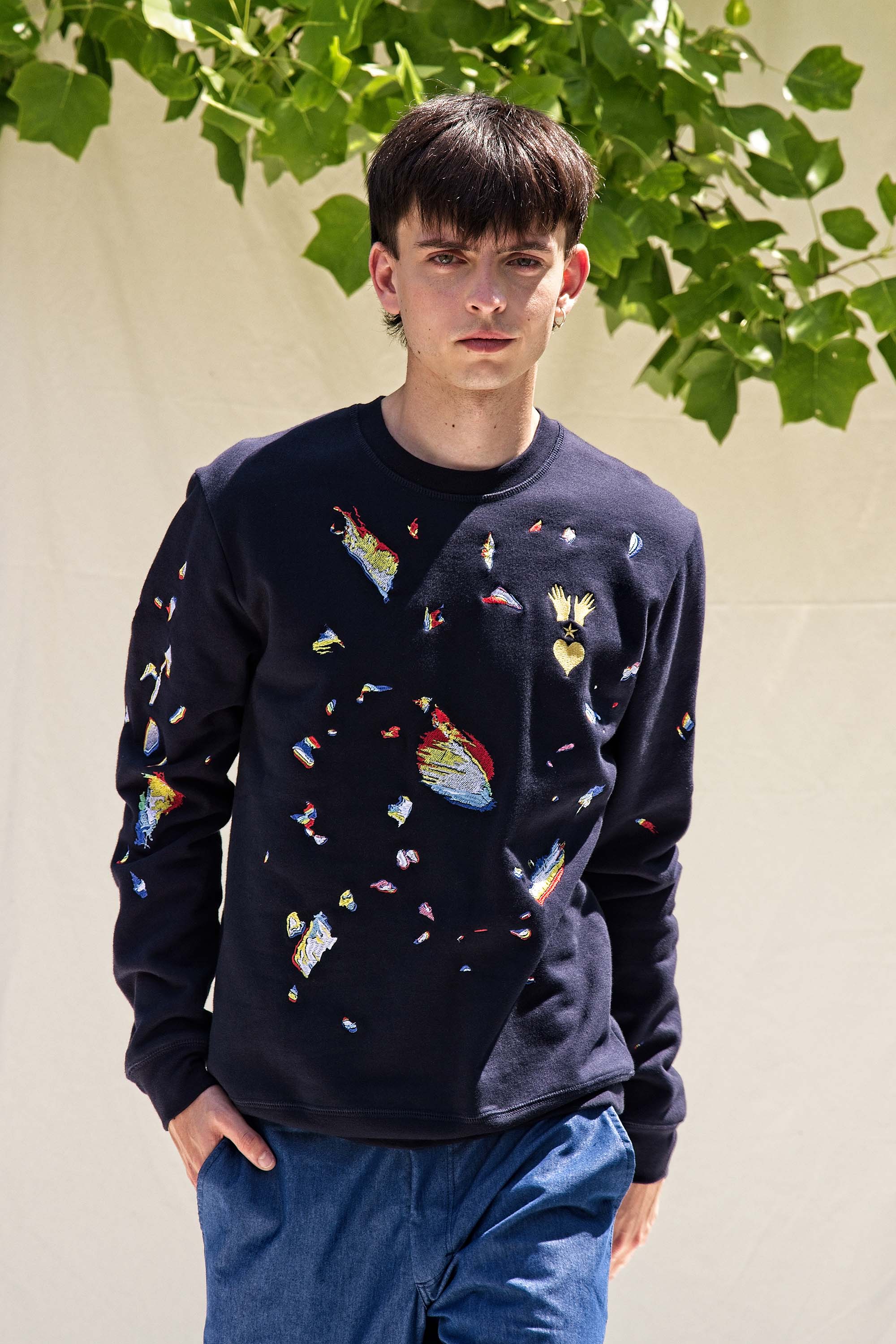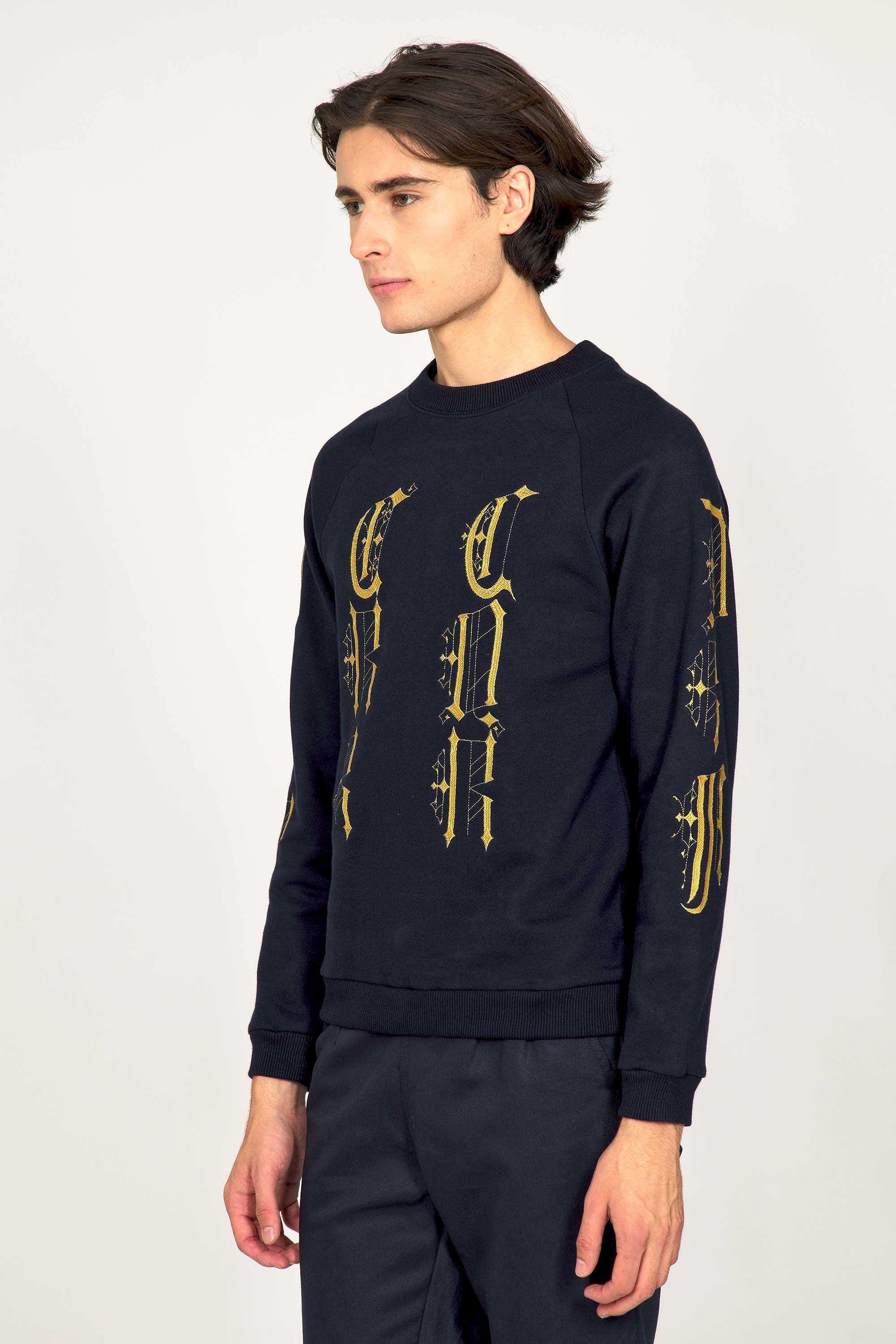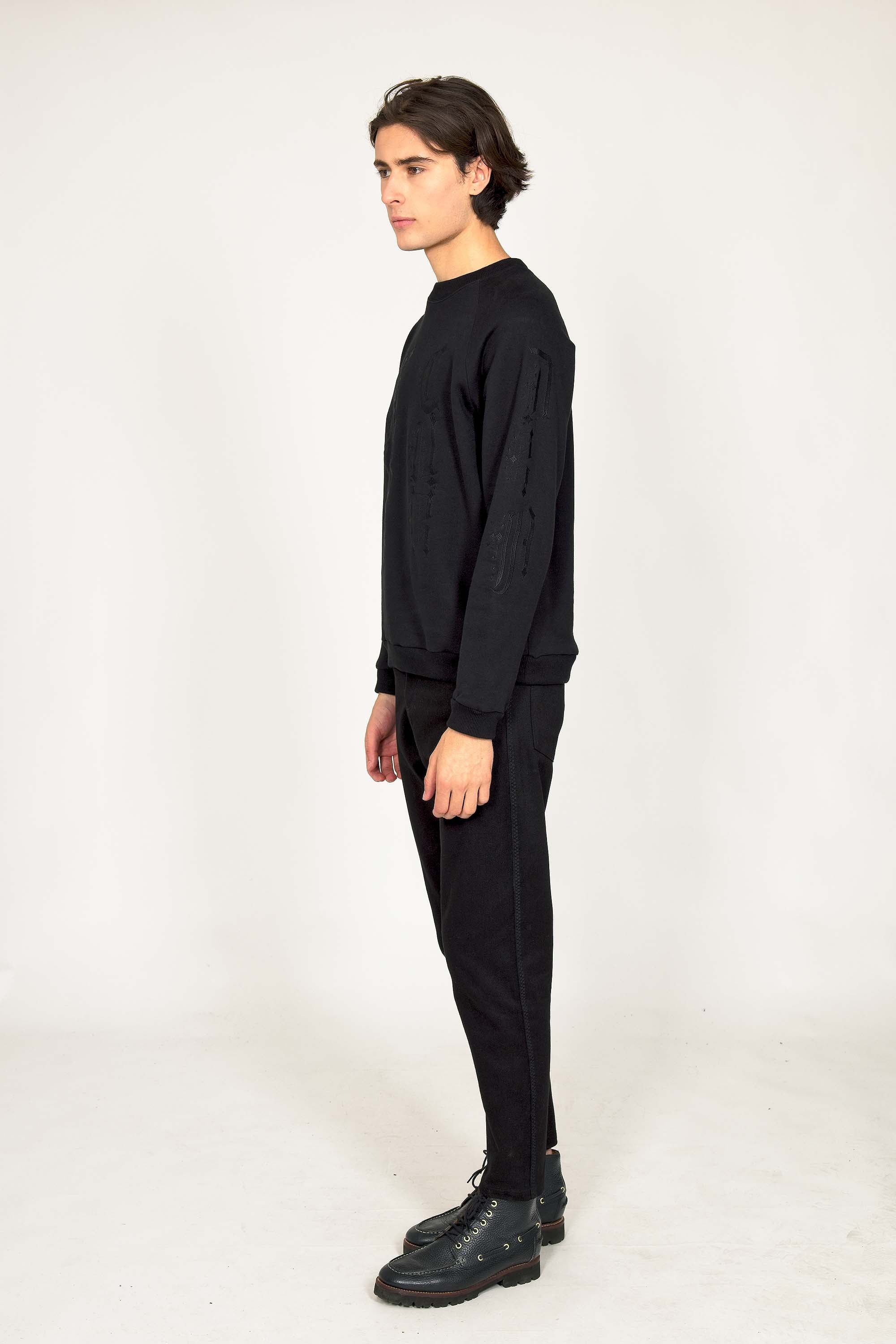 Our contemporary and original sweatshirts highlight the masculine silhouette while allowing men to express their creativity .