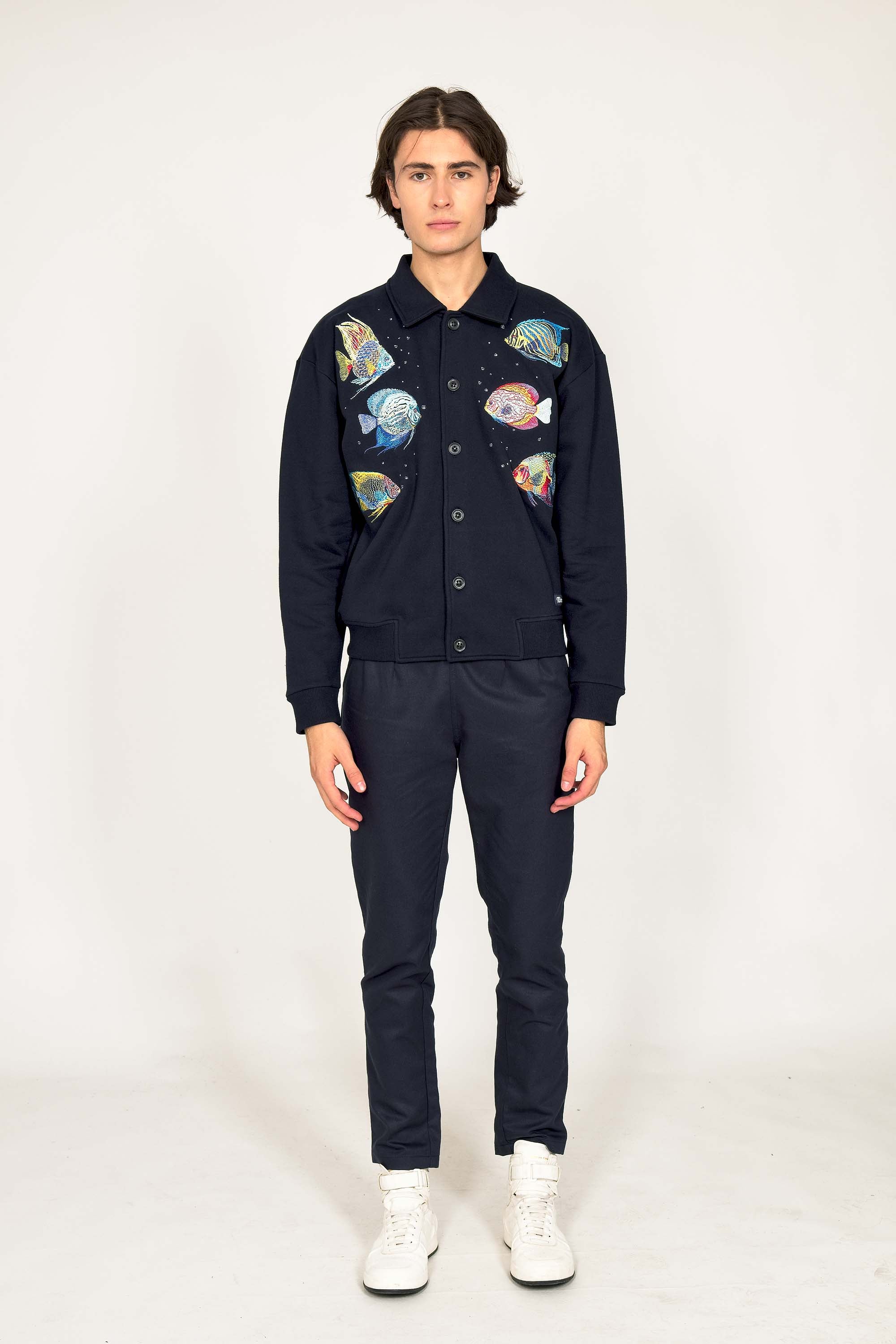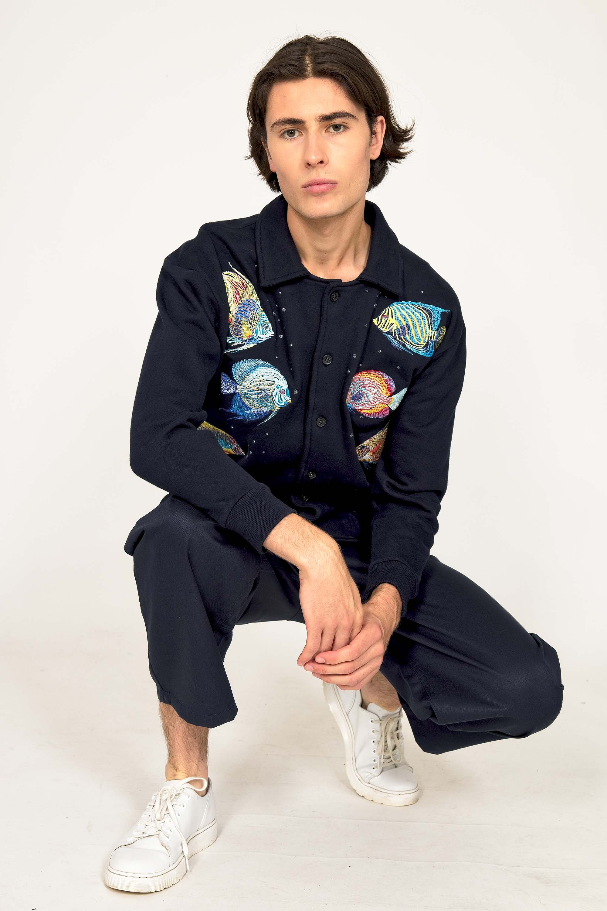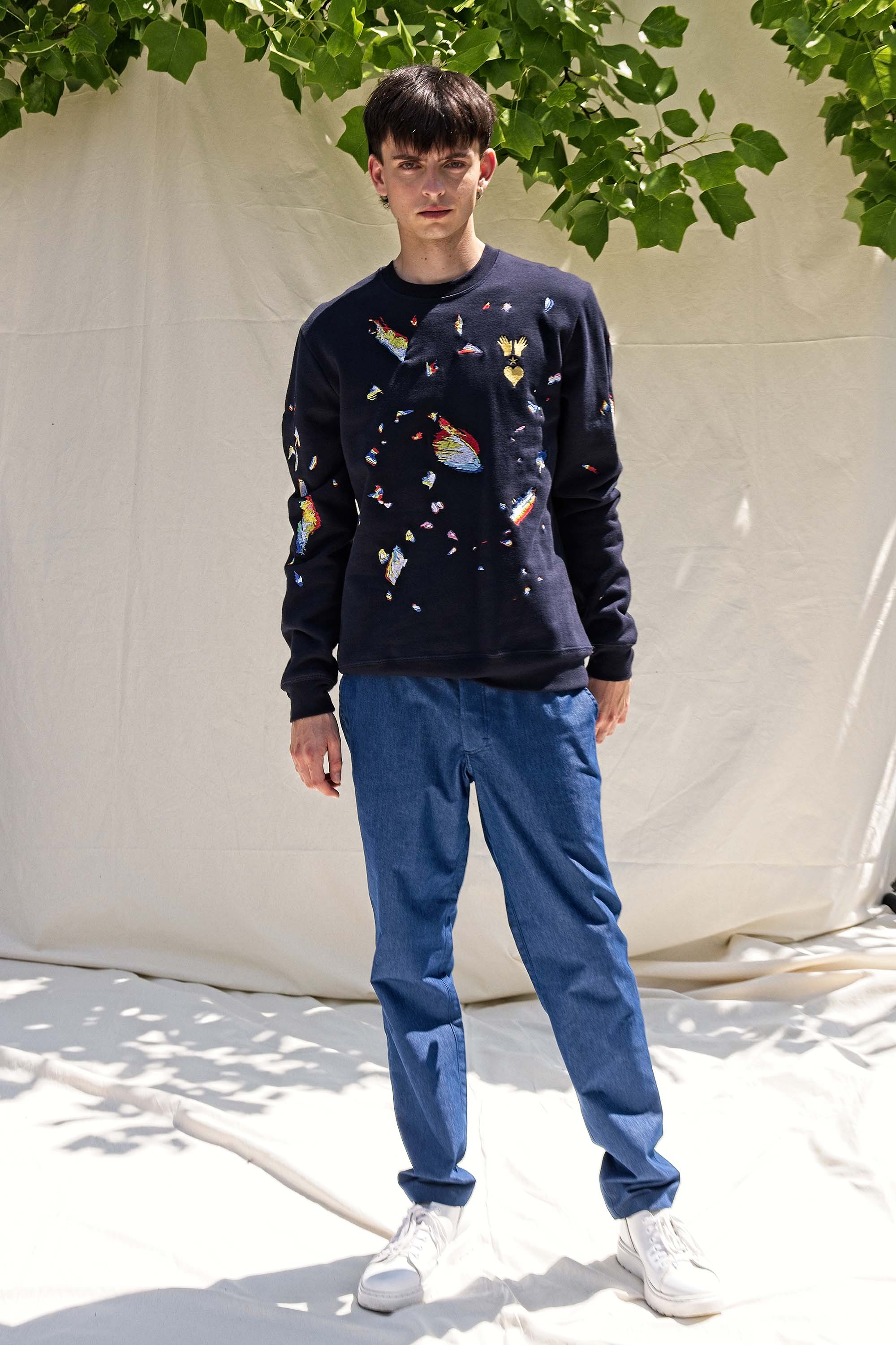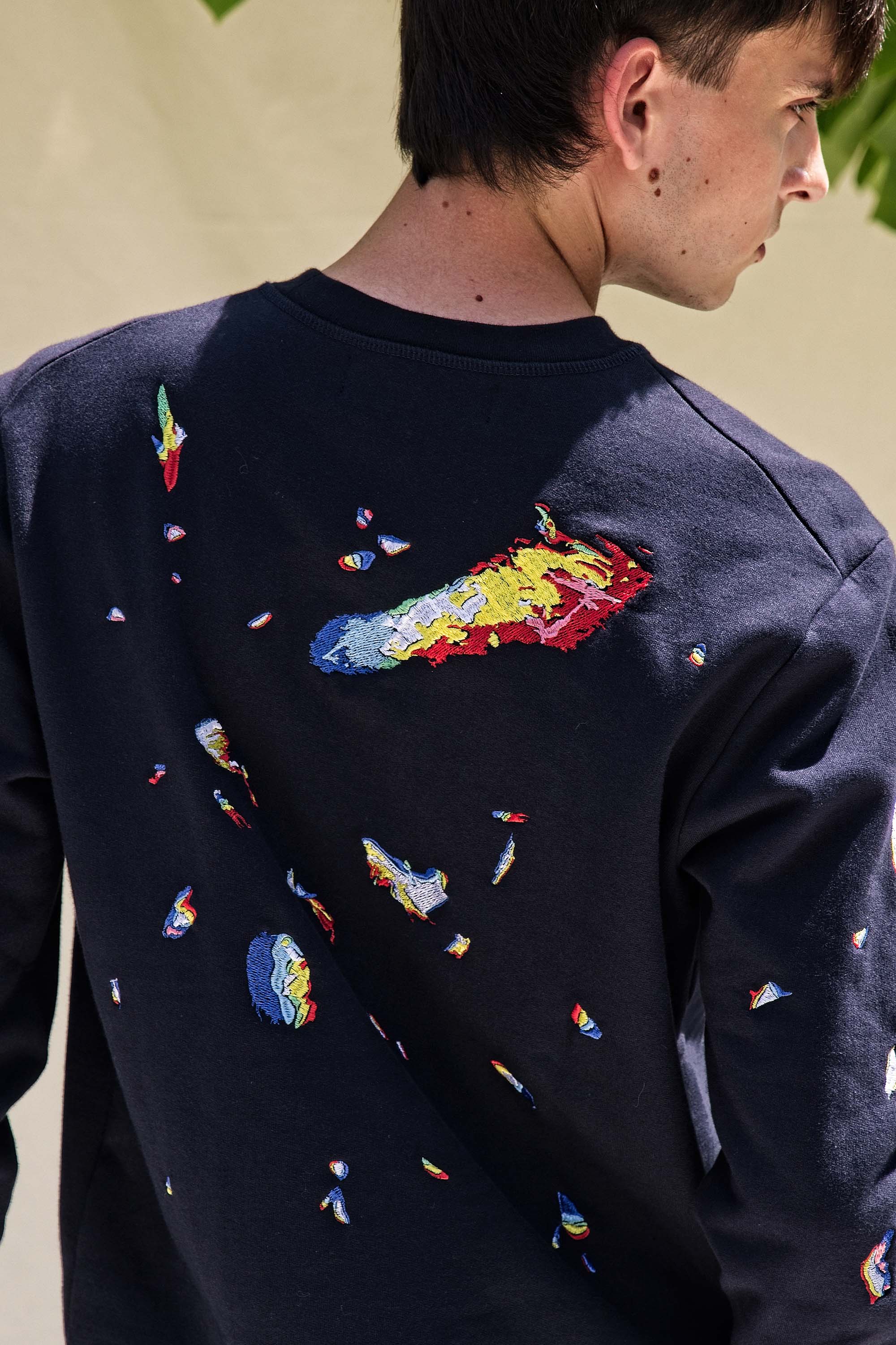 Our contemporary and original sweatshirts highlight the masculine silhouette while allowing men to express their creativity .