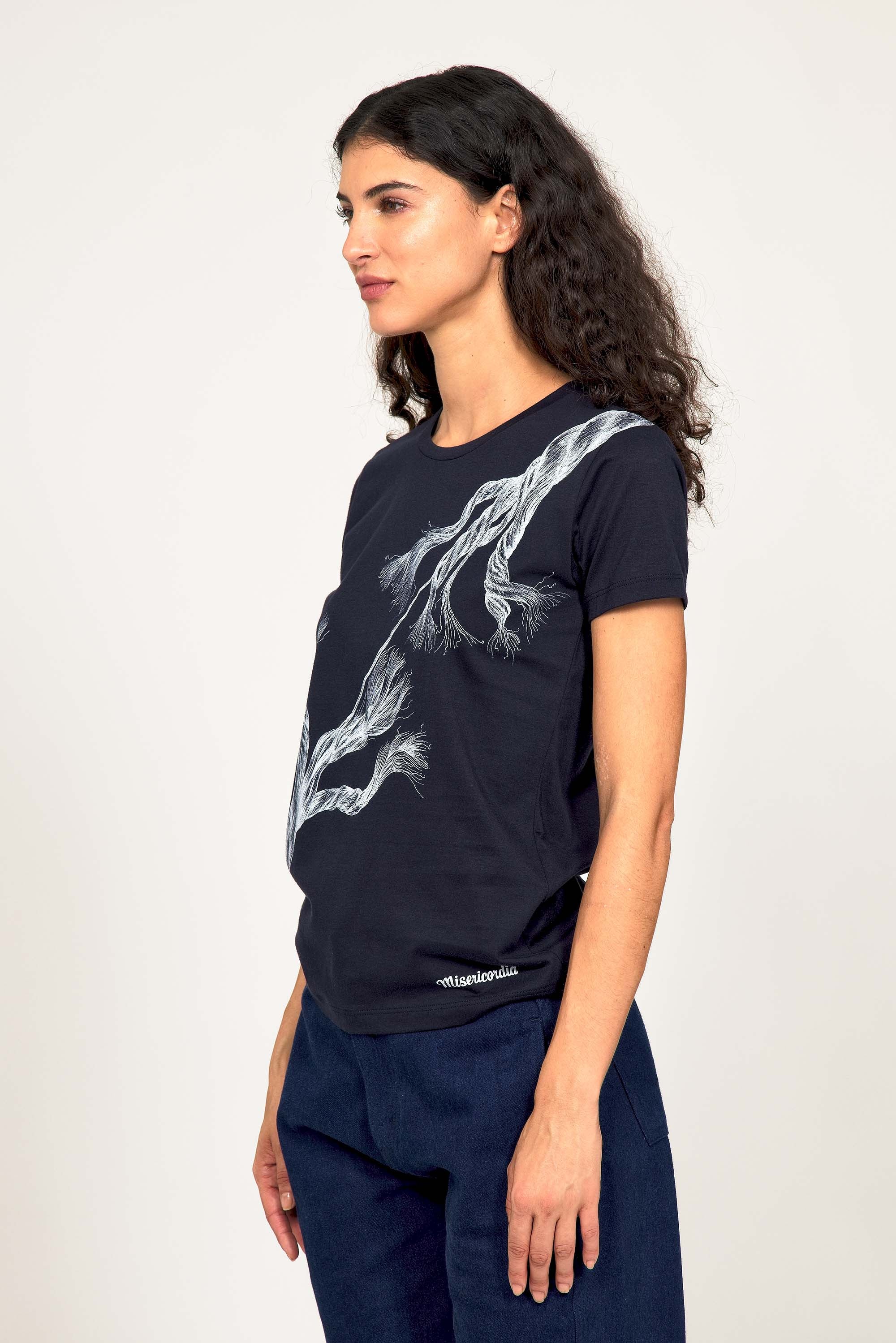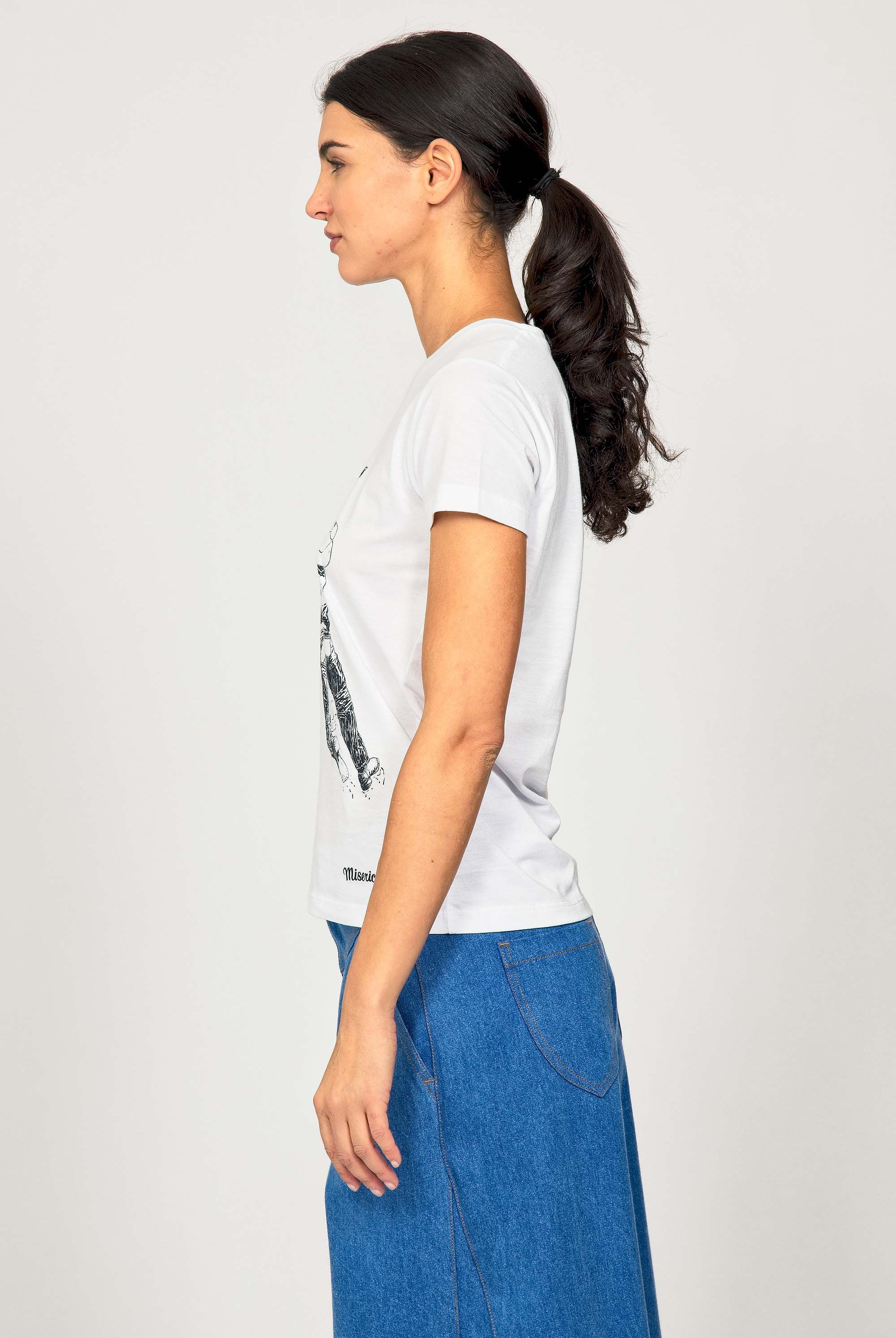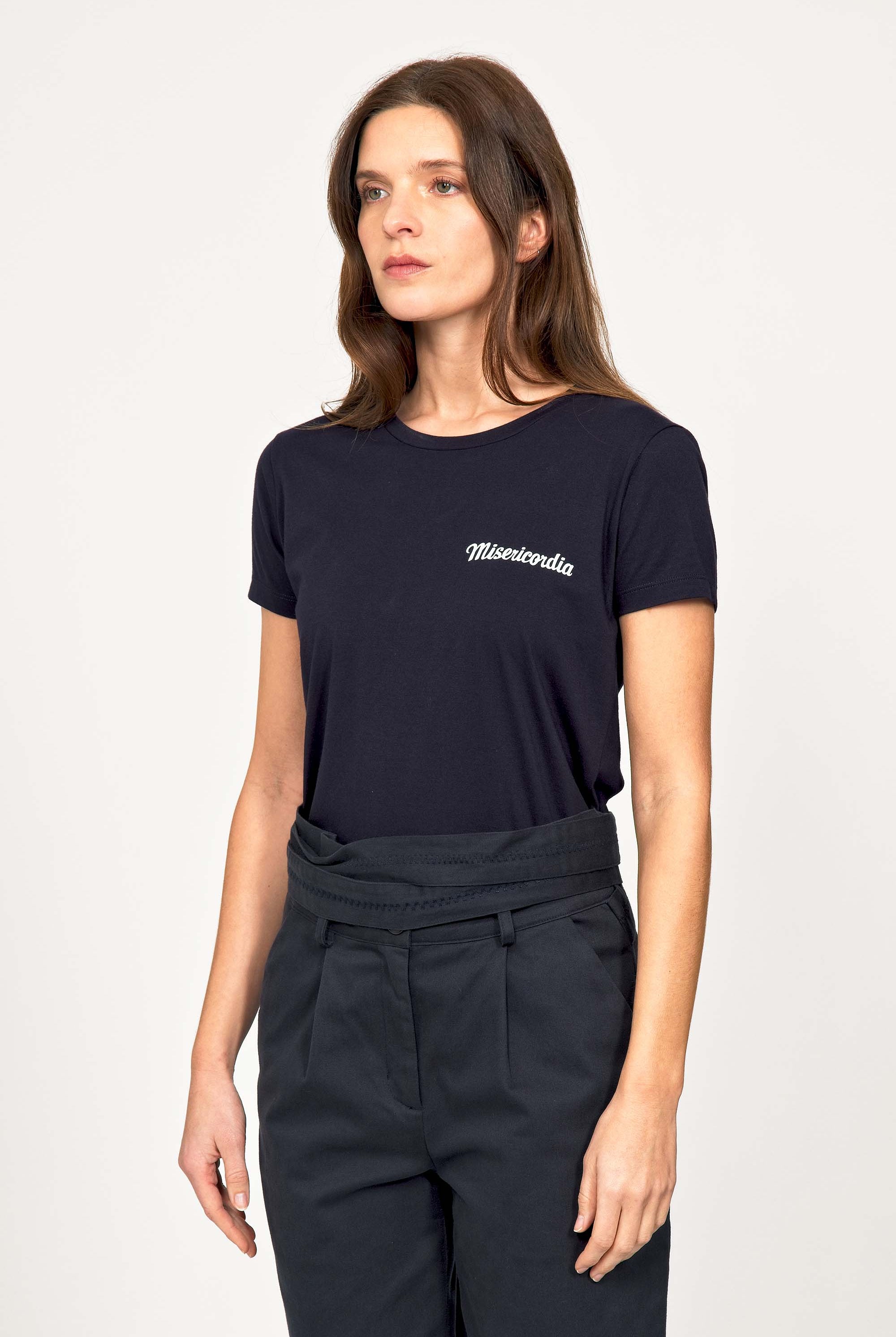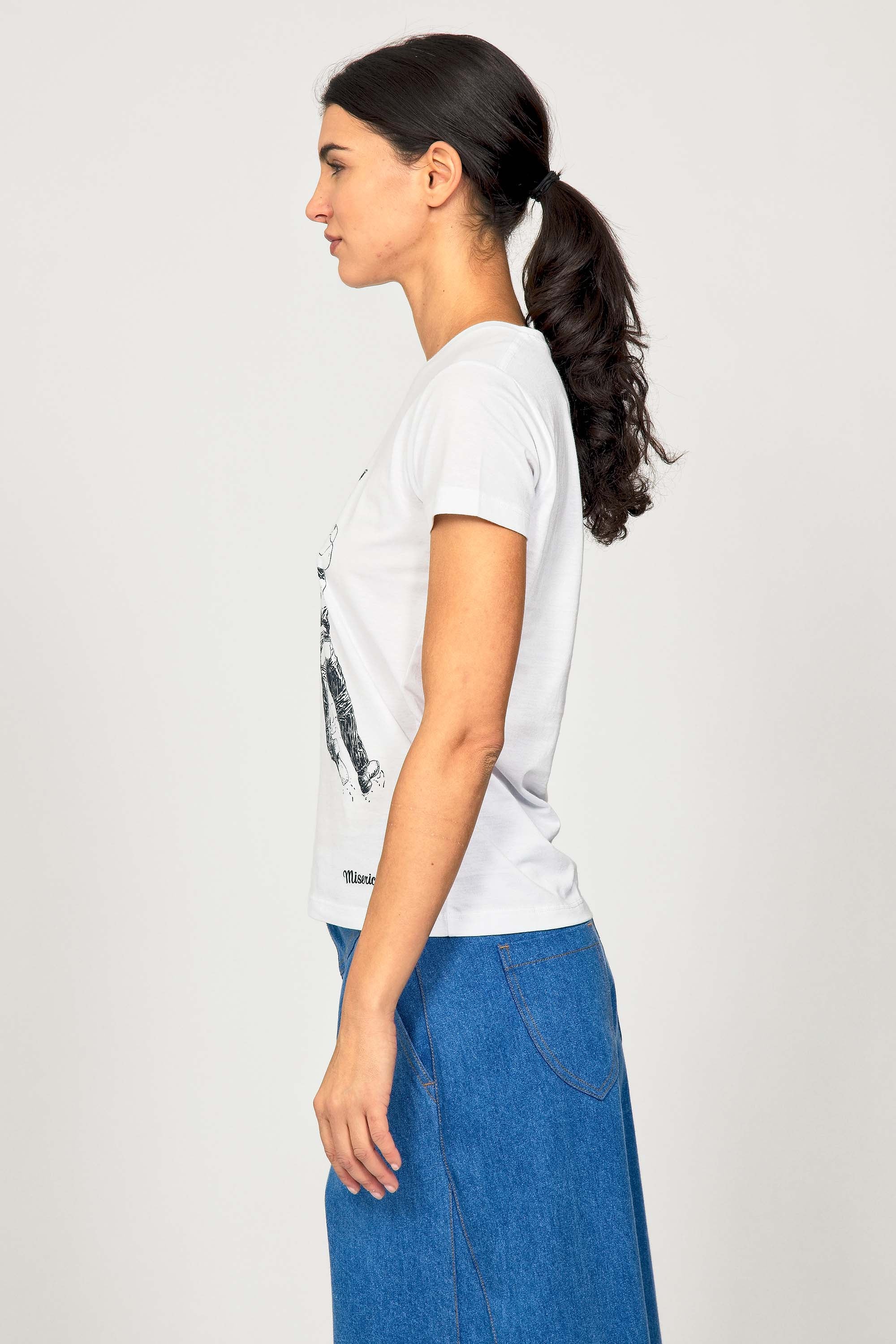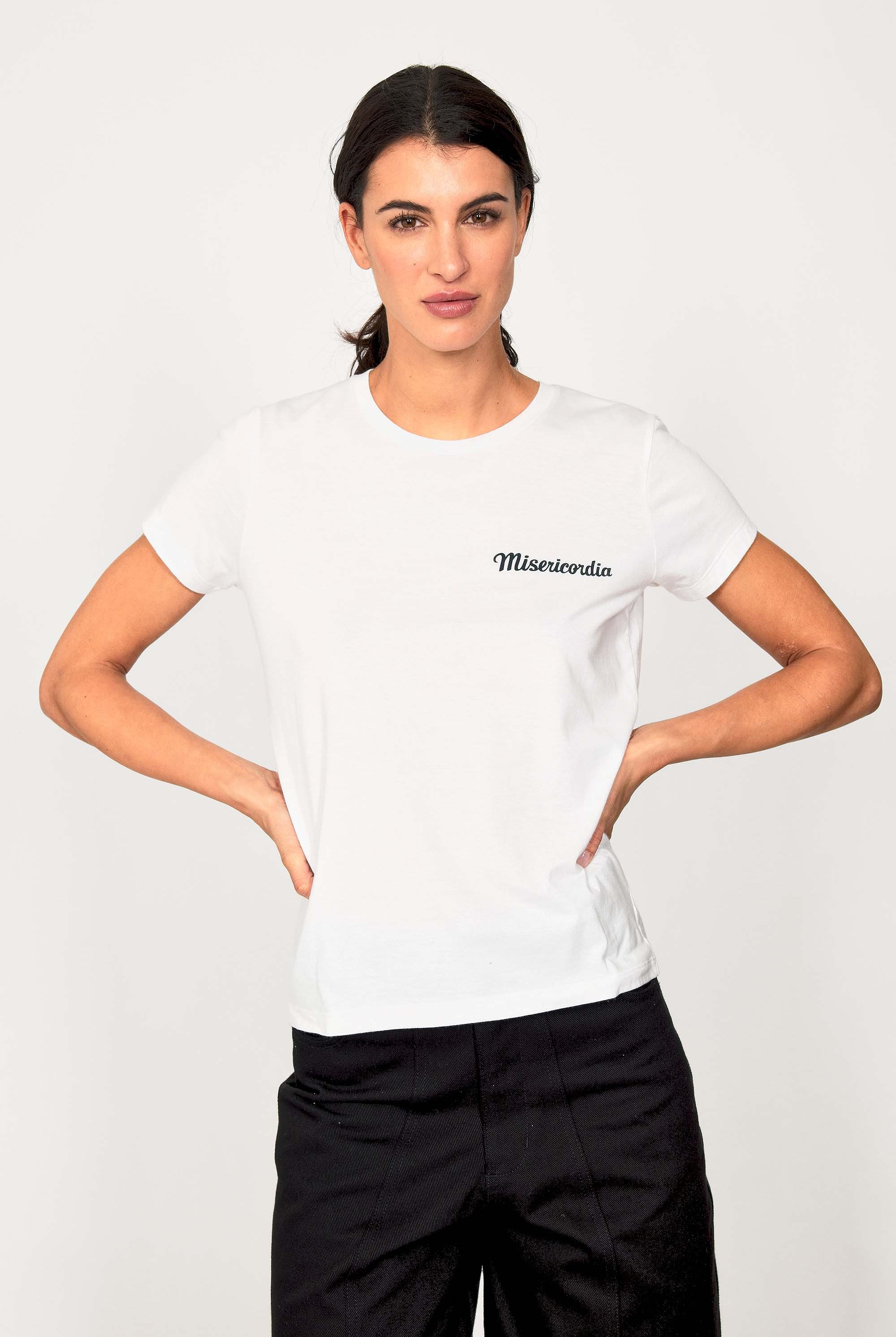 For a trendy wardrobe, in all circumstances, discover our new chic and timeless collection of women's t-shirts at Misericordia. The t-shirt is a versatile piece that can be worn with your entire wardrobe. Fresh and light, it can be worn daily with any outfit for a casual and chic look.
