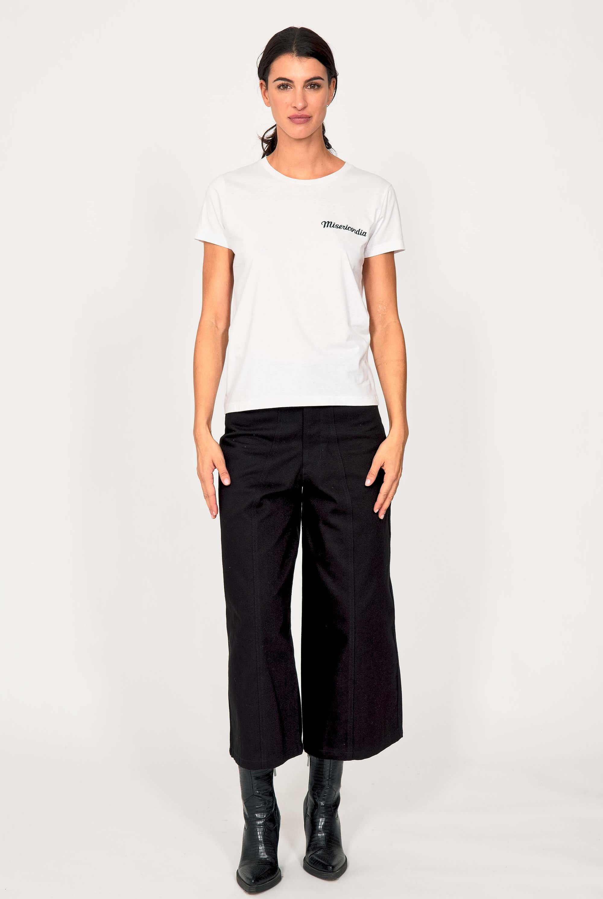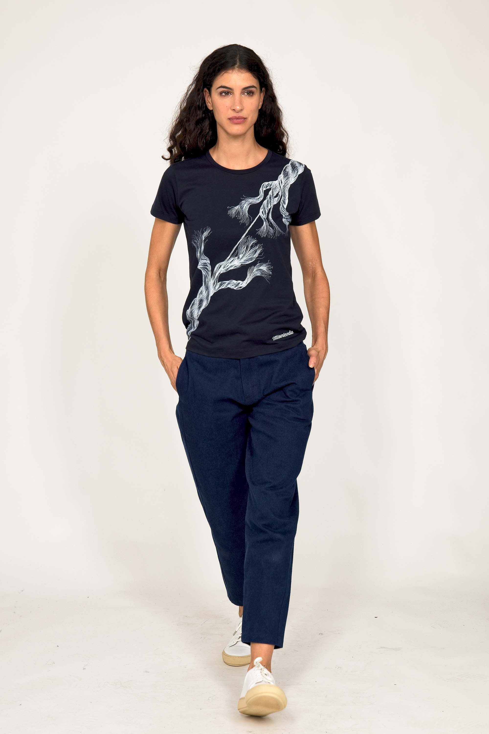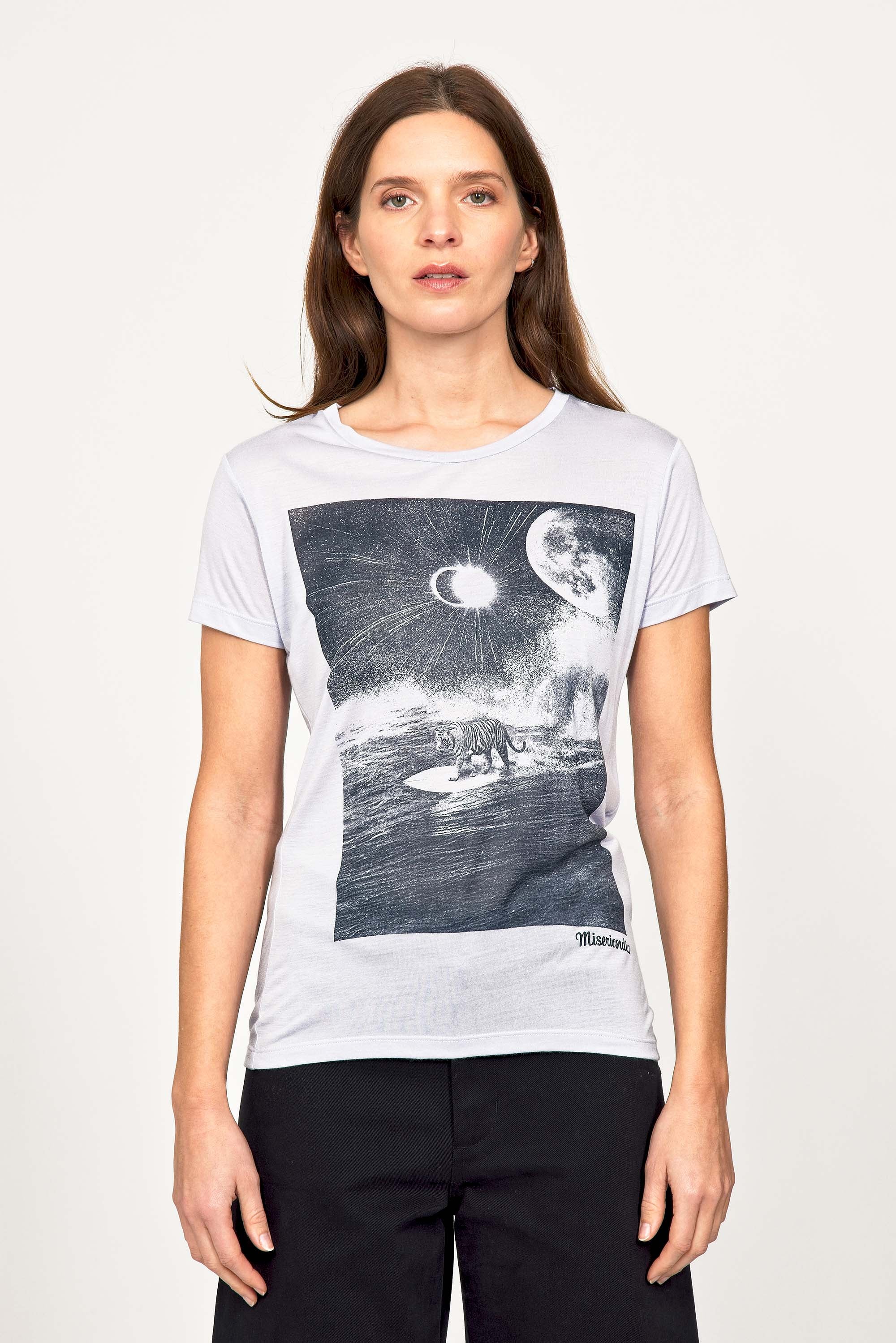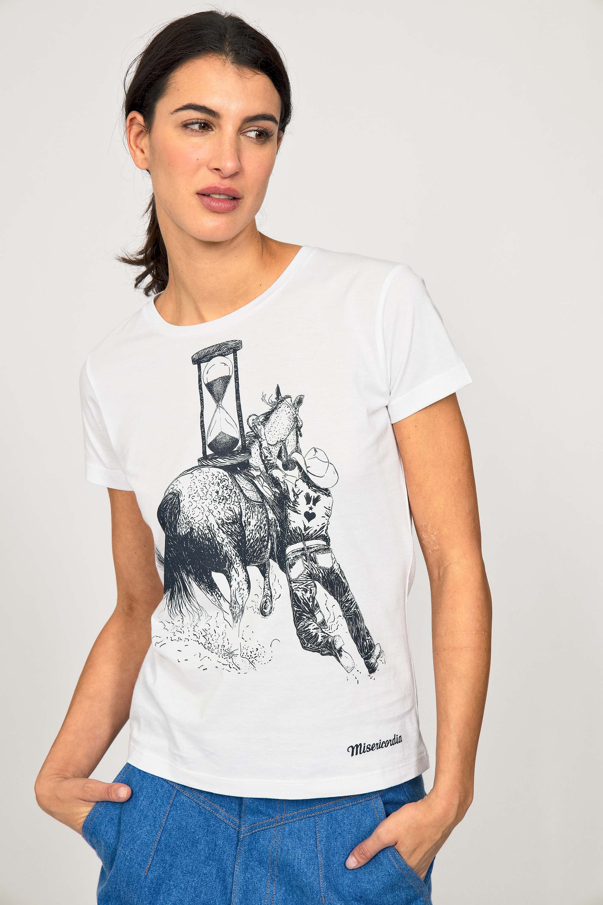 For a trendy wardrobe, in all circumstances, discover our new chic and timeless collection of women's t-shirts at Misericordia. The t-shirt is a versatile piece that can be worn with your entire wardrobe. Fresh and light, it can be worn daily with any outfit for a casual and chic look.