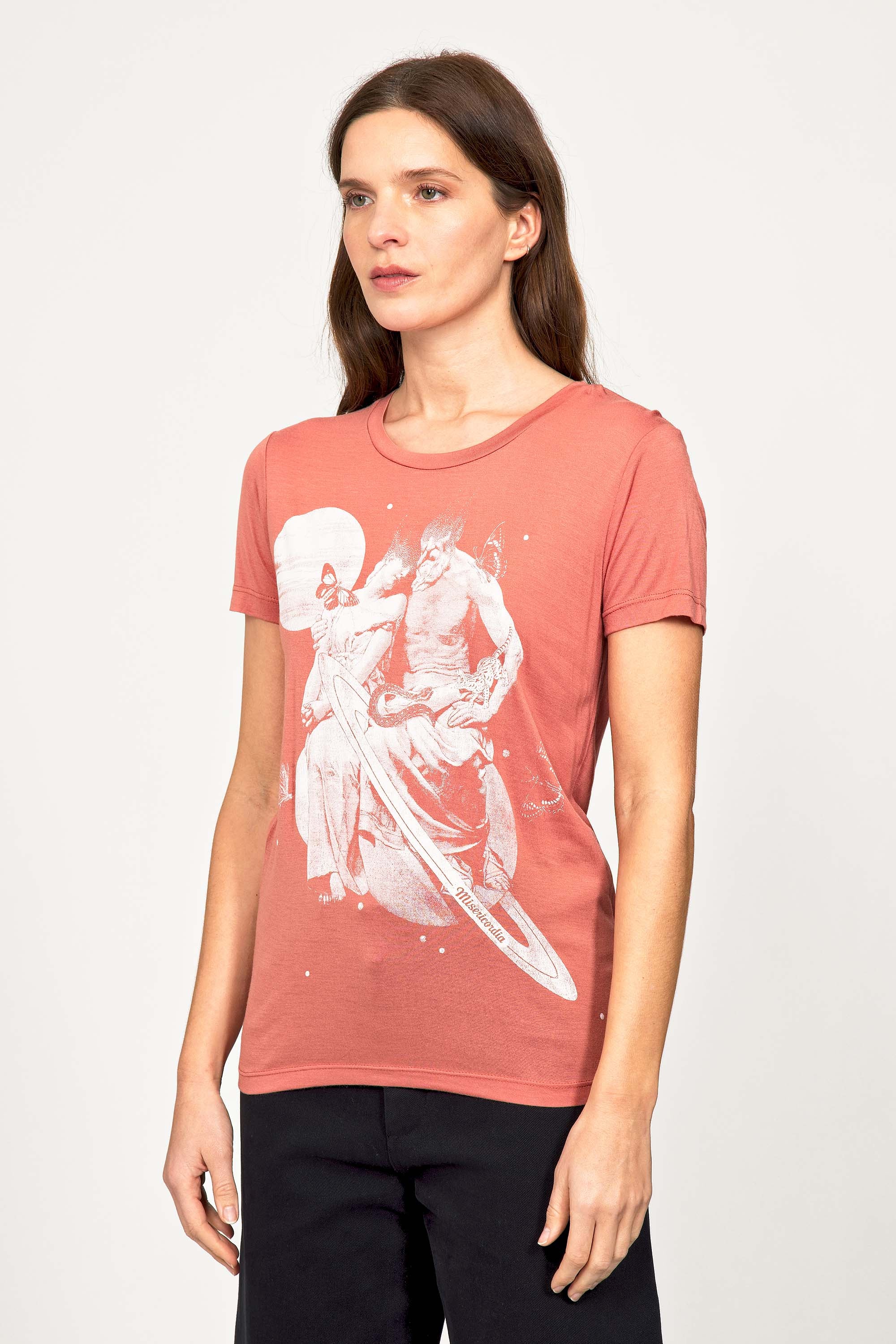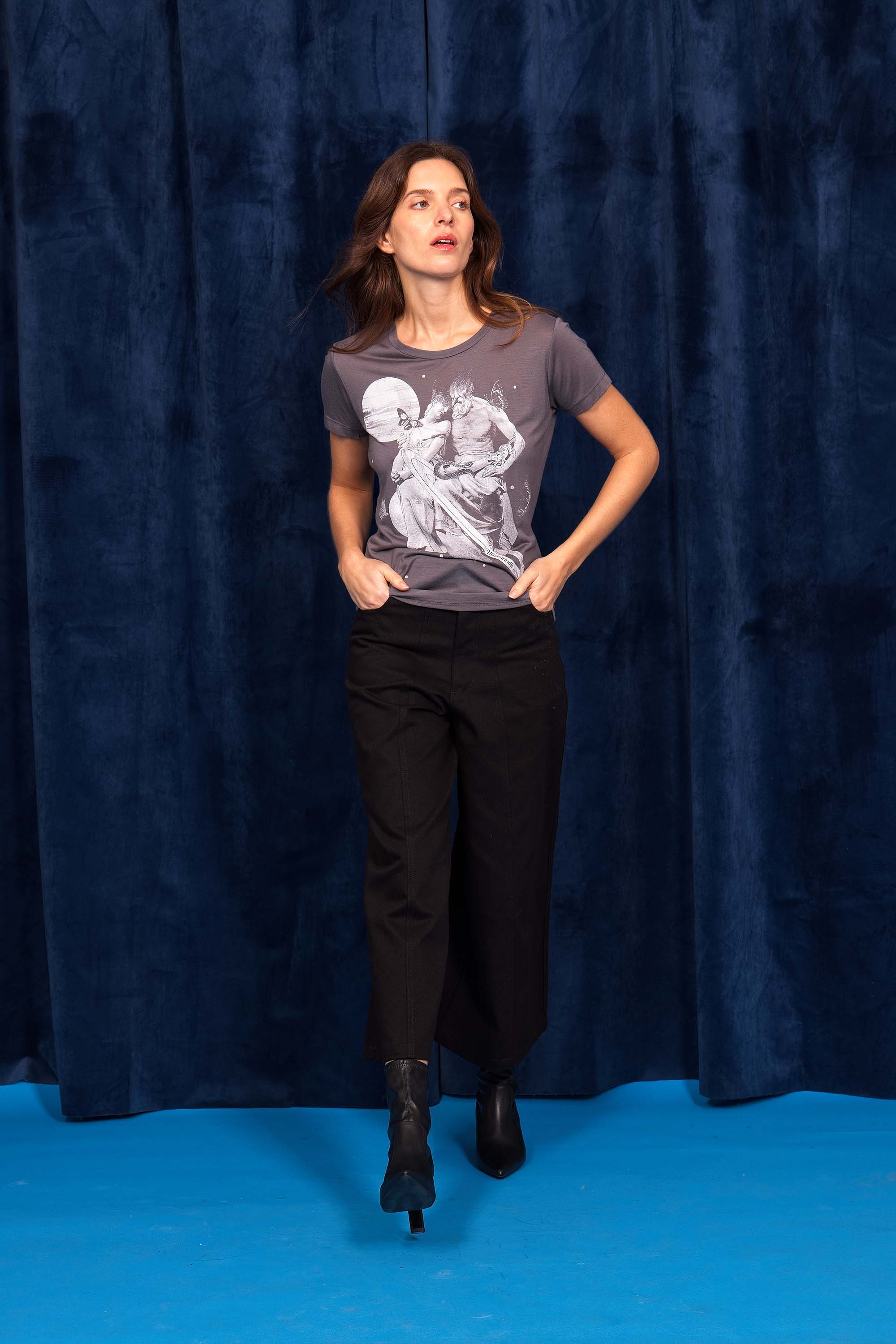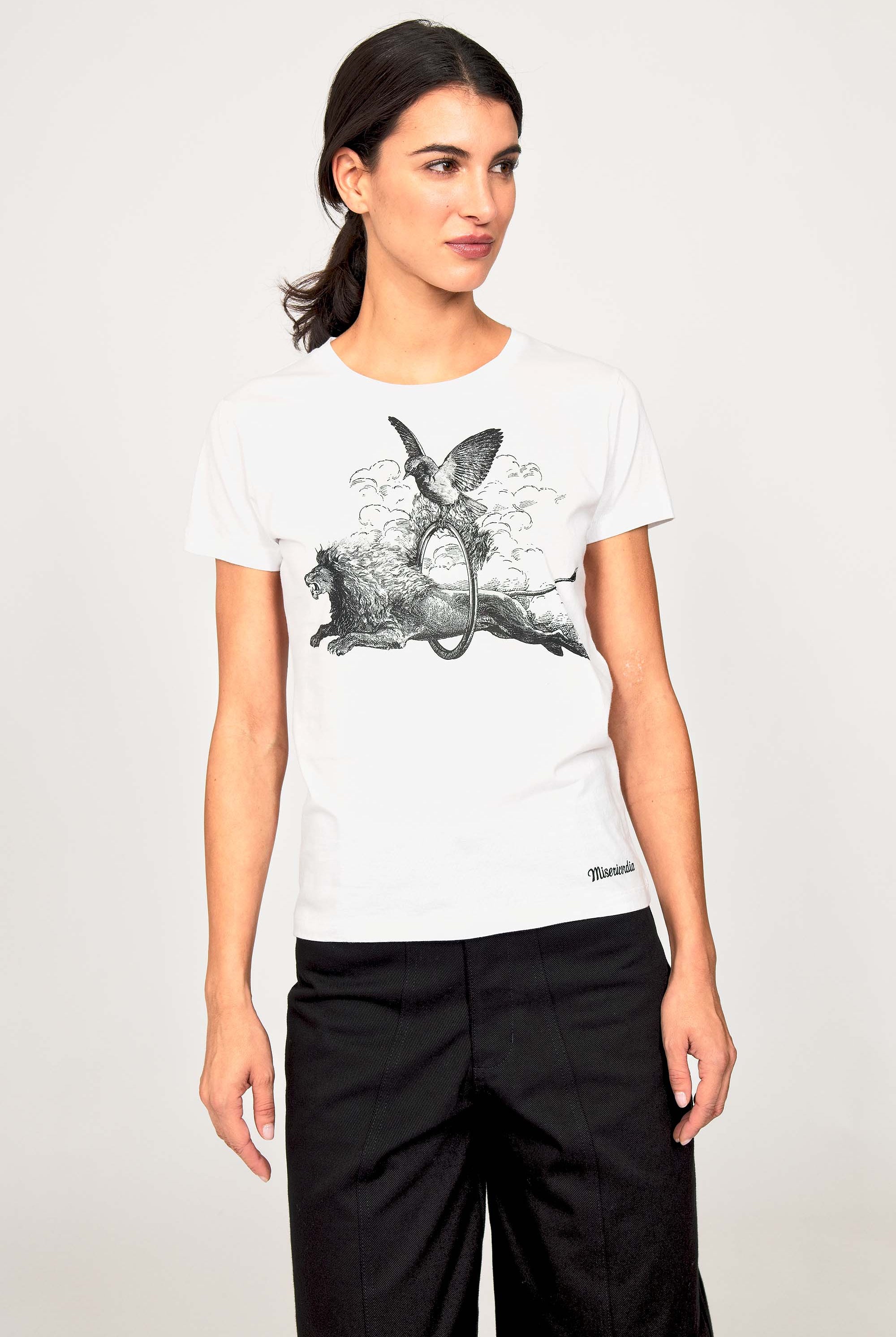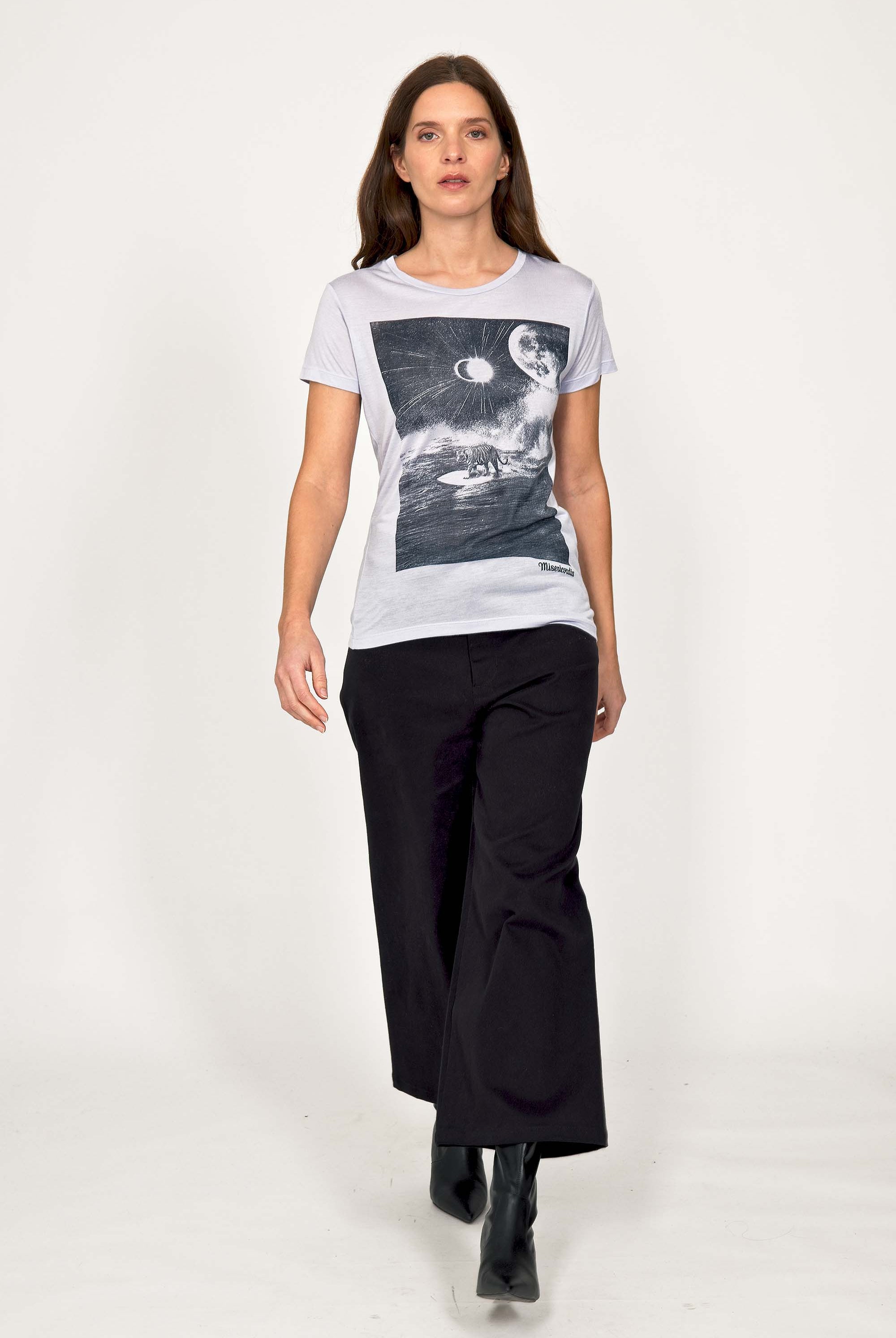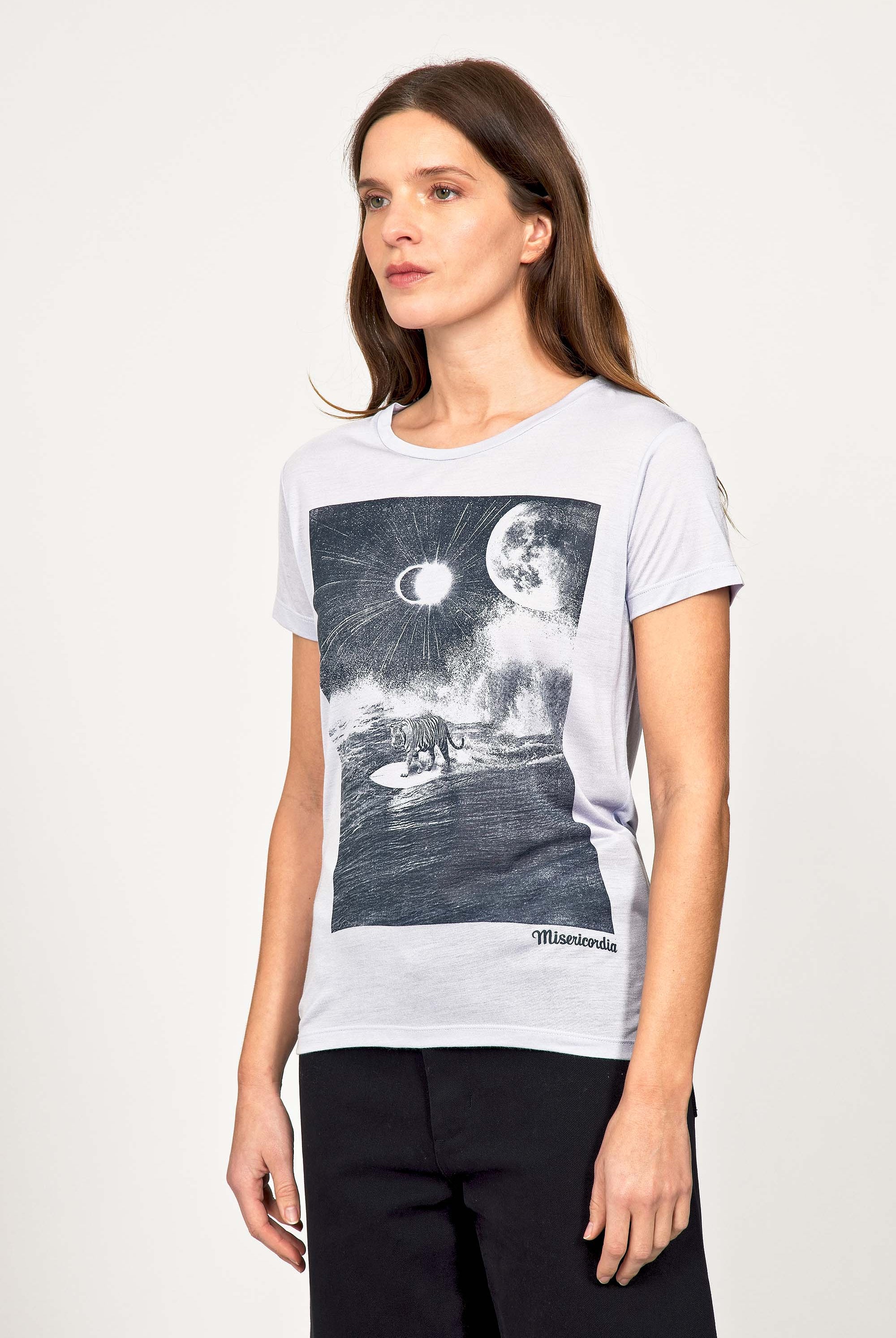 For a trendy wardrobe, in all circumstances, discover our new chic and timeless collection of women's t-shirts at Misericordia. The t-shirt is a versatile piece that can be worn with your entire wardrobe. Fresh and light, it can be worn daily with any outfit for a casual and chic look.