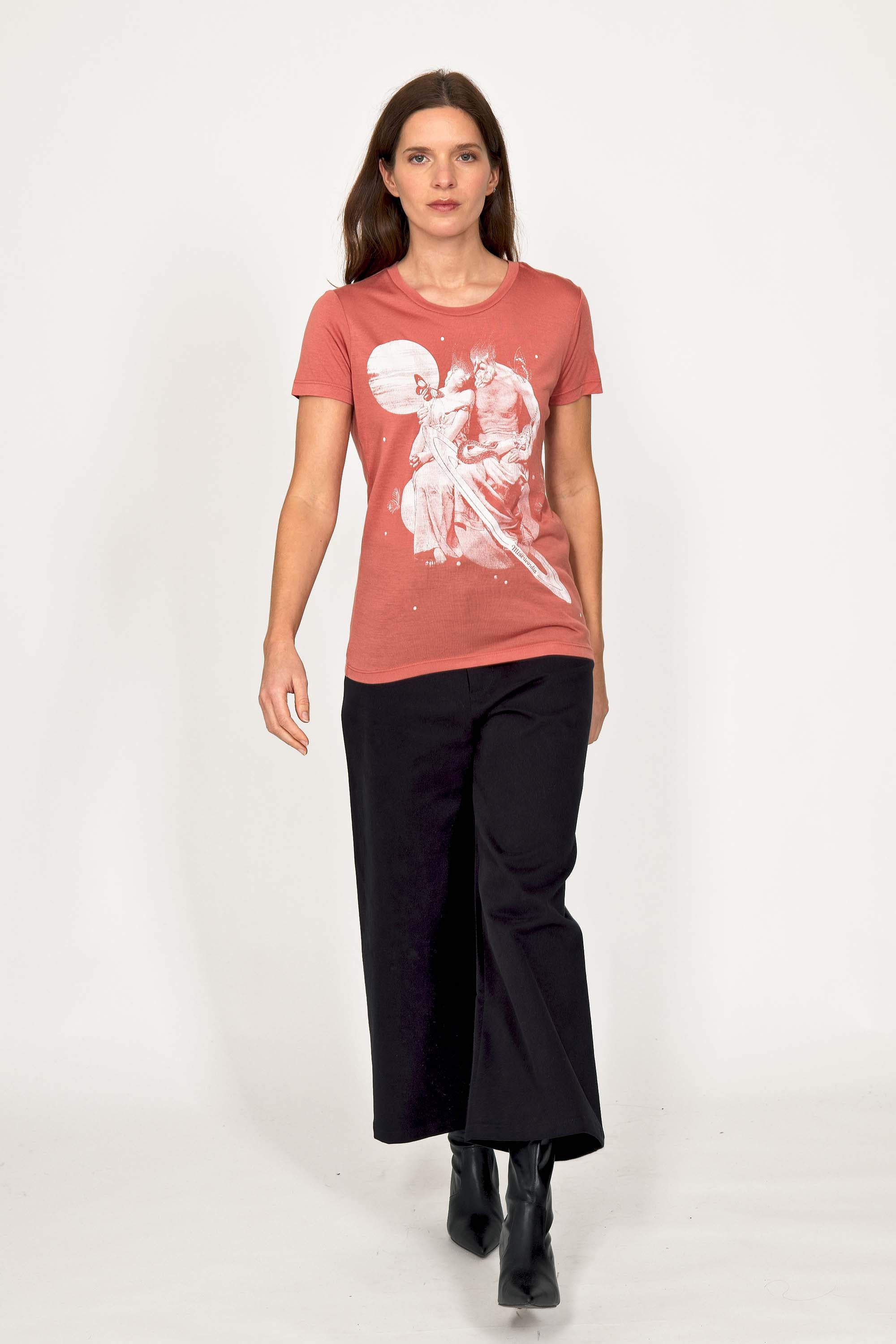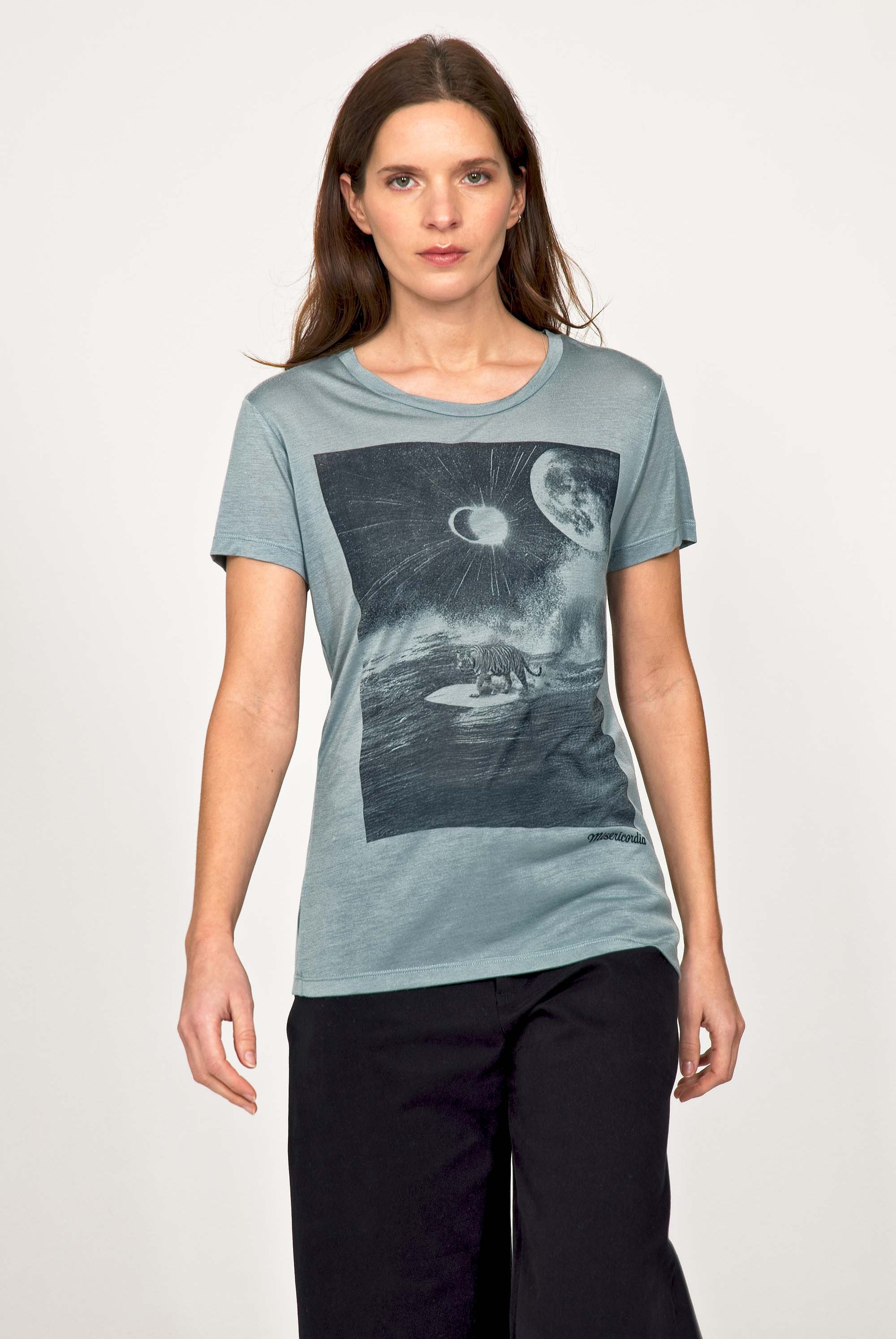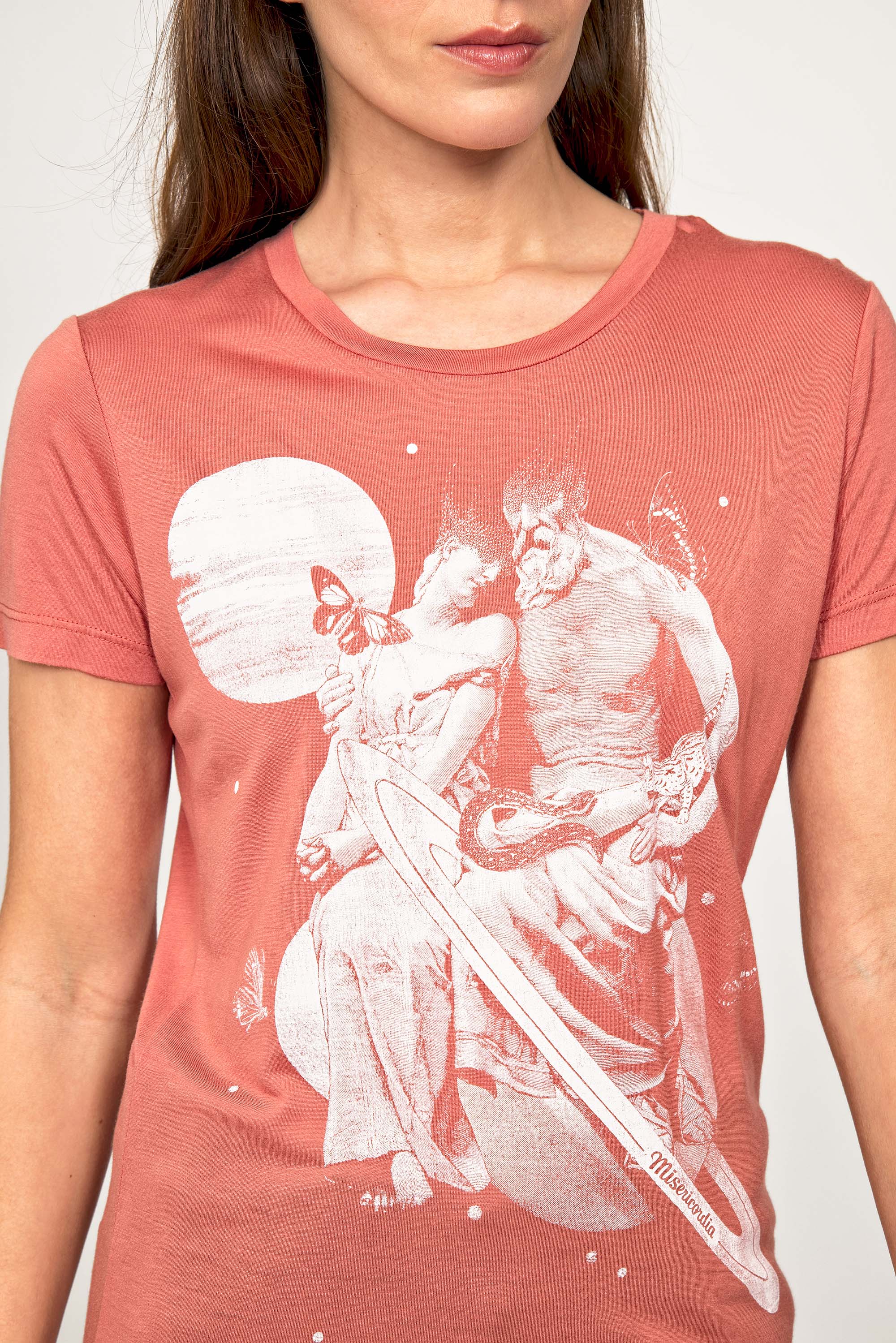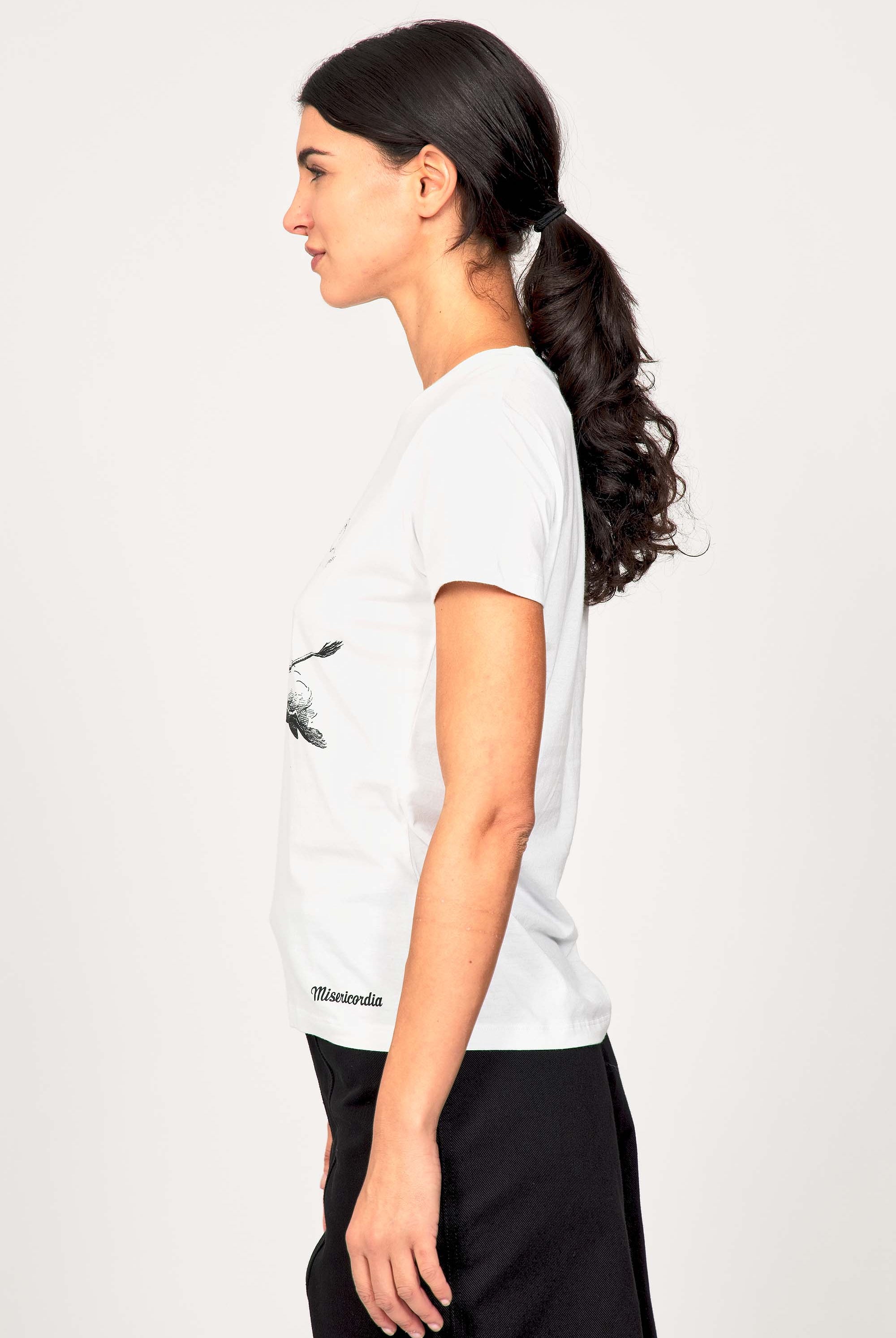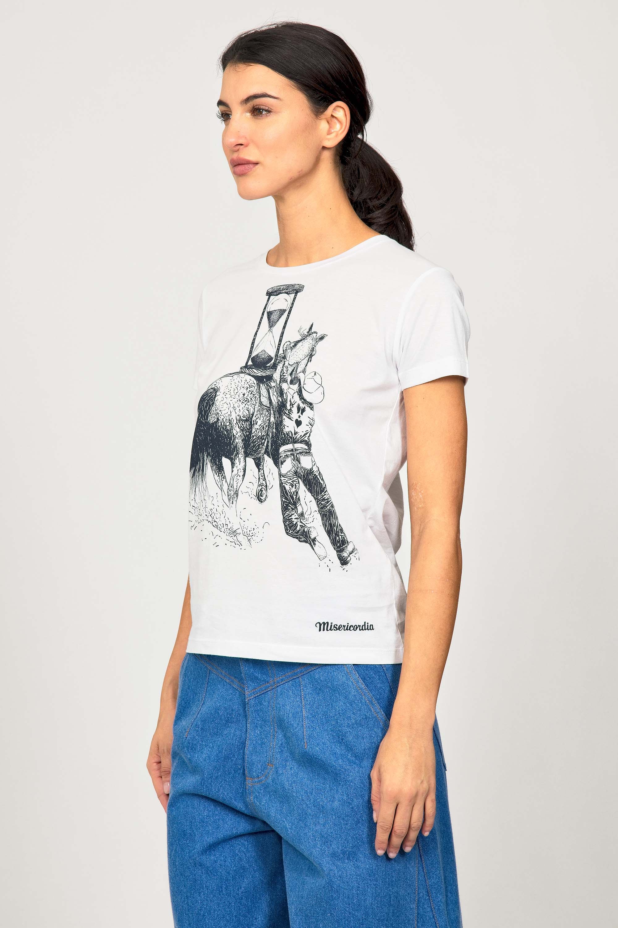 For a trendy wardrobe, in all circumstances, discover our new chic and timeless collection of women's t-shirts at Misericordia. The t-shirt is a versatile piece that can be worn with your entire wardrobe. Fresh and light, it can be worn daily with any outfit for a casual and chic look.