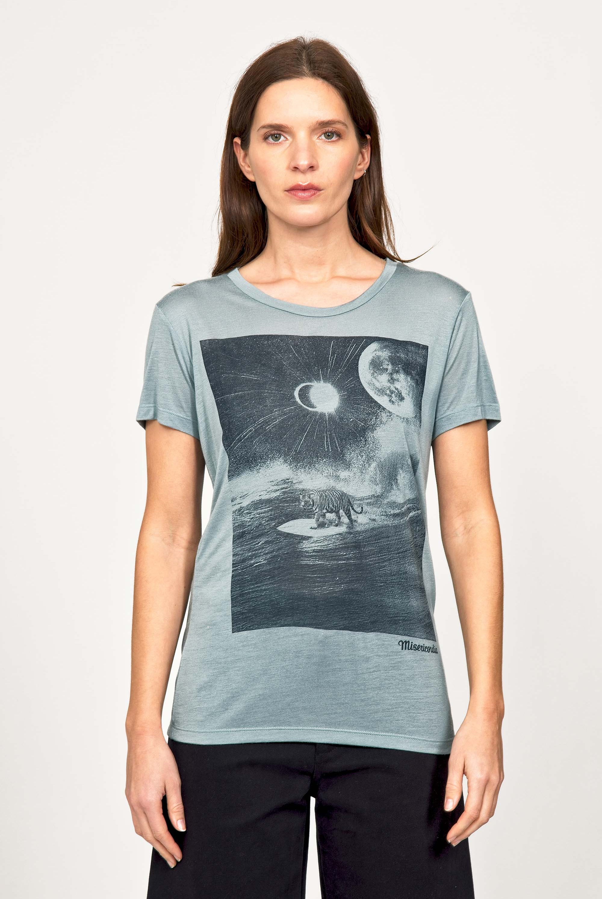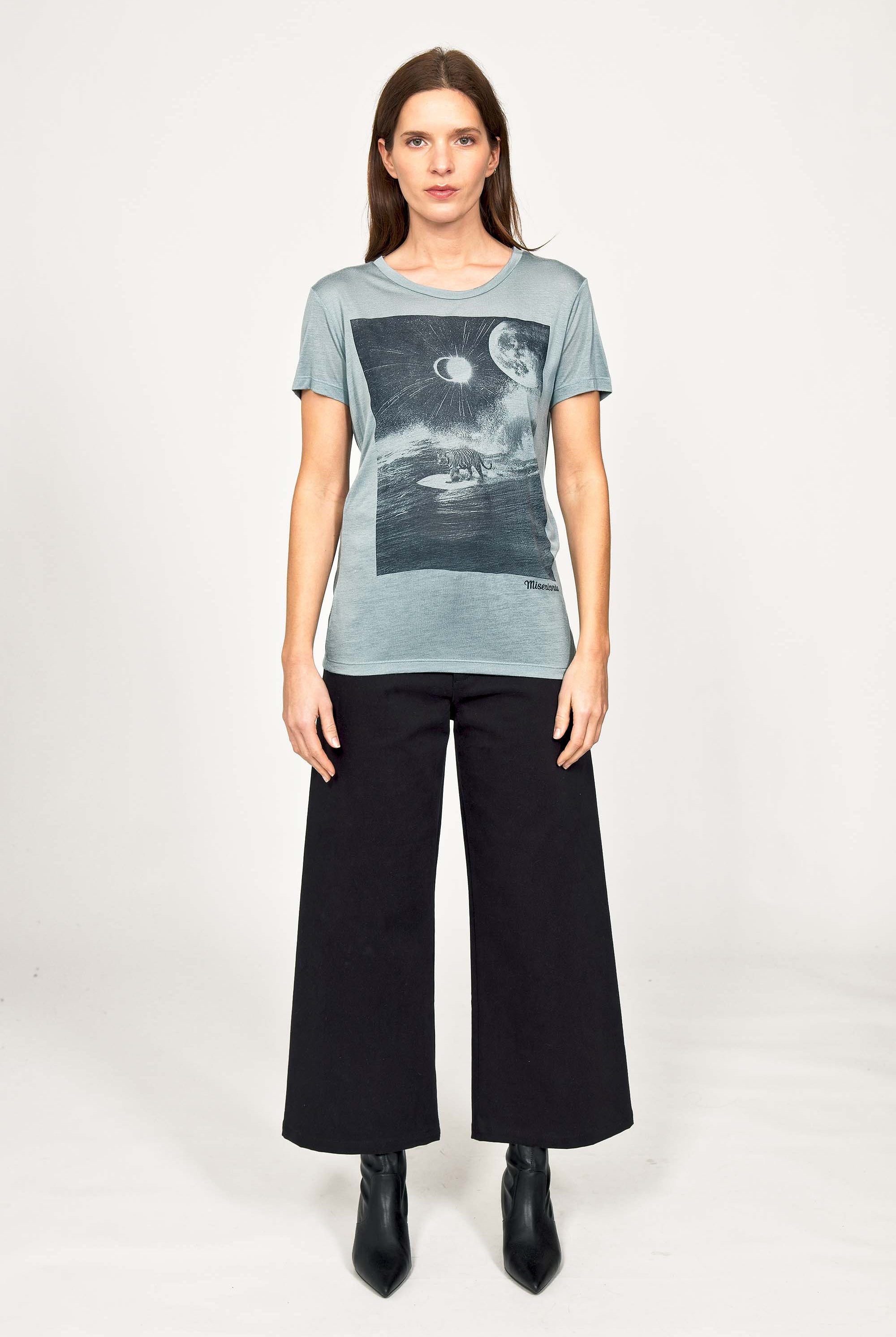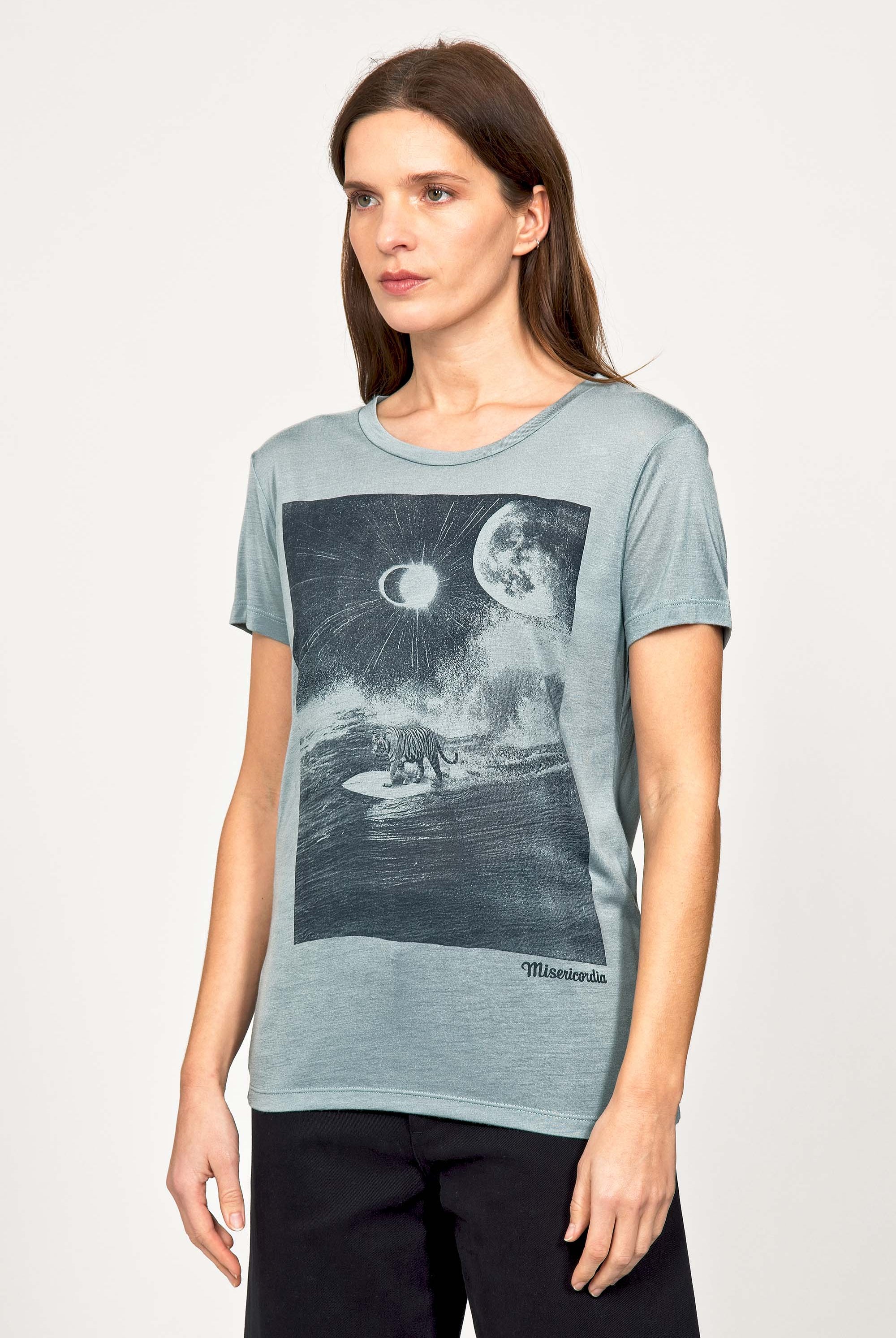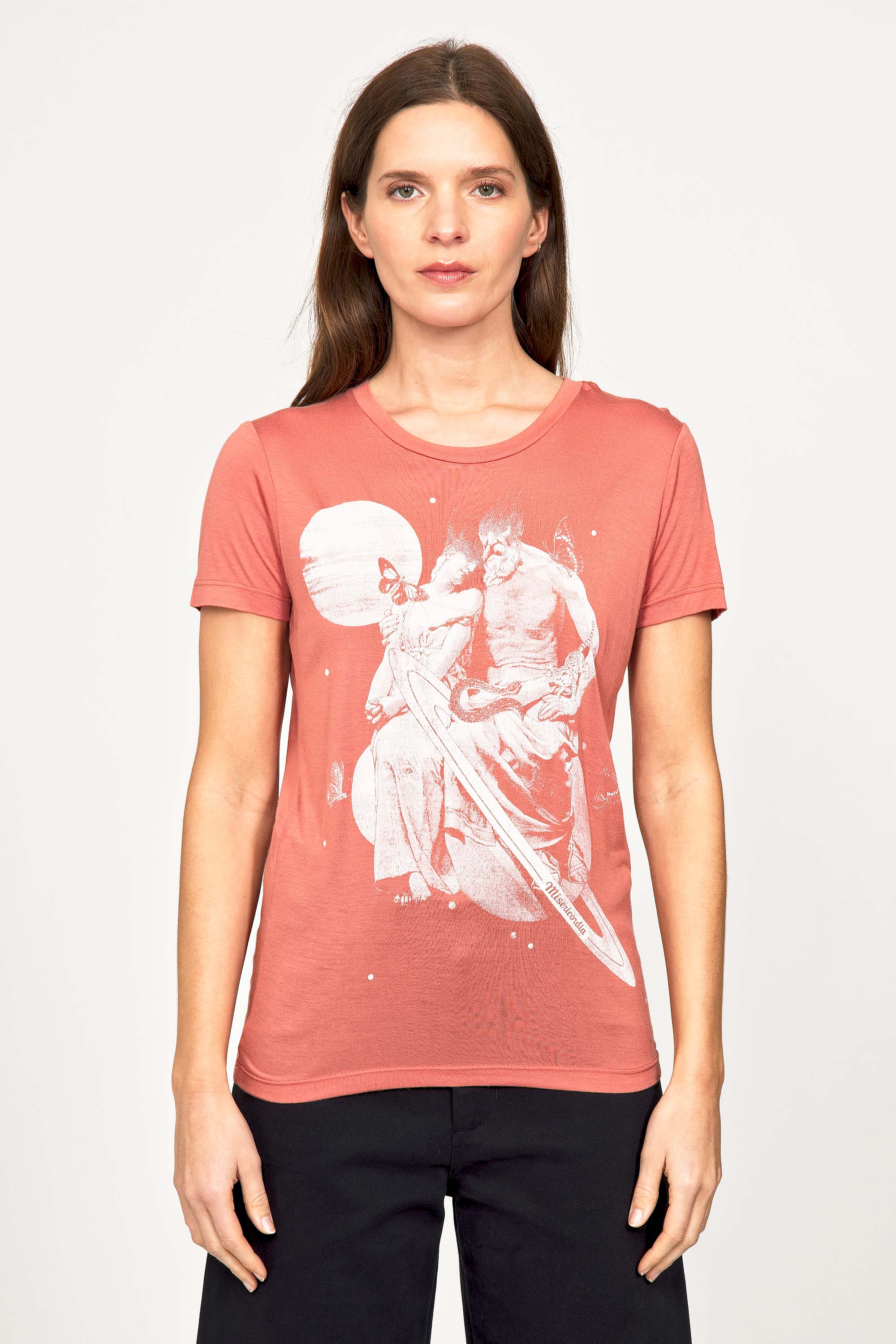 For a trendy wardrobe, in all circumstances, discover our new chic and timeless collection of women's t-shirts at Misericordia. The t-shirt is a versatile piece that can be worn with your entire wardrobe. Fresh and light, it can be worn daily with any outfit for a casual and chic look.