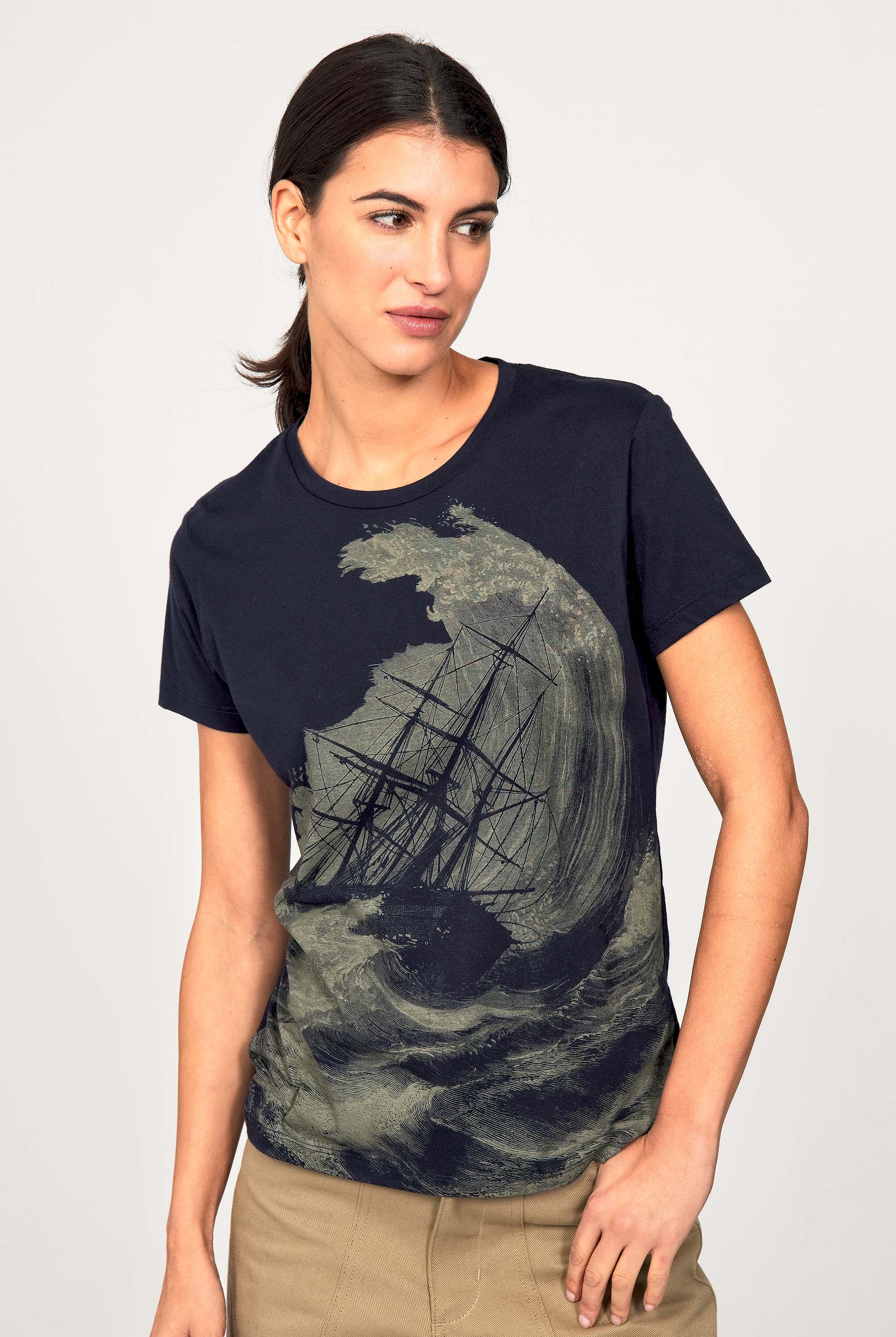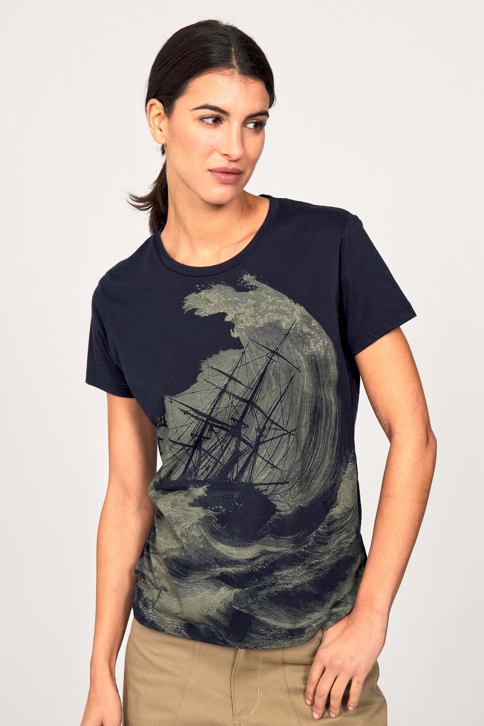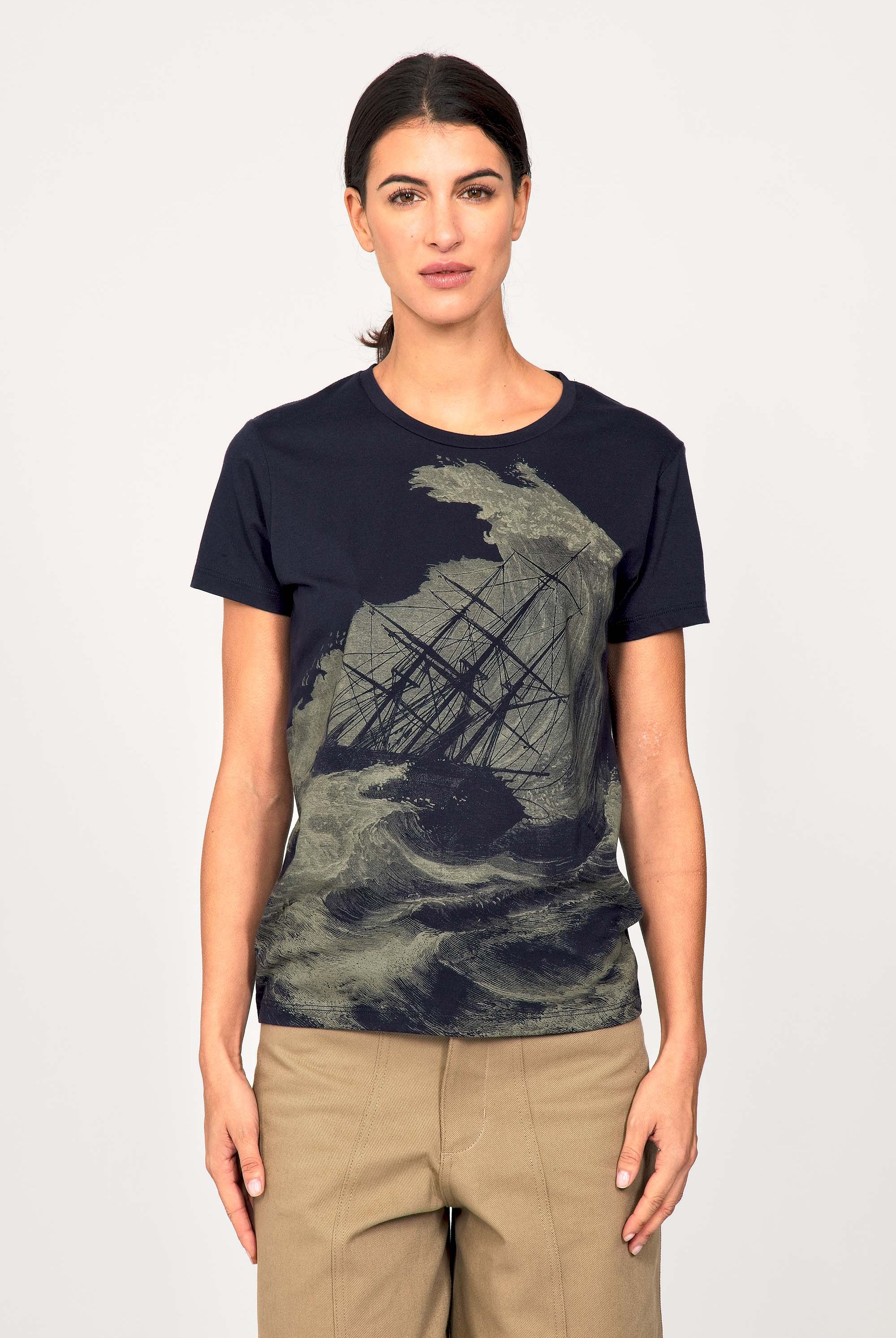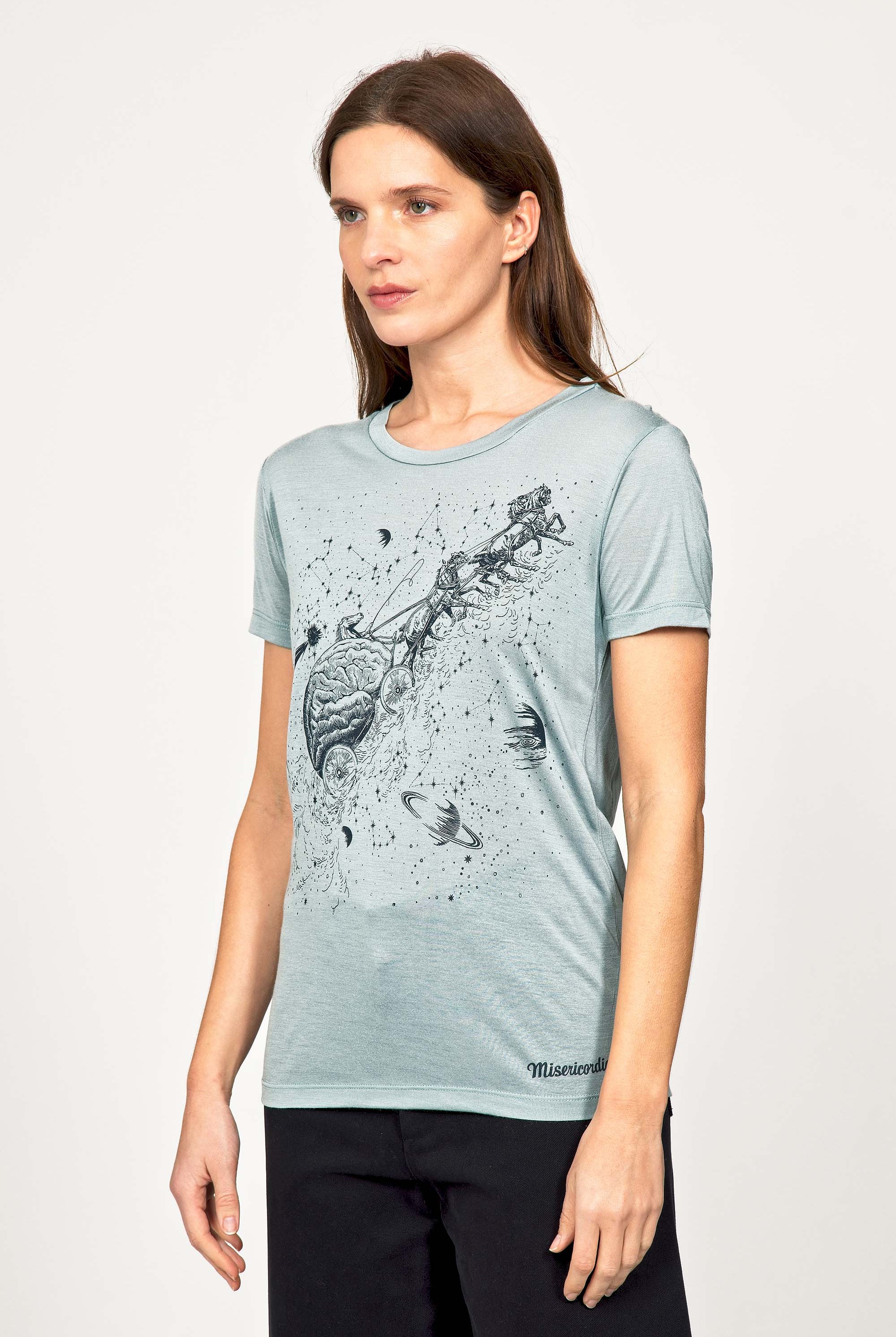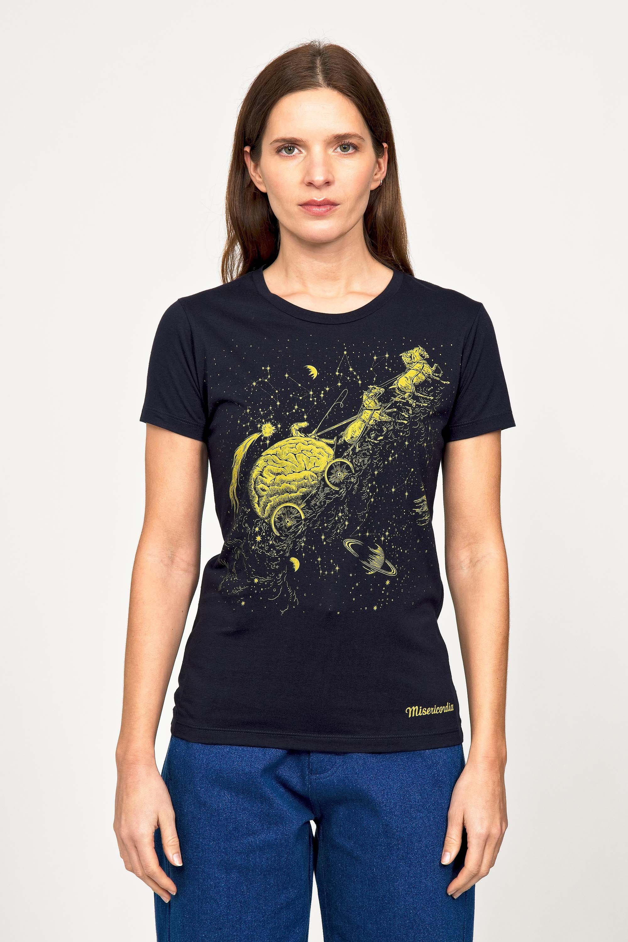 For a trendy wardrobe, in all circumstances, discover our new chic and timeless collection of women's t-shirts at Misericordia. The t-shirt is a versatile piece that can be worn with your entire wardrobe. Fresh and light, it can be worn daily with any outfit for a casual and chic look.