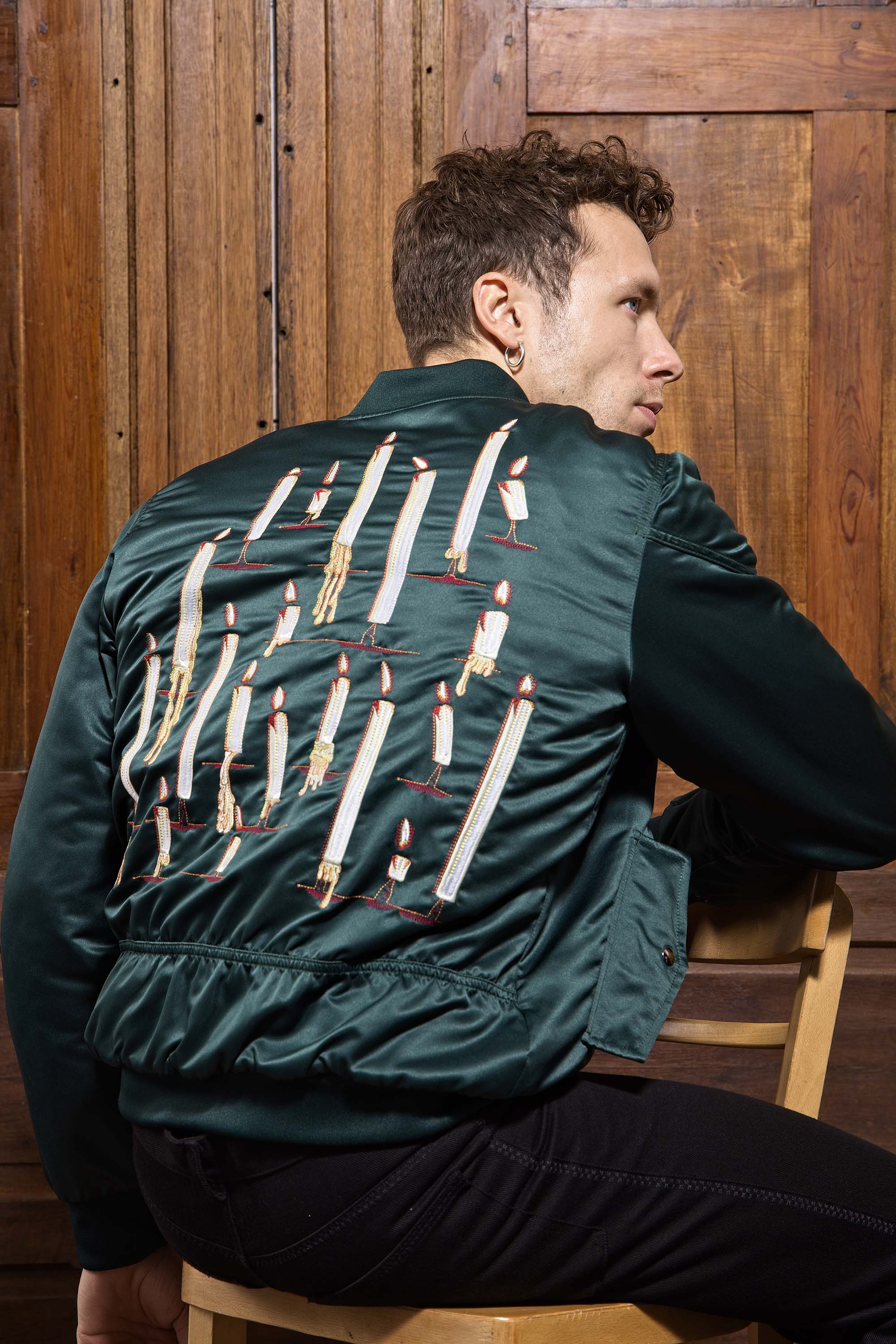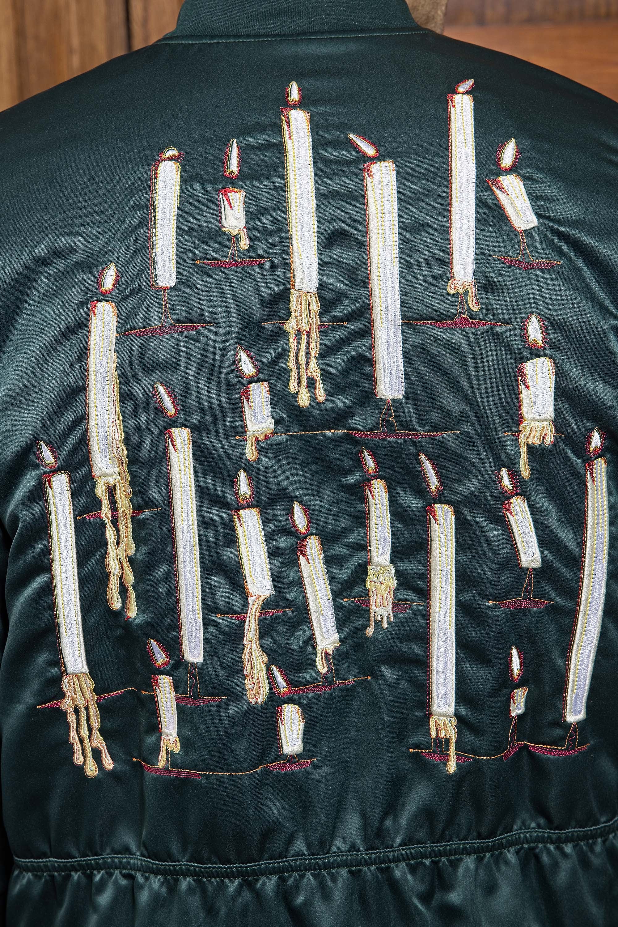 GREEN TEDDY JACKET WITH CANDLES EMBROIDERY